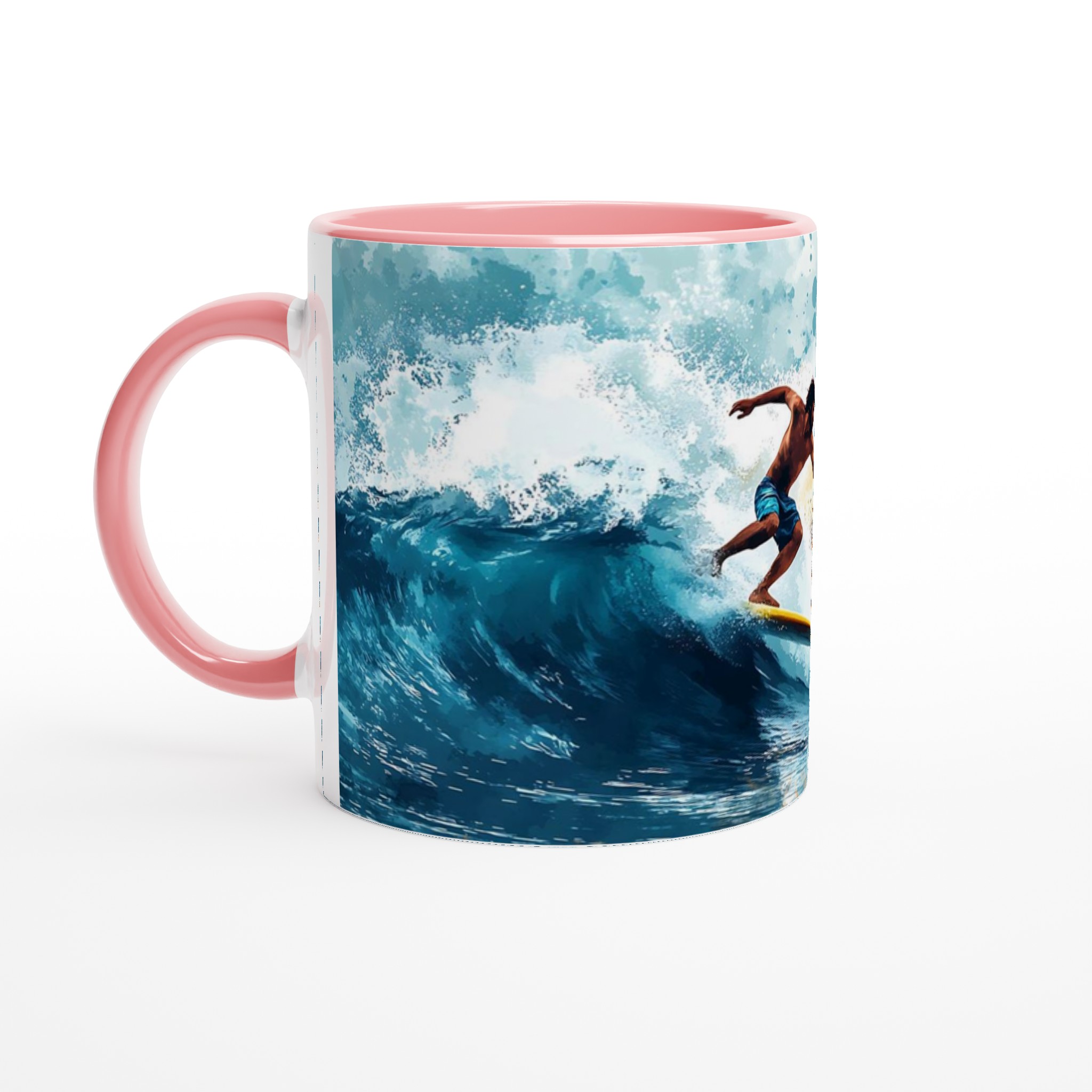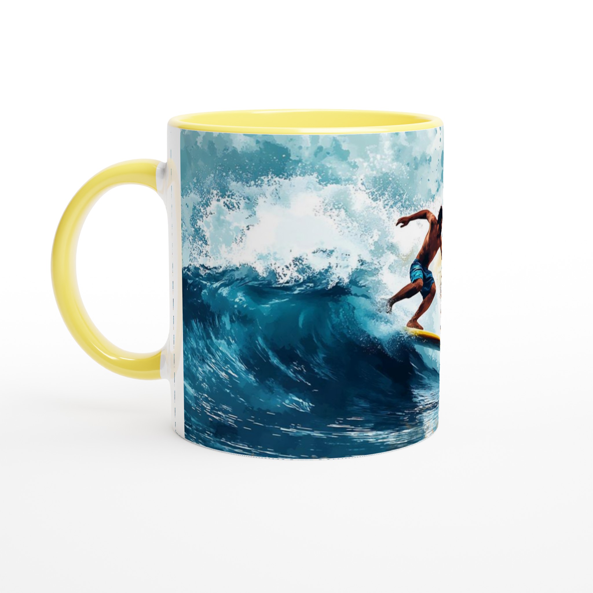 Surfvåg Akvarellmugg – 11oz Keramisk Mugg för Kaffe & Te i Sju Levande Färger