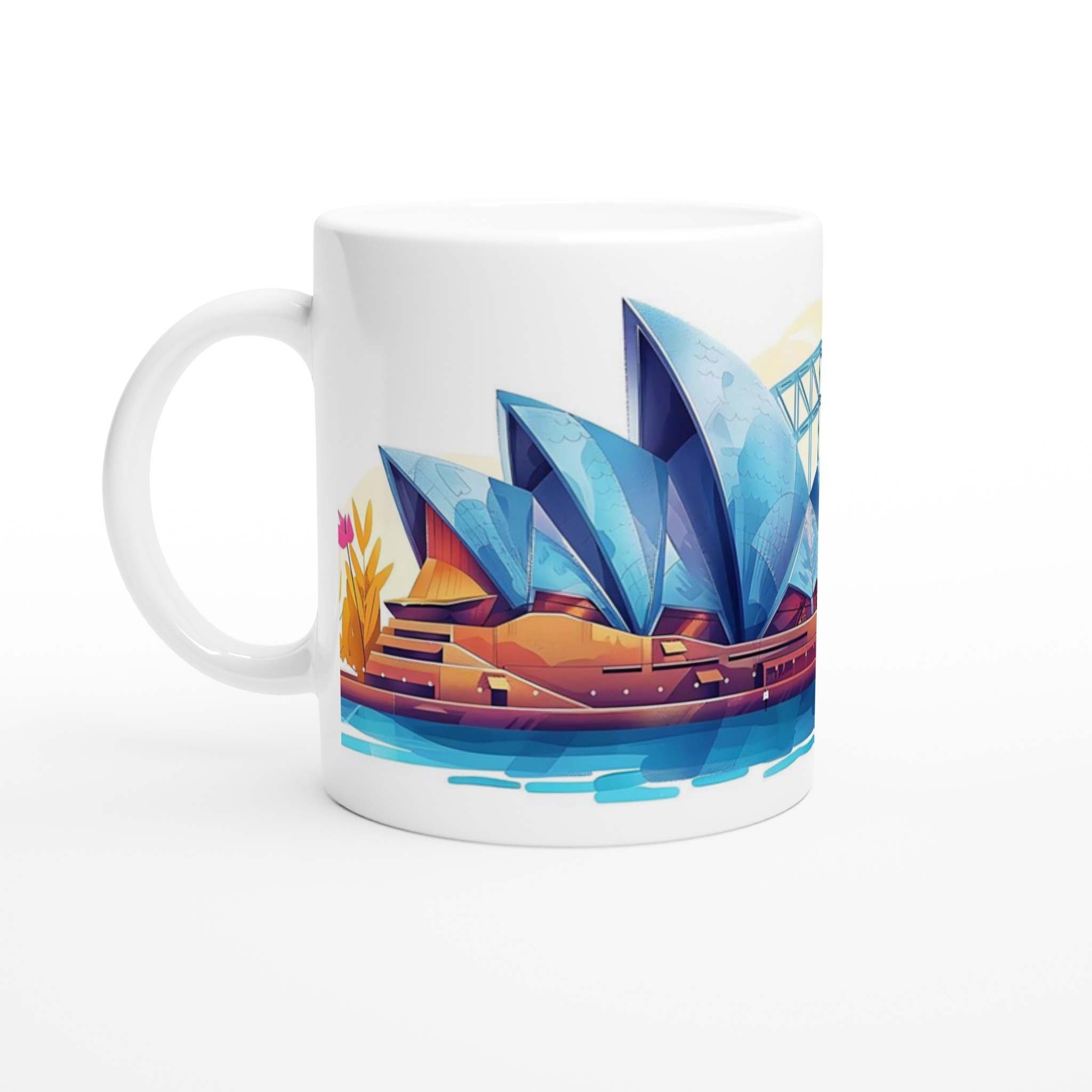 Fånga den ikoniska skönheten hos Sydney Opera House och Harbour Bridge i en levande, akvarellinspirerad stil. Denna mugg är perfekt för resenären, arkitekturentusiasten eller den som älskar färgstark konst, och förvandlar varje sipp till en resa till Sydneys soliga stränder. Med sin unika design och detaljerade stadsbild är den inte bara en mugg, utan ett konstverk för din hand.
