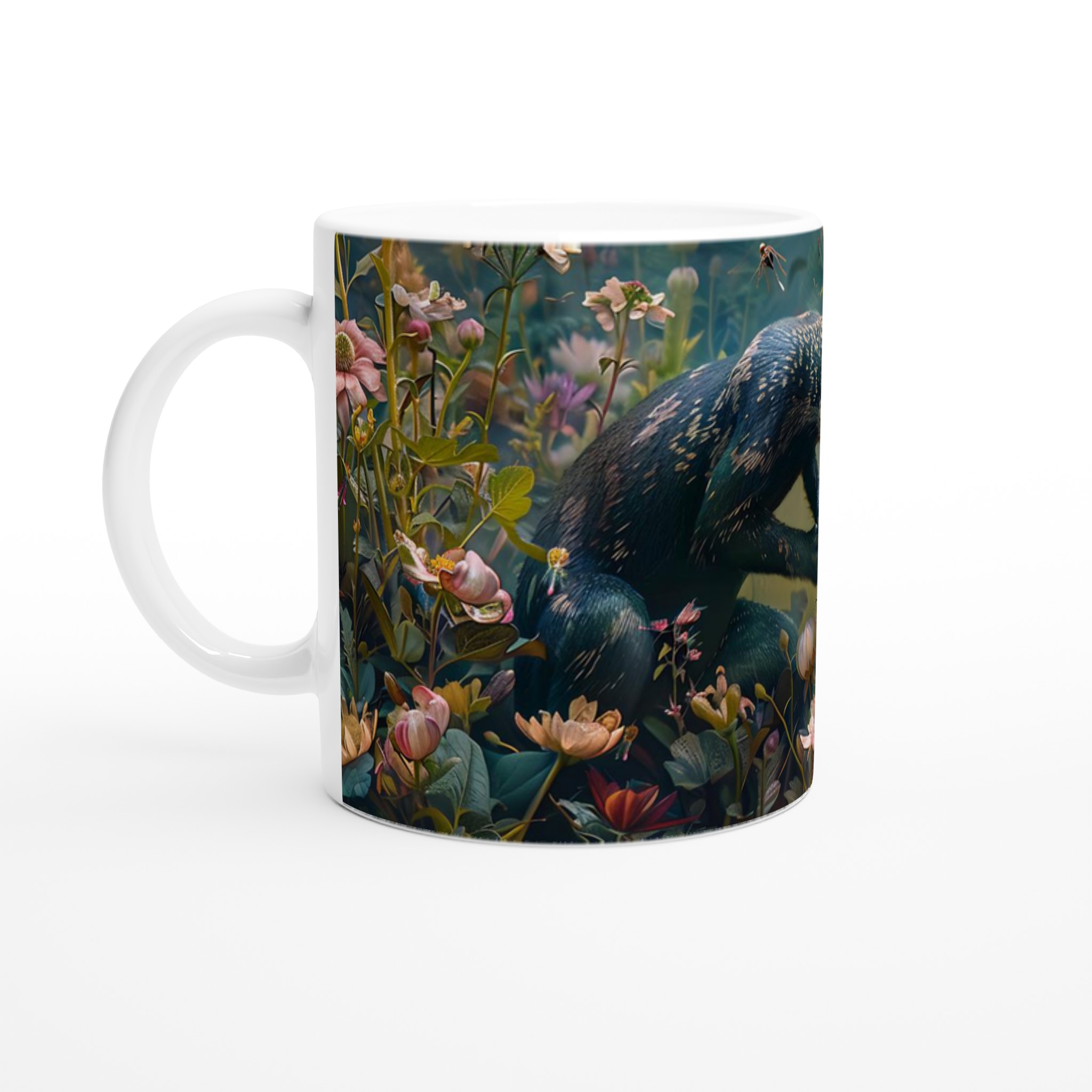 Inspirerad av djupa djunglers mystik och en fantasifull flora, förvandlar denna mugg varje sipp till en resa. Den blanka vita ytan ger ett skarpt och levande tryck som verkligen sticker ut, oavsett om det är en personlig design, ett roligt citat eller en present till någon du tycker om.