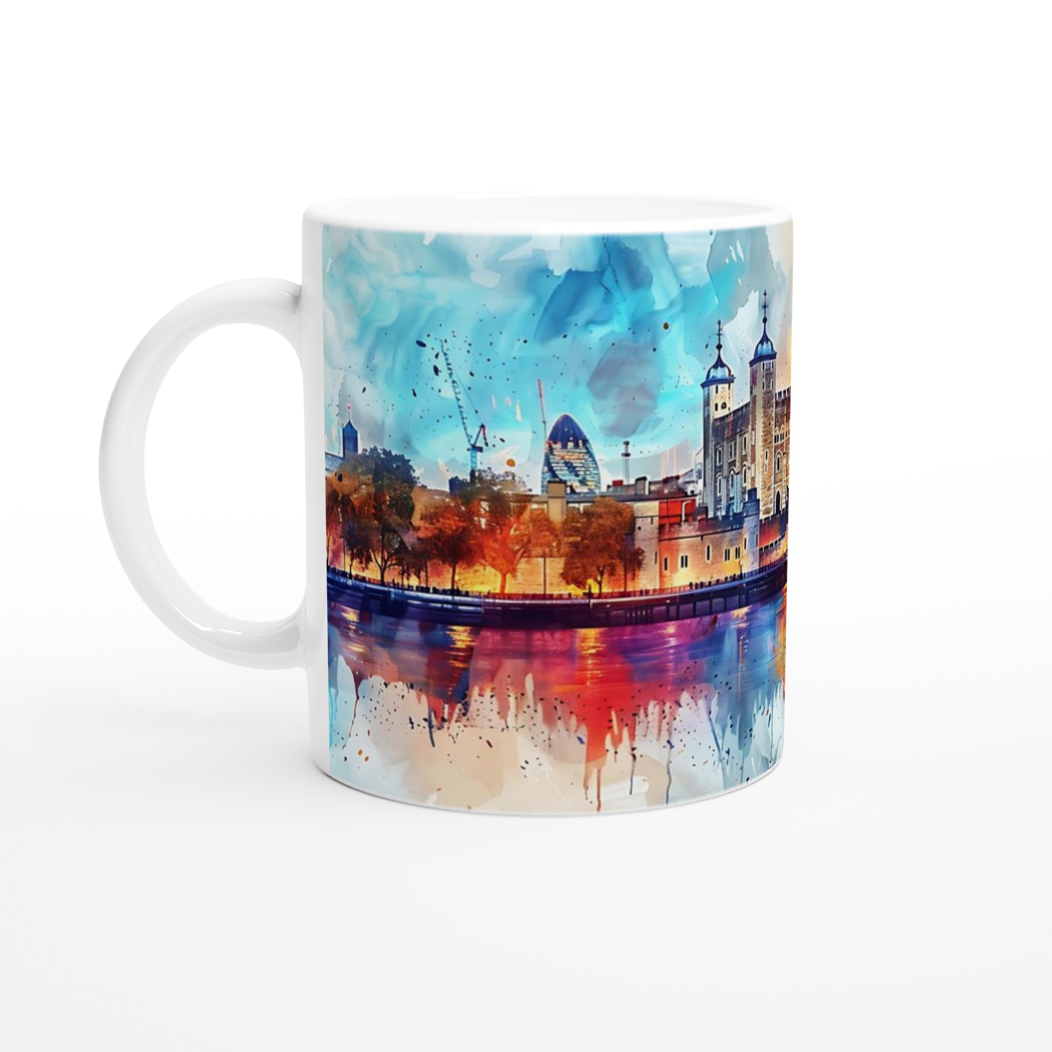 Tower of London Akvarell Mugg – Vit 11oz Keramikmugg i ditt val av 7 livfulla färger
