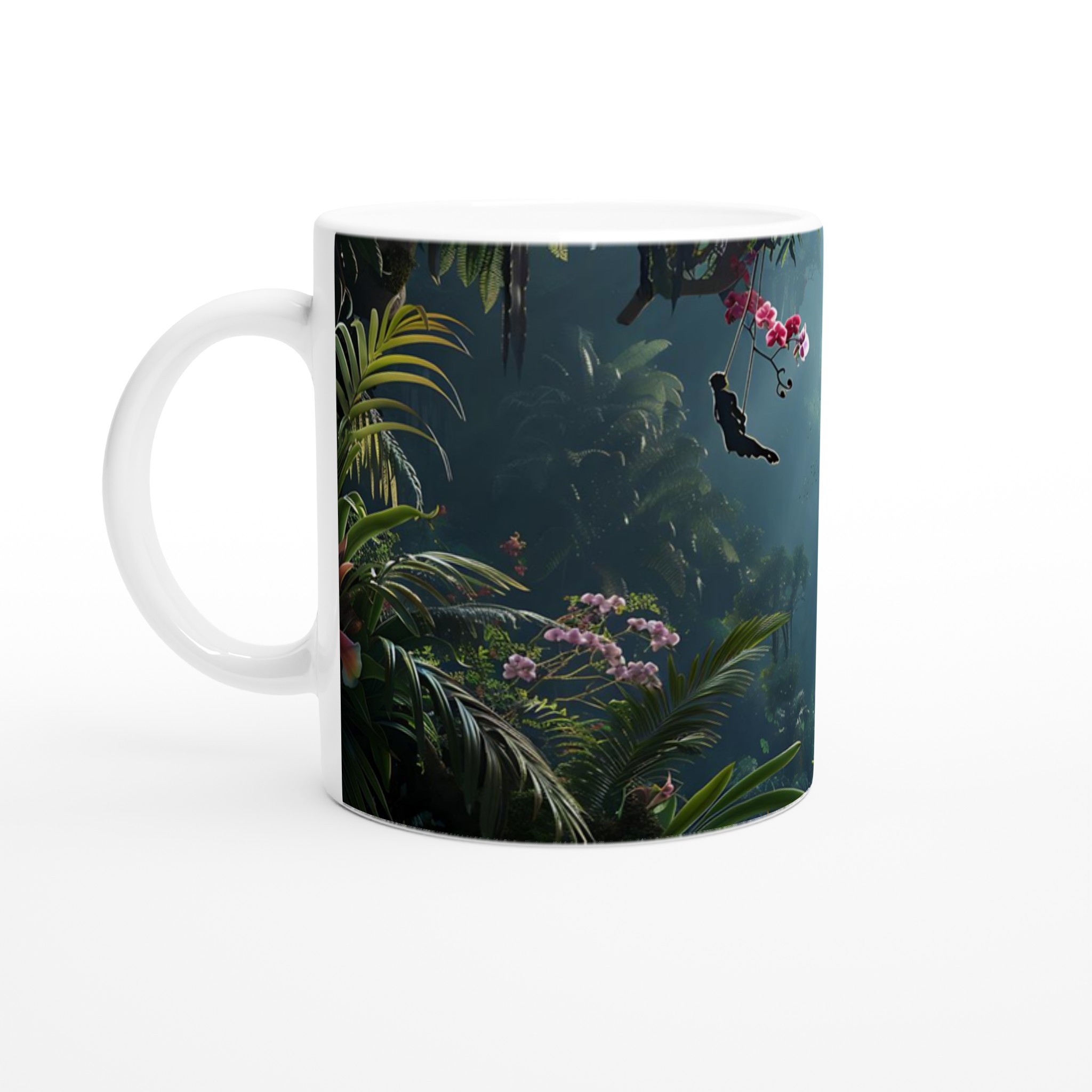 Lyft varje kaffestund med vår premium keramikmugg – stilren, hållbar och skapad för att låta ditt motiv glänsa. Föreställ dig en lugn morgon, omgiven av frodig grönska och exotiska orkidéer, precis som i en drömsk tropisk djungel. Denna mugg fångar den mystiska skönheten och den fridfulla atmosfären, perfekt för att starta dagen med en känsla av äventyr.