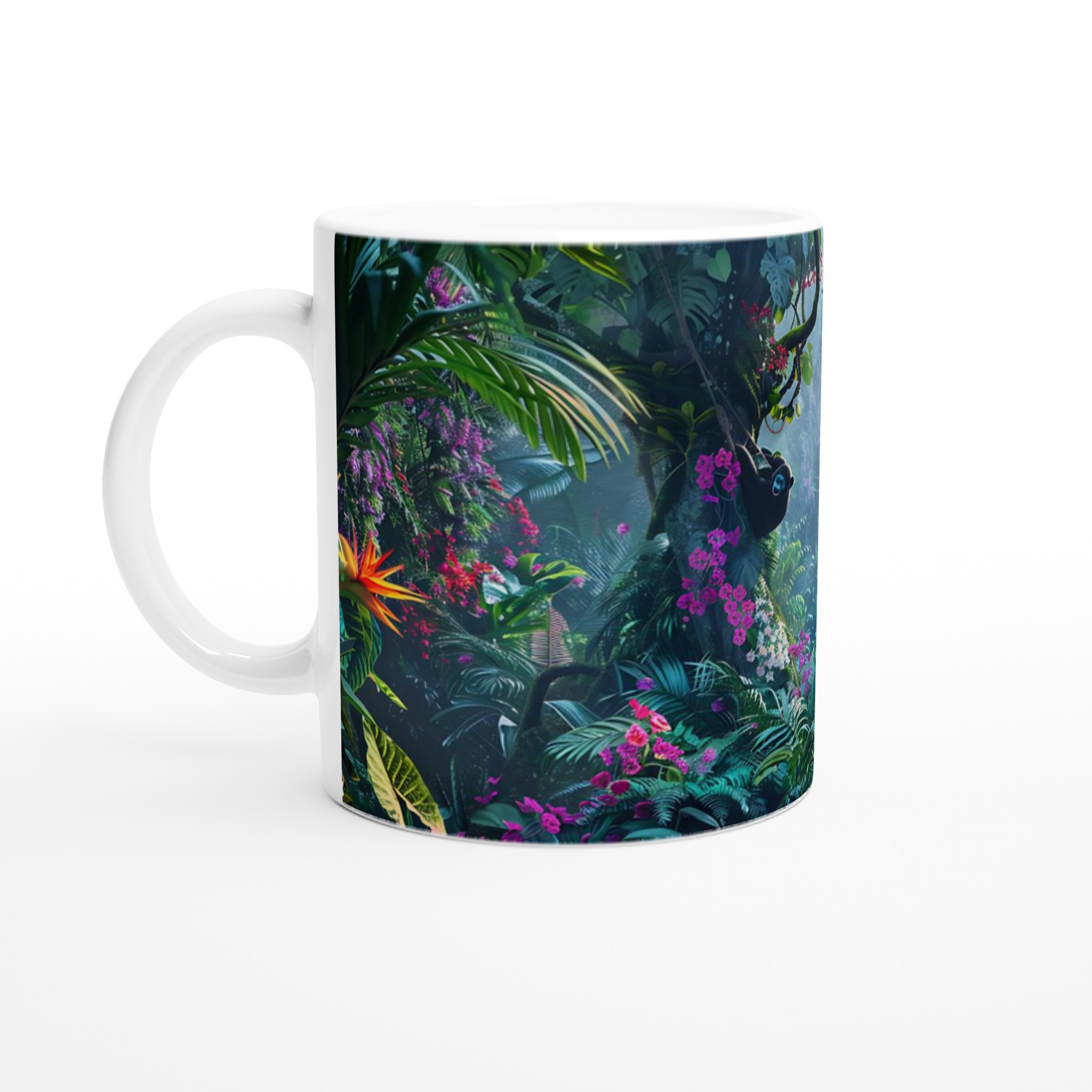 Lyft varje kaffestund med vår premium keramikmugg – stilren, hållbar och skapad för att låta ditt motiv glänsa. Inspirerad av den frodiga mystiken i en tropisk djungel, med dess levande flora och djupa gröna nyanser, blir denna mugg en perfekt canvas för din personliga touch. Den blanka ytan ger ett skarpt och levande tryck som verkligen sticker ut, oavsett om det är en personlig design, ett roligt citat eller en present till någon du tycker om.