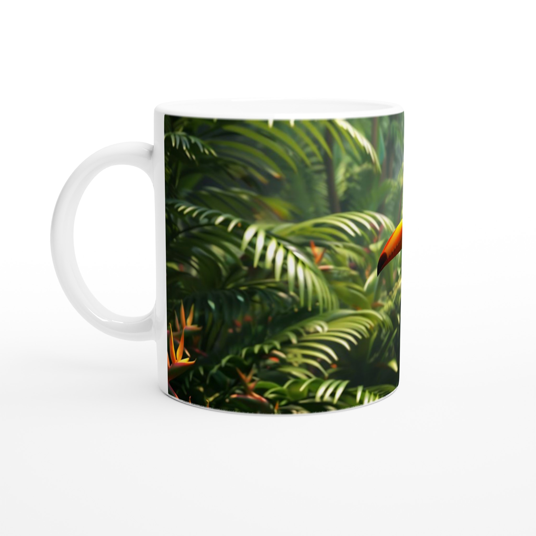 Dröm dig bort till en lummig regnskog med vår Tropisk Djungelmugg! Denna unika design fångar den livfulla skönheten hos en majestätisk tukan i flykt, omgiven av exotiska växter och färgsprakande blommor. Den detaljrika bilden och den frodiga färgpaletten förvandlar varje sipp till en mini-semester, perfekt för den som älskar natur, djurliv eller bara vill addera en tropisk touch till sin vardag.