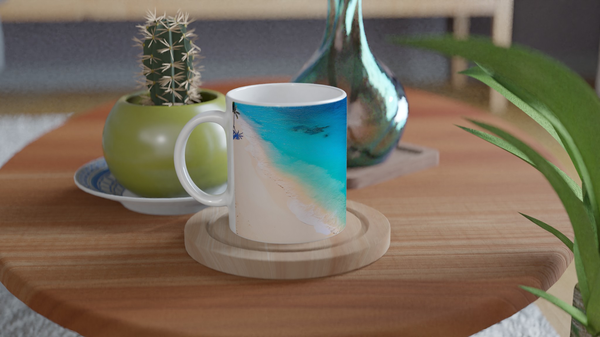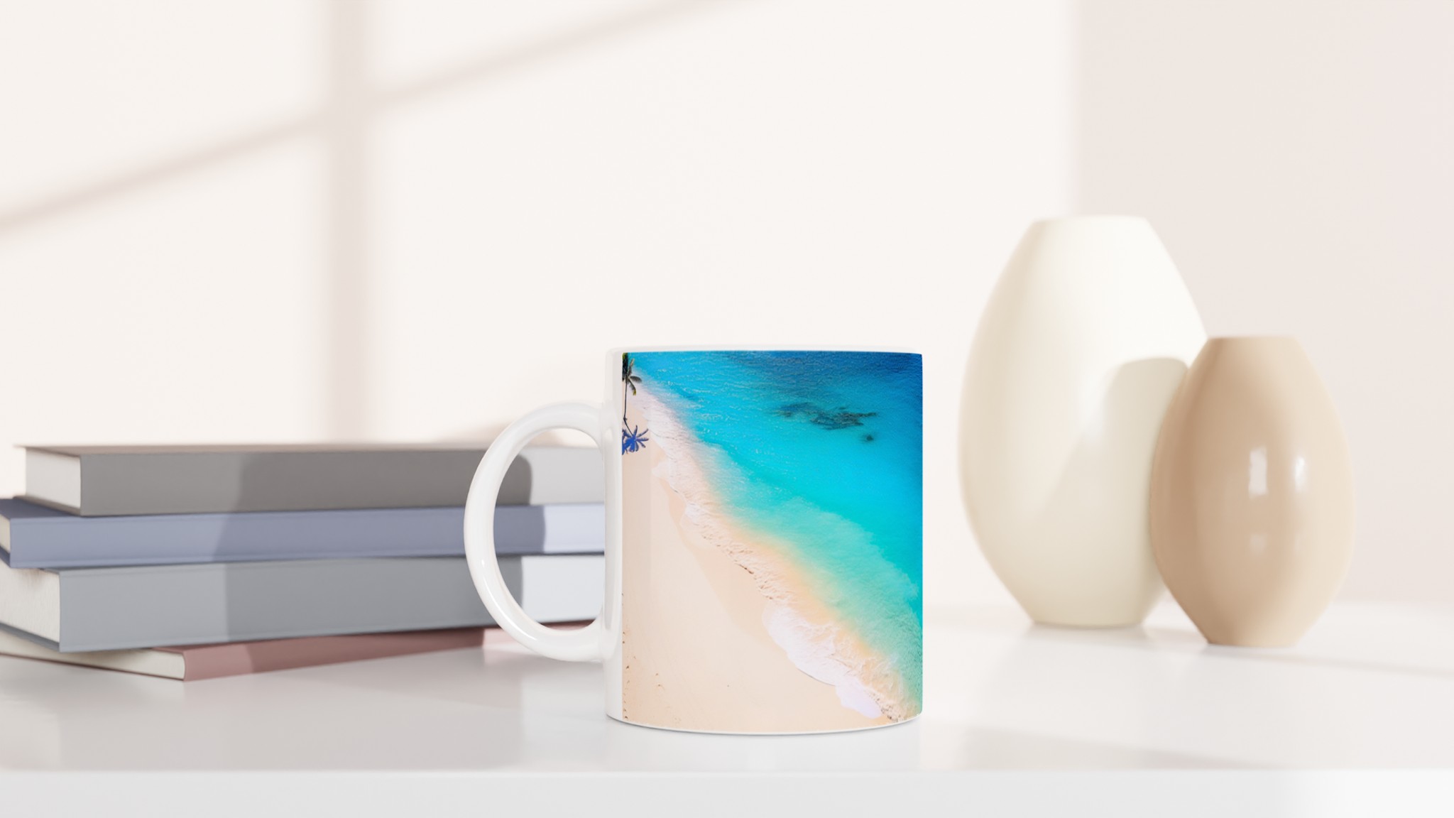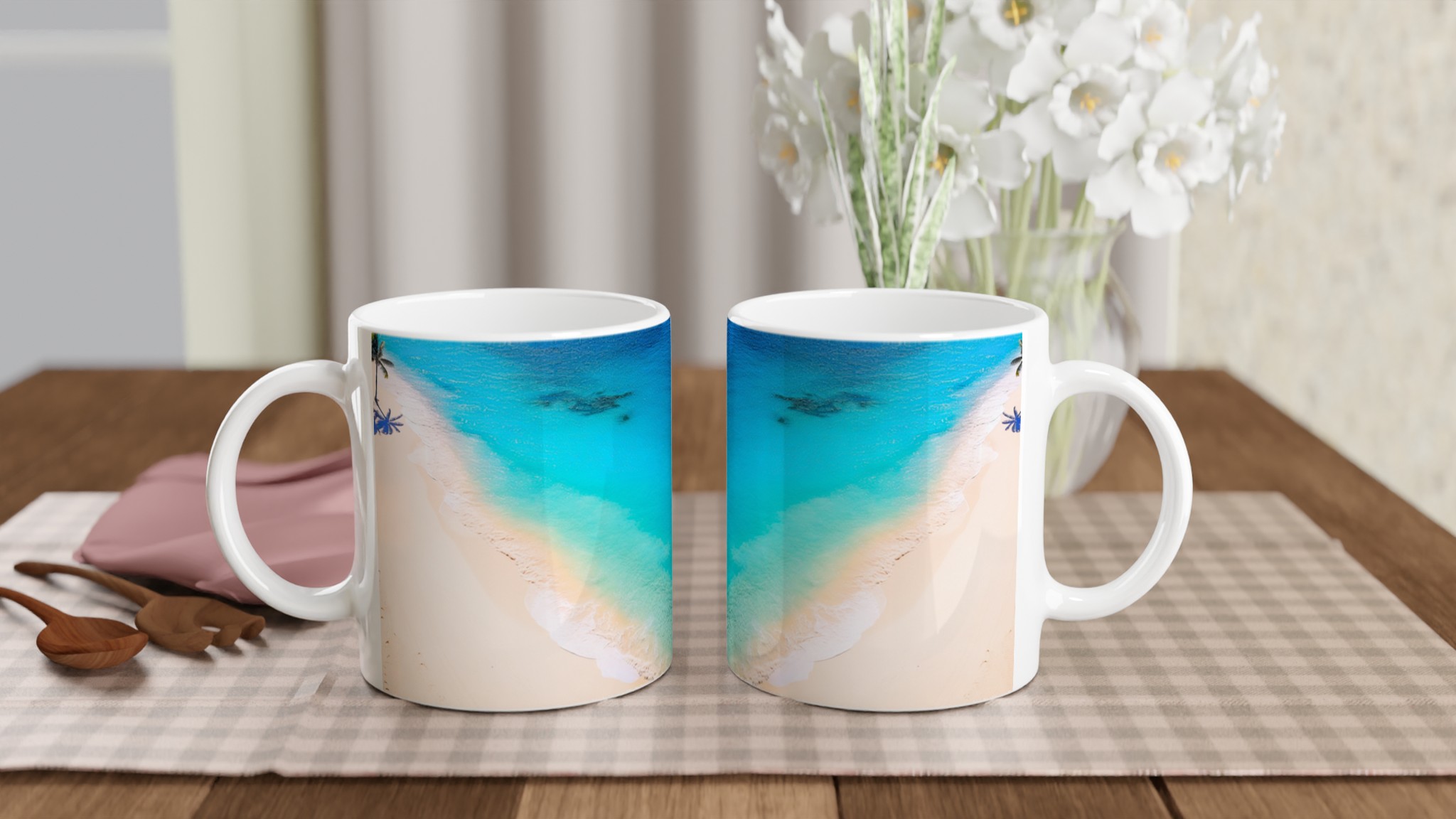 Föreställ dig att du sipprar din favoritdryck, omfamnad av lugnet från en paradisstrand. Med vår keramiska mugg kan du införa den känslan i varje morgonkaffe eller kvällste. Inspirerad av soliga stränder och kristallklara vatten, blir denna mugg snabbt en vardagsfavorit som för tankarna till avkoppling och välbefinnande.