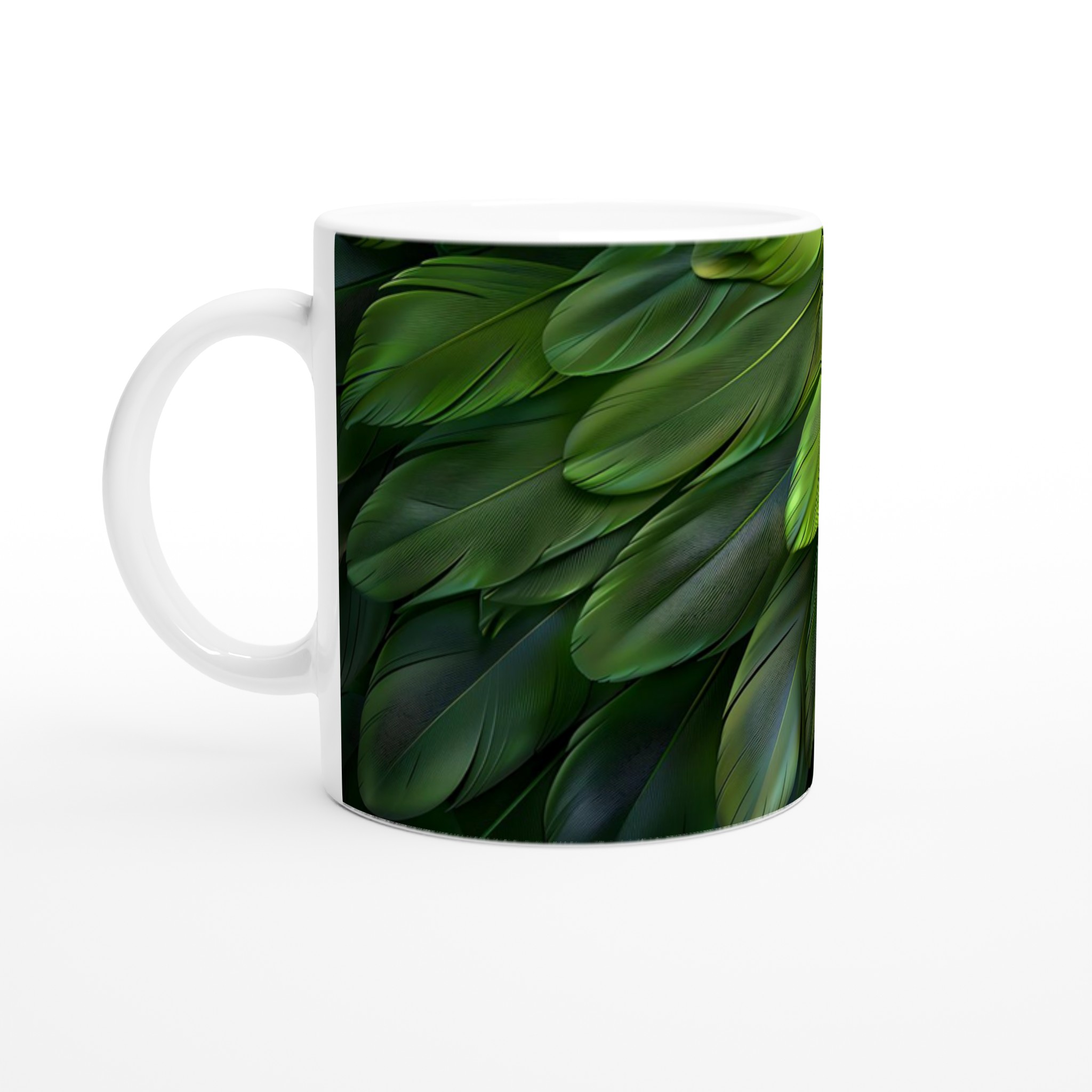 Inspirerad av djungelns frodiga grönska och exotiska fjäderdräkter, ger denna mugg en känsla av lugn och natur till din dryckesupplevelse. Den blanka ytan ger ett skarpt och levande tryck som verkligen sticker ut, oavsett om det är en personlig design, ett roligt citat eller en present till någon du tycker om.
