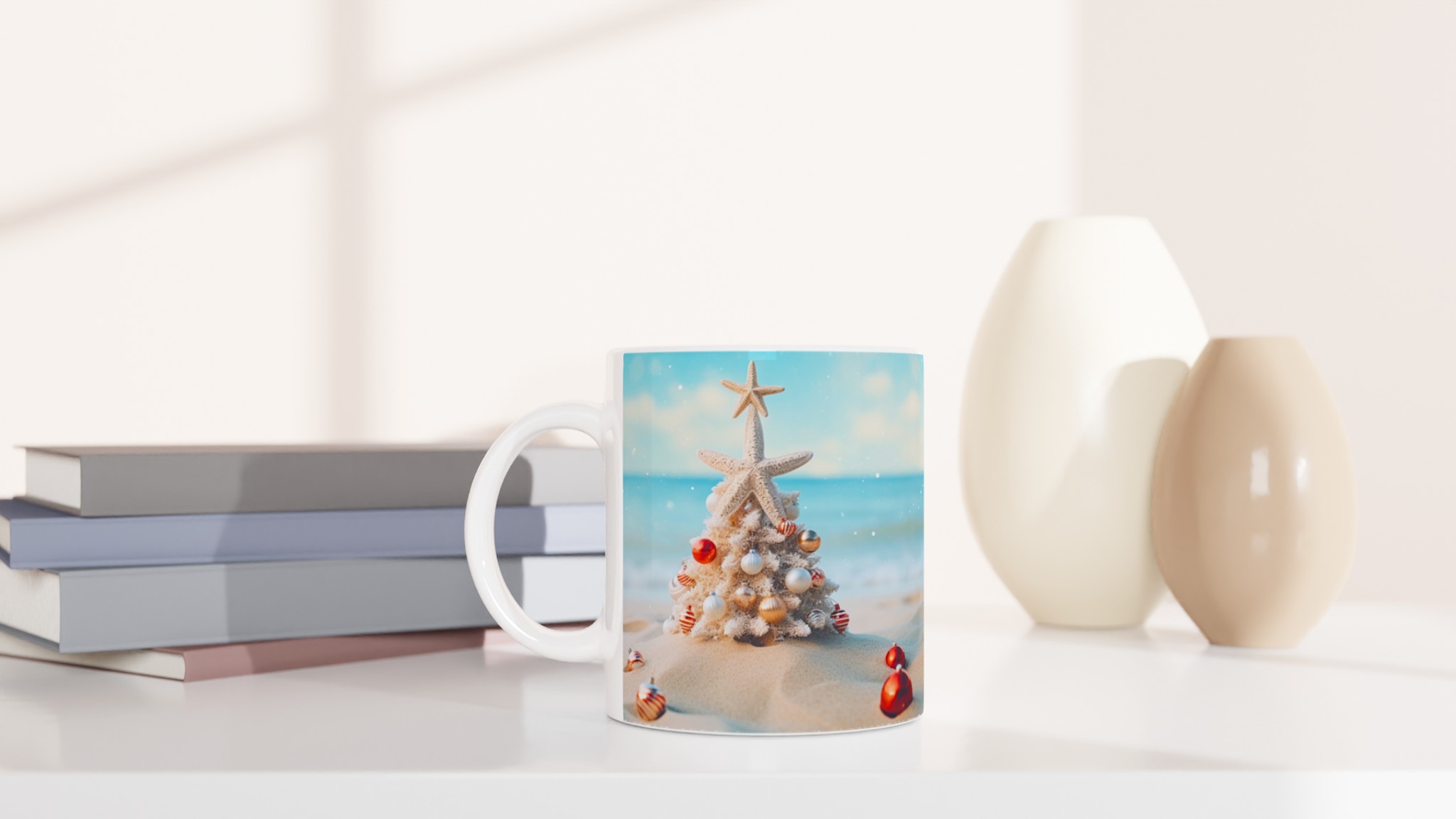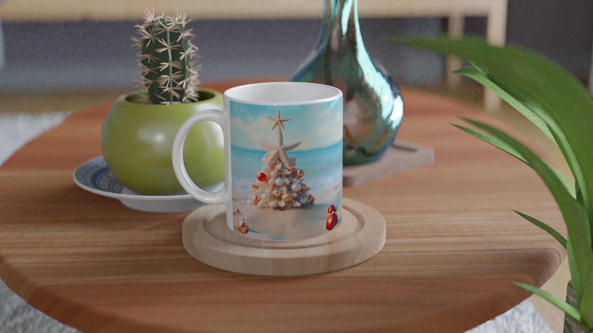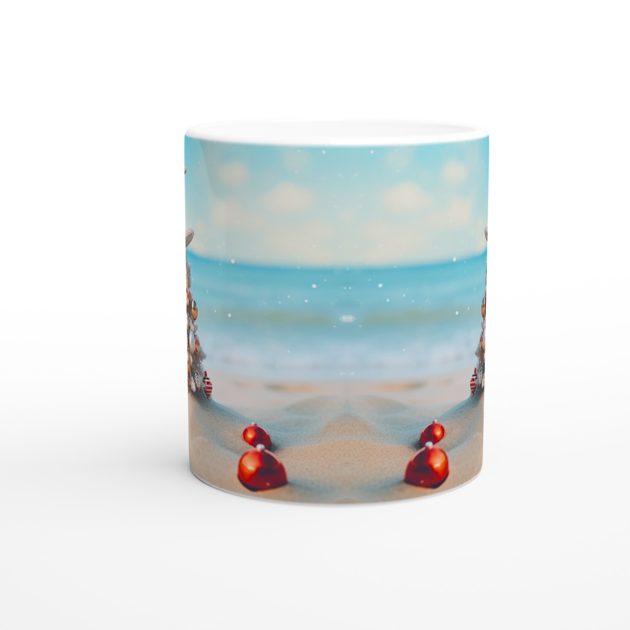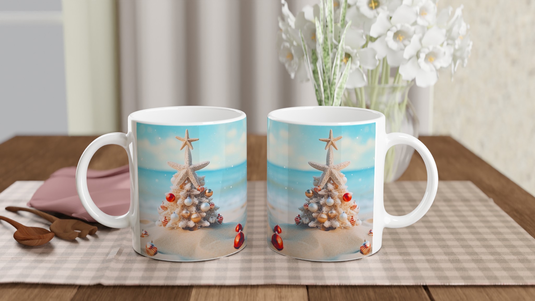 Fånga den drömska känslan av en tropisk jul med denna unika keramiska mugg. Föreställ dig en strandkant där snöflingor faller lätt över glittrande sand, ackompanjerat av ljudet av vågor och festliga juldekorationer. Denna mugg förvandlar varje sip till en minisemester, perfekt för morgonkaffet, kvällens varma choklad eller när du bara vill njuta av en kopp te med en exotisk twist.