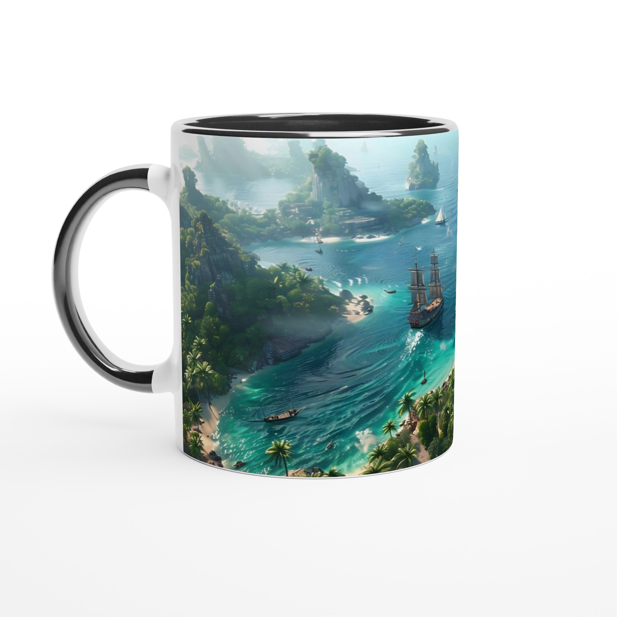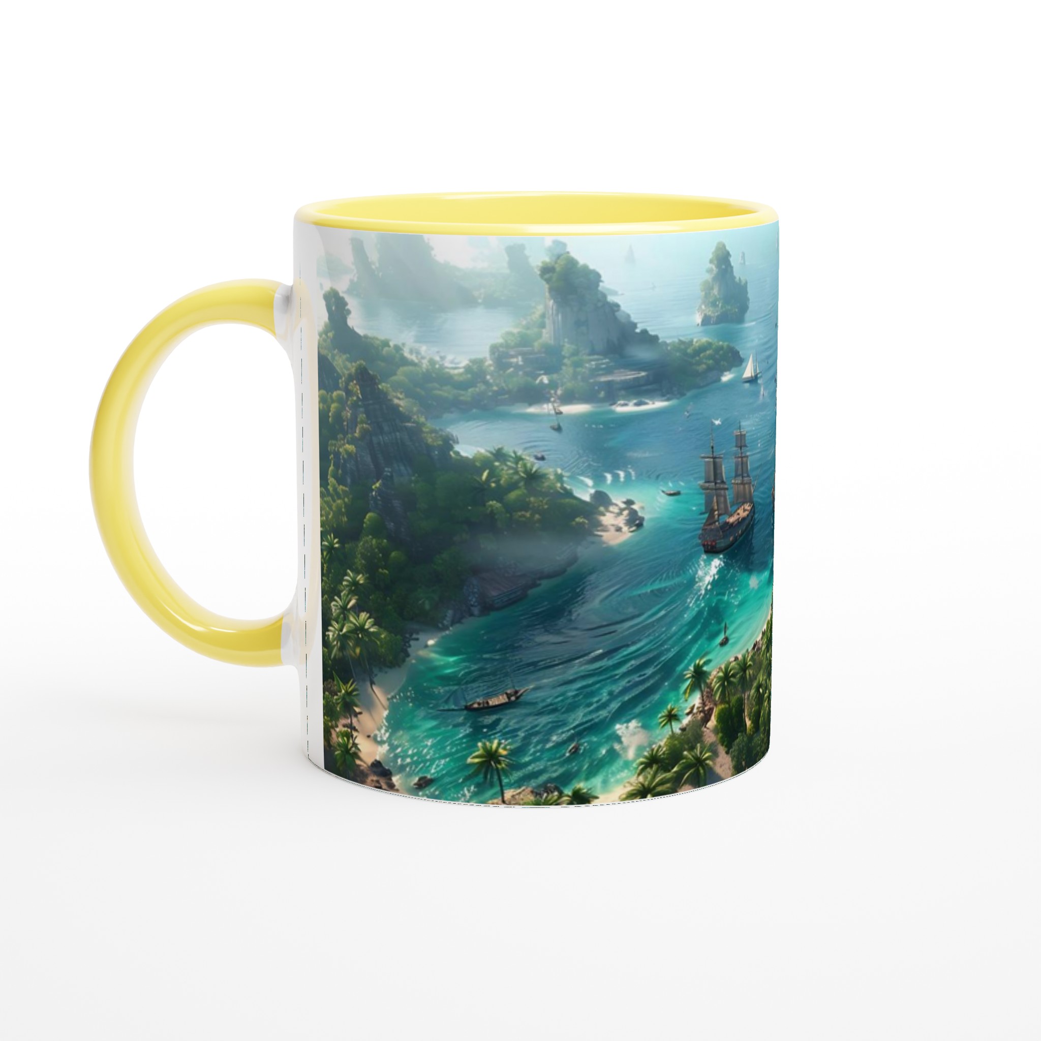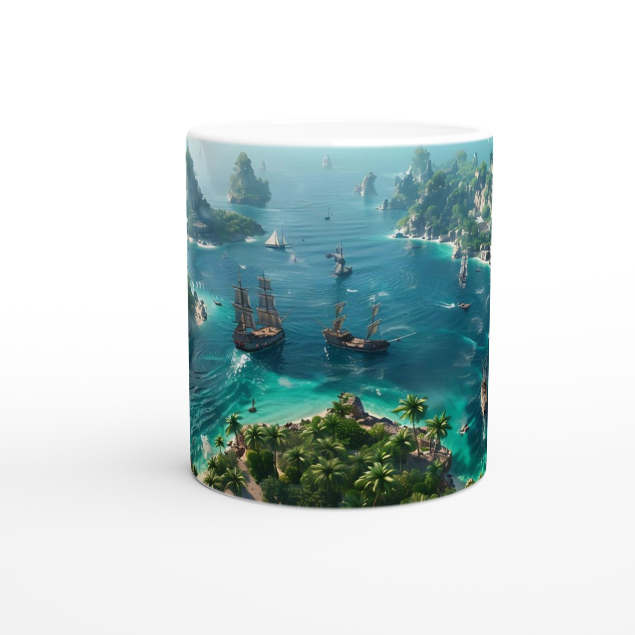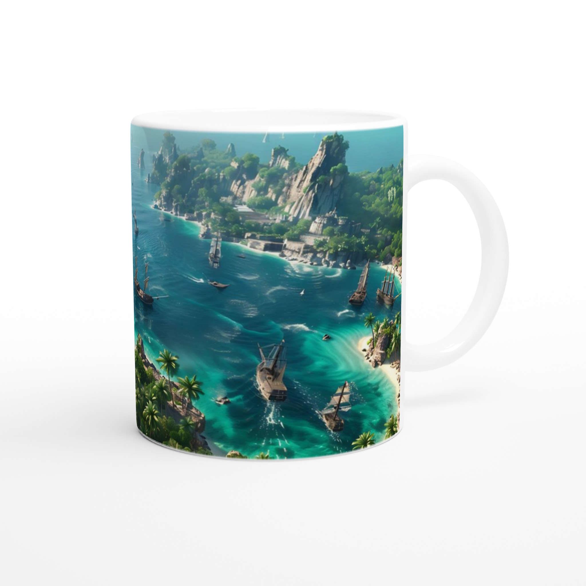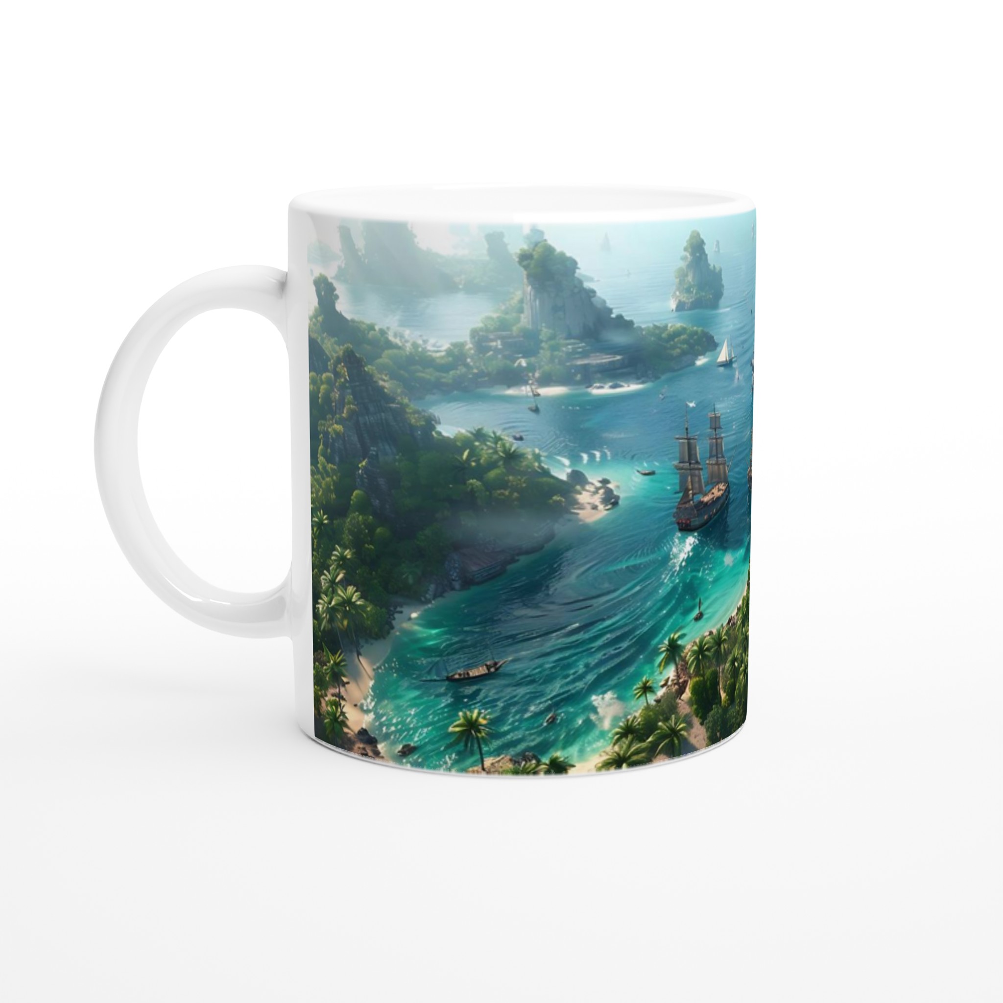 Fly till ett tropiskt paradis med vår fantastiska Keramiska Mugg! Bilden av en frodig övärld med turkost vatten och majestätiska segelbåtar tar dig direkt till avkoppling och äventyr. Den här stilrena muggen blir snabbt en vardagsfavorit. Perfekt för morgonkaffet, kvällens varma choklad eller när du bara vill njuta av en kopp te. Den blanka vita ytan gör att trycken framhävs med klara och levande färger, som håller sig fina även efter många turer i mikron och diskmaskinen.