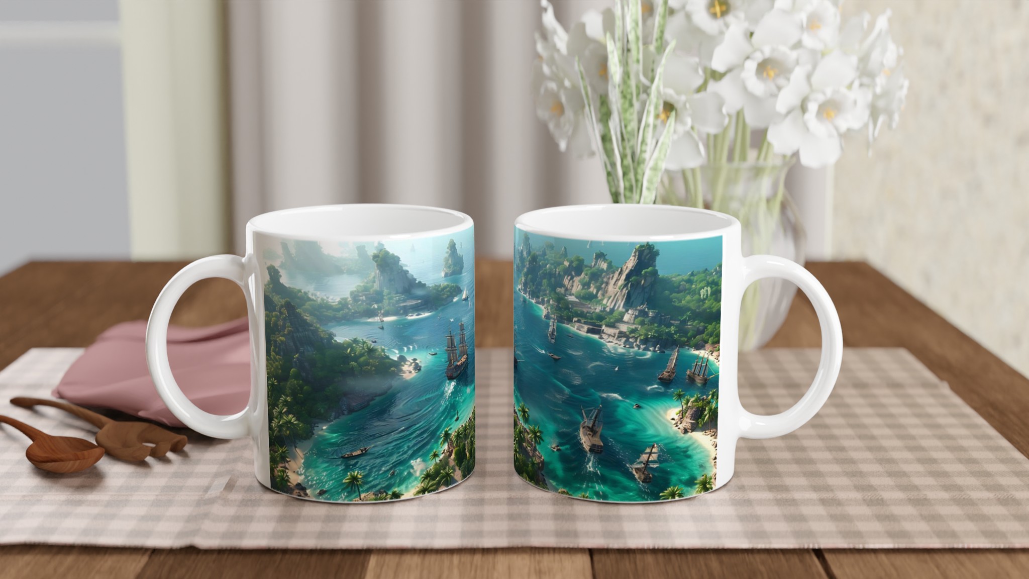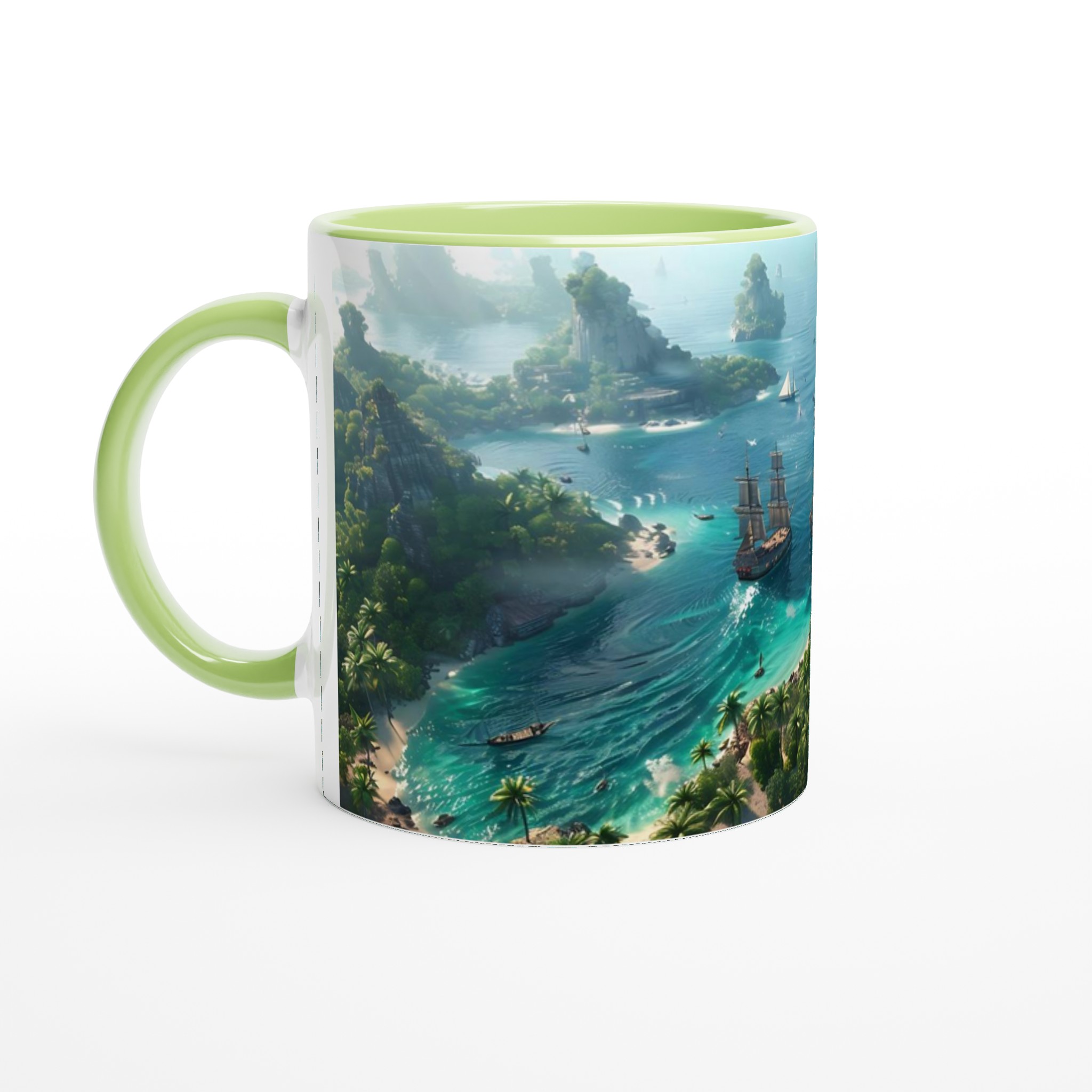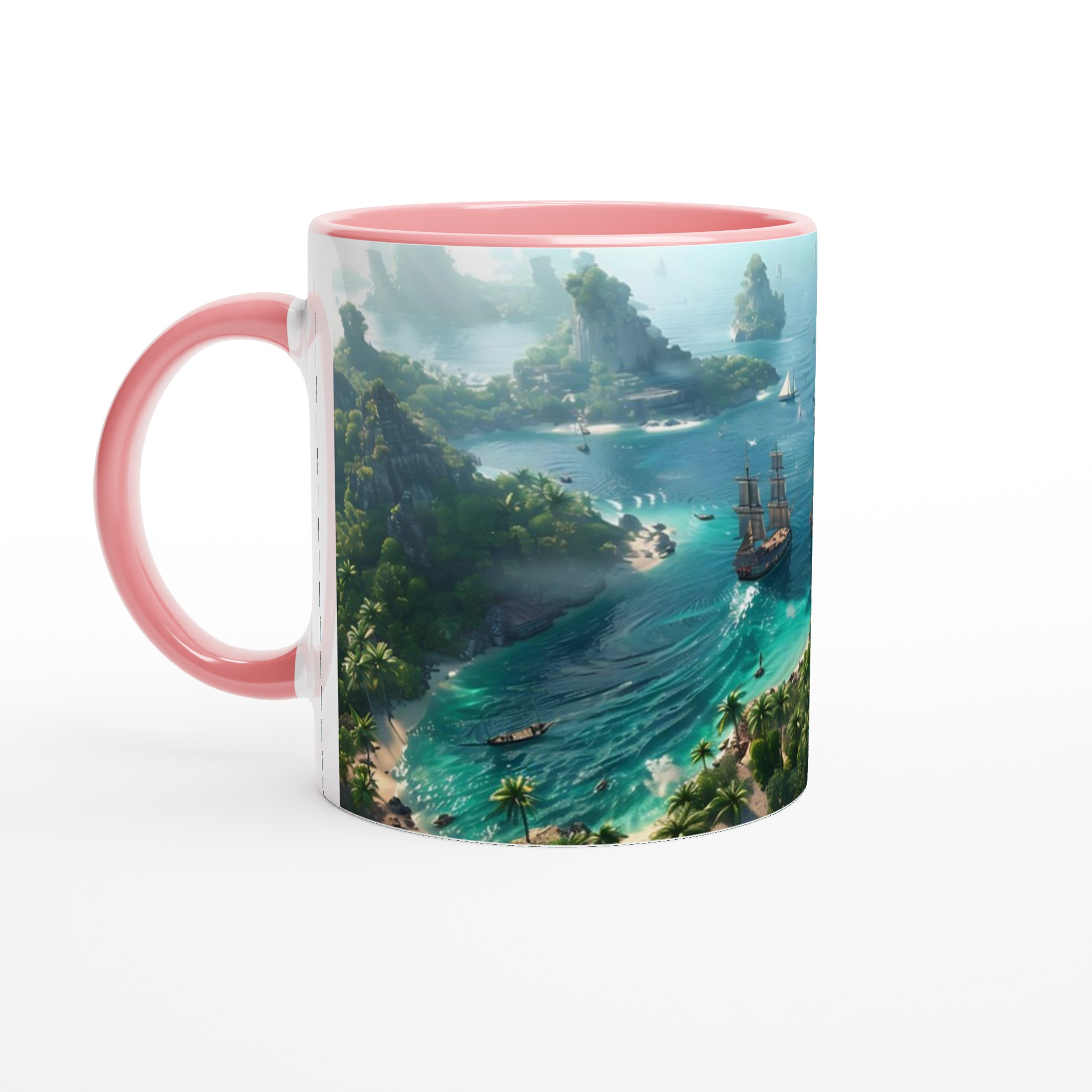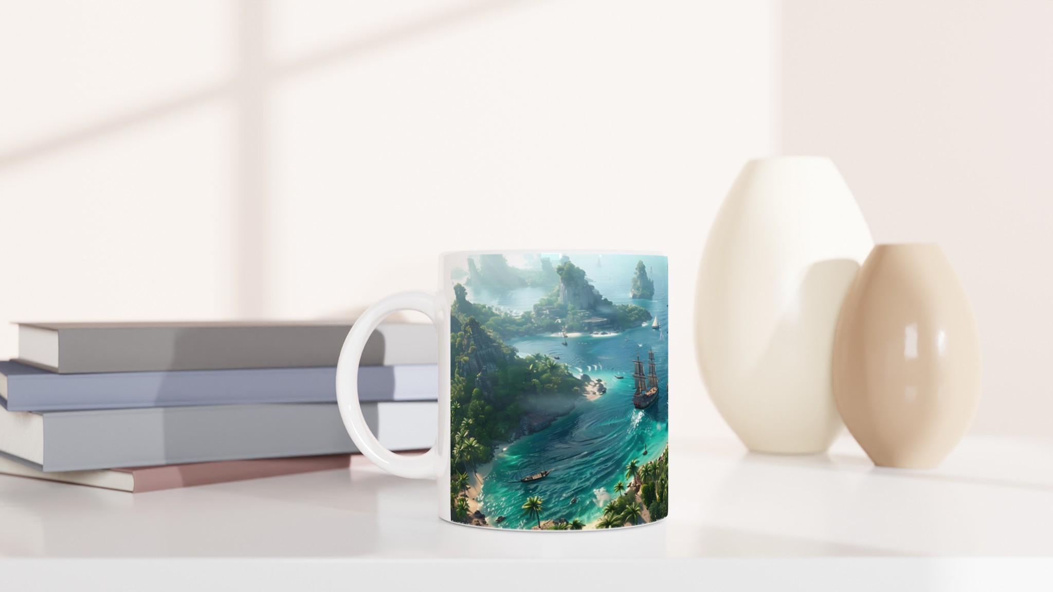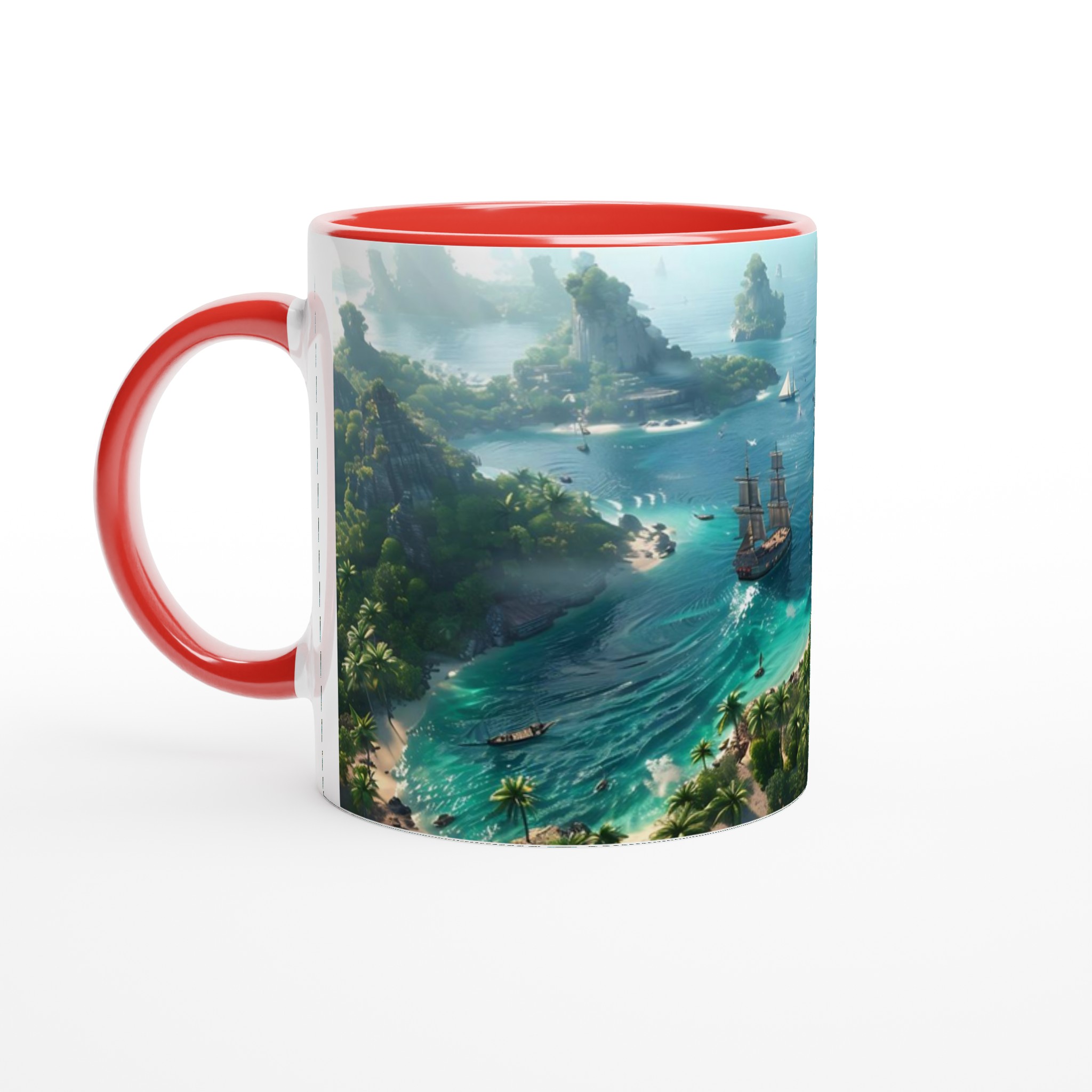 Fly till ett tropiskt paradis med vår fantastiska Keramiska Mugg! Bilden av en frodig övärld med turkost vatten och majestätiska segelbåtar tar dig direkt till avkoppling och äventyr. Den här stilrena muggen blir snabbt en vardagsfavorit. Perfekt för morgonkaffet, kvällens varma choklad eller när du bara vill njuta av en kopp te. Den blanka vita ytan gör att trycken framhävs med klara och levande färger, som håller sig fina även efter många turer i mikron och diskmaskinen.