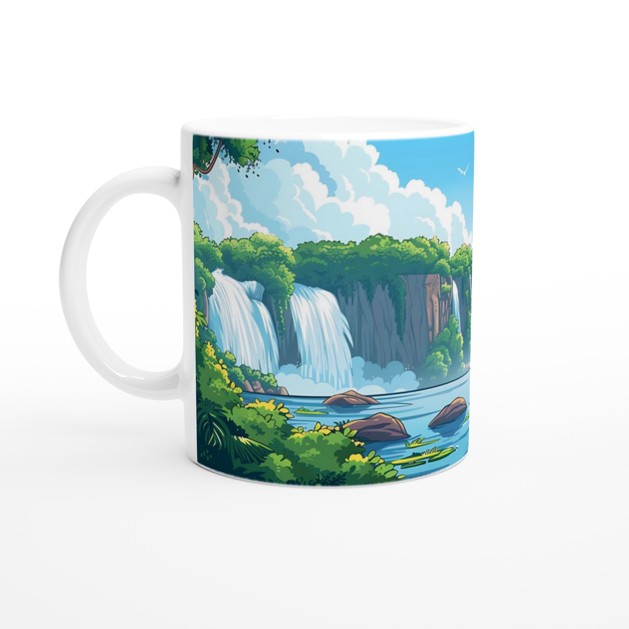 Inspirerad av lugnet från en tropisk oas, denna mugg förvandlar varje sipp till en flykt till naturen. Den blanka vita ytan ger ett skarpt och levande tryck som verkligen sticker ut, oavsett om det är en personlig design, ett roligt citat eller en present till någon du tycker om. Vår färgstarka keramikmugg är den perfekta följeslagaren för dina stunder av avkoppling.