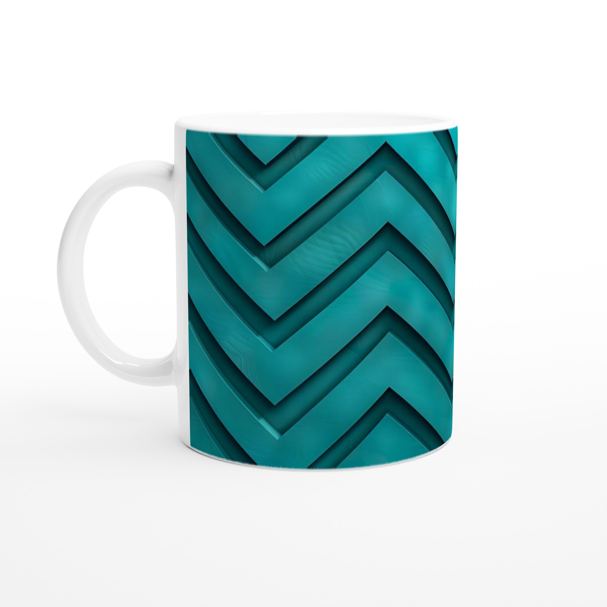 Turkosblå Mugg med Chevronmönster – 11oz Keramikmugg i ditt val av 7 livfulla färger
