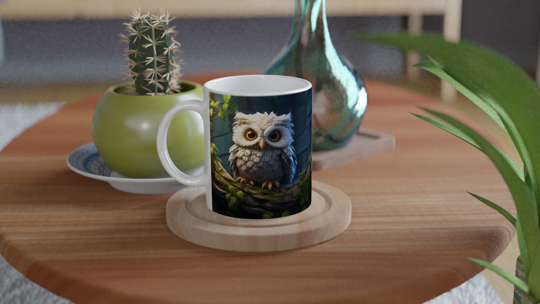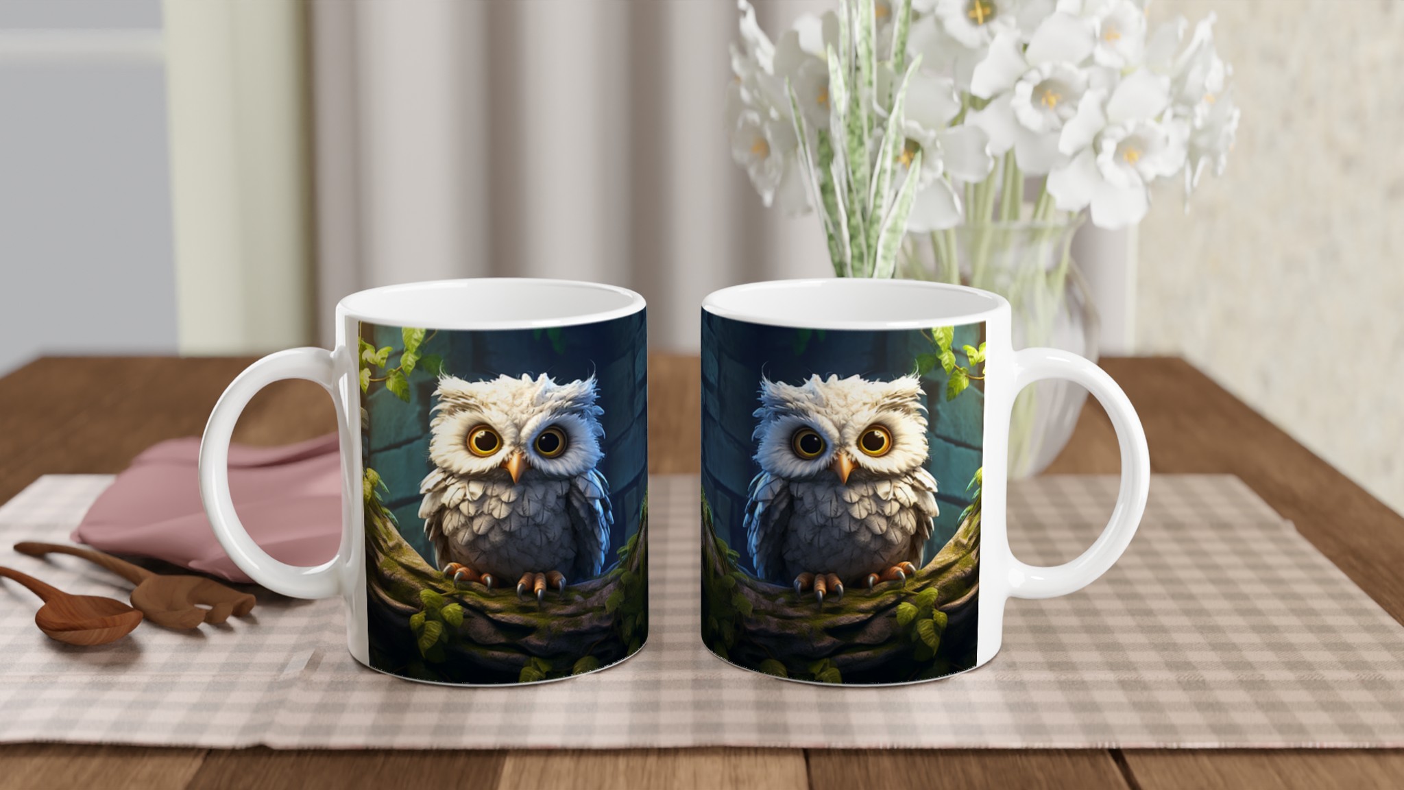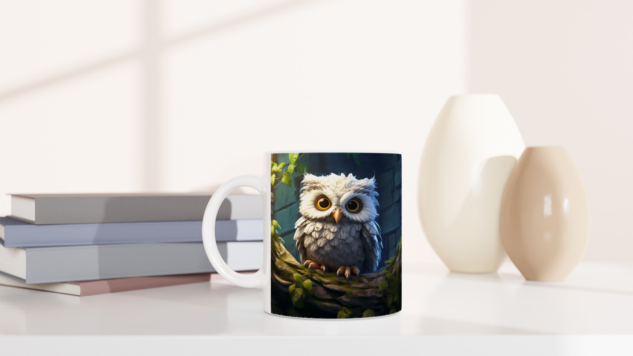 Föreställ dig en lugn gryning, en klok liten uggla som kikar fram, och den perfekta muggen i din hand. Den här stilrena keramiska muggen, prydd med en förtrollande uggledesign, blir snabbt en vardagsfavorit. Perfekt för morgonkaffet, kvällens varma choklad eller när du bara vill njuta av en kopp te. Den blanka ytan gör att trycken framhävs med klara och levande färger, som håller sig fina även efter många turer i mikron och diskmaskinen.
