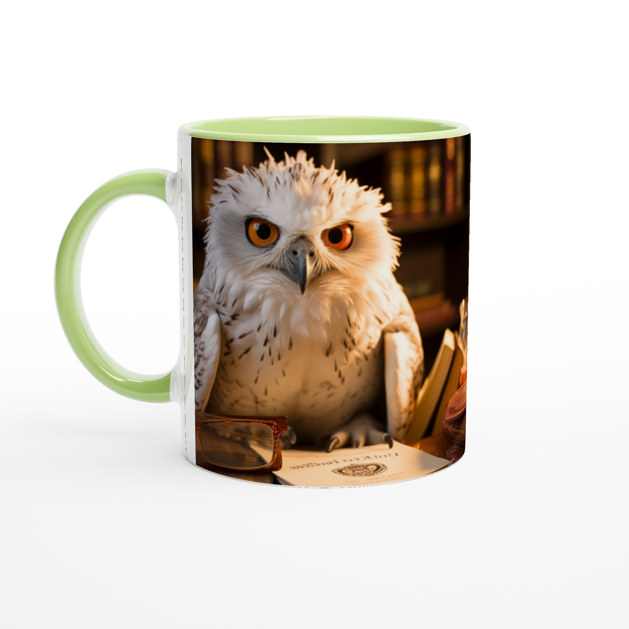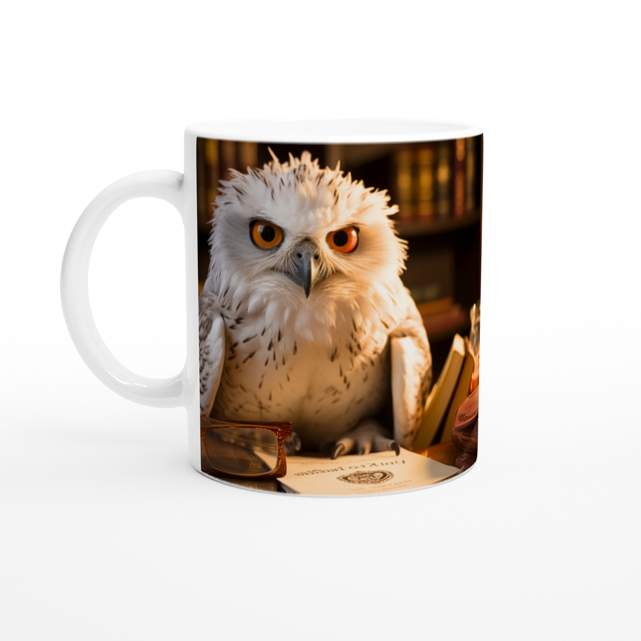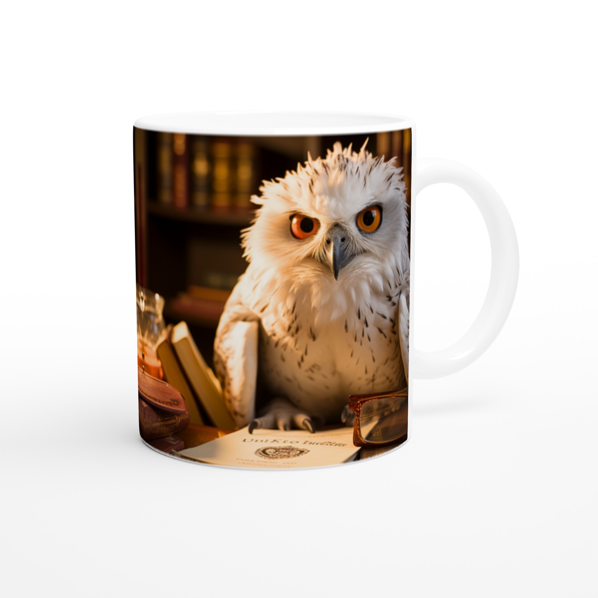 Låt dig inspireras av visdom och mystik med vår unika keramiska mugg, prydd med en majestätisk uggla i en bokfylld miljö. Denna mugg blir snabbt en vardagsfavorit, perfekt för att förhöja dina morgonkaffen, mysiga te-stunder eller när du djupdyker i en god bok. Den blanka vita ytan framhäver det intrikata ugglemotivet med klara och levande färger, som håller sig fina även efter otaliga turer i mikron och diskmaskinen.