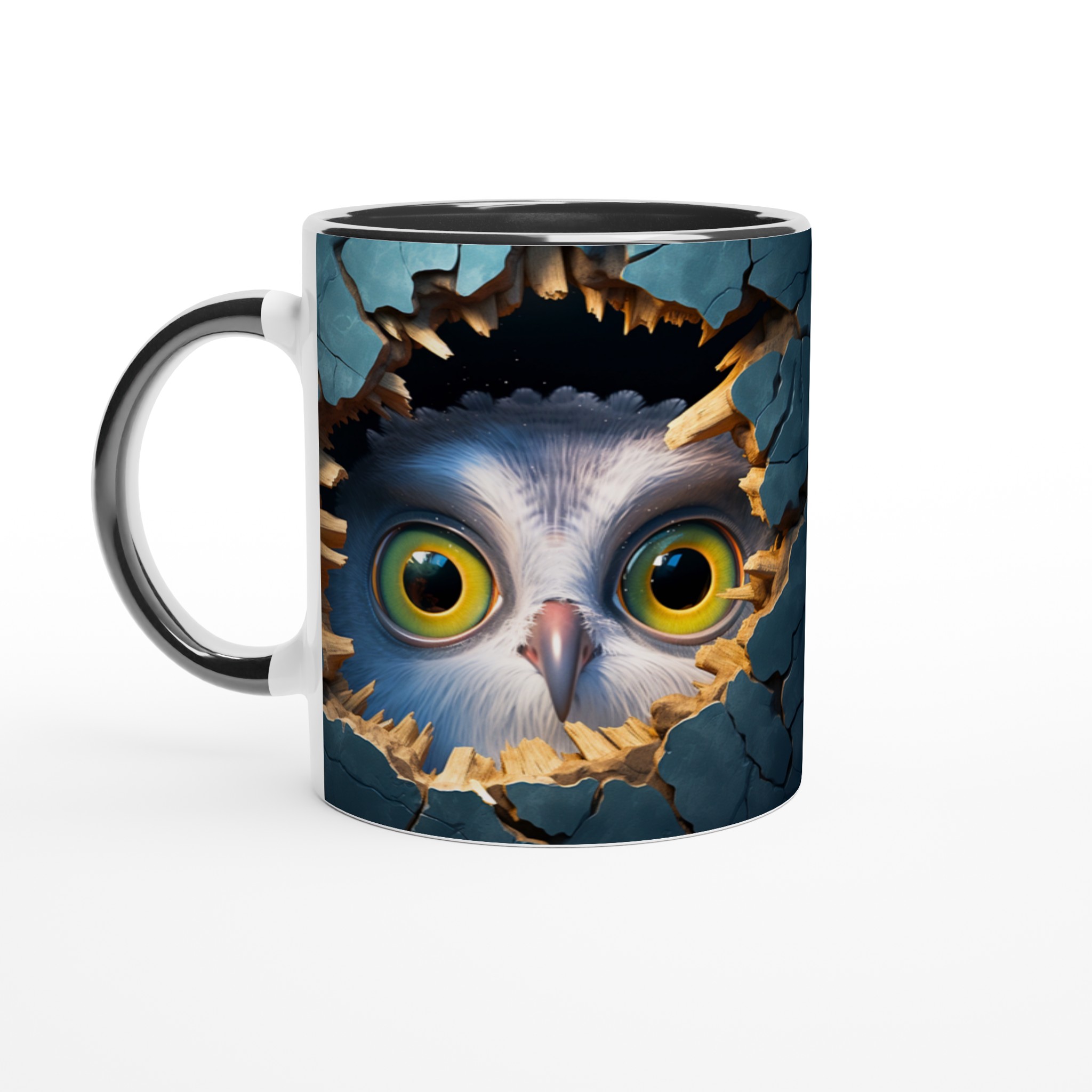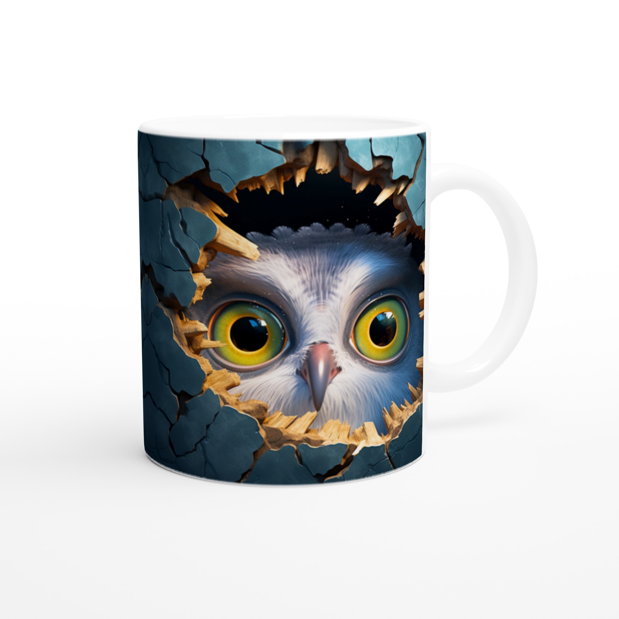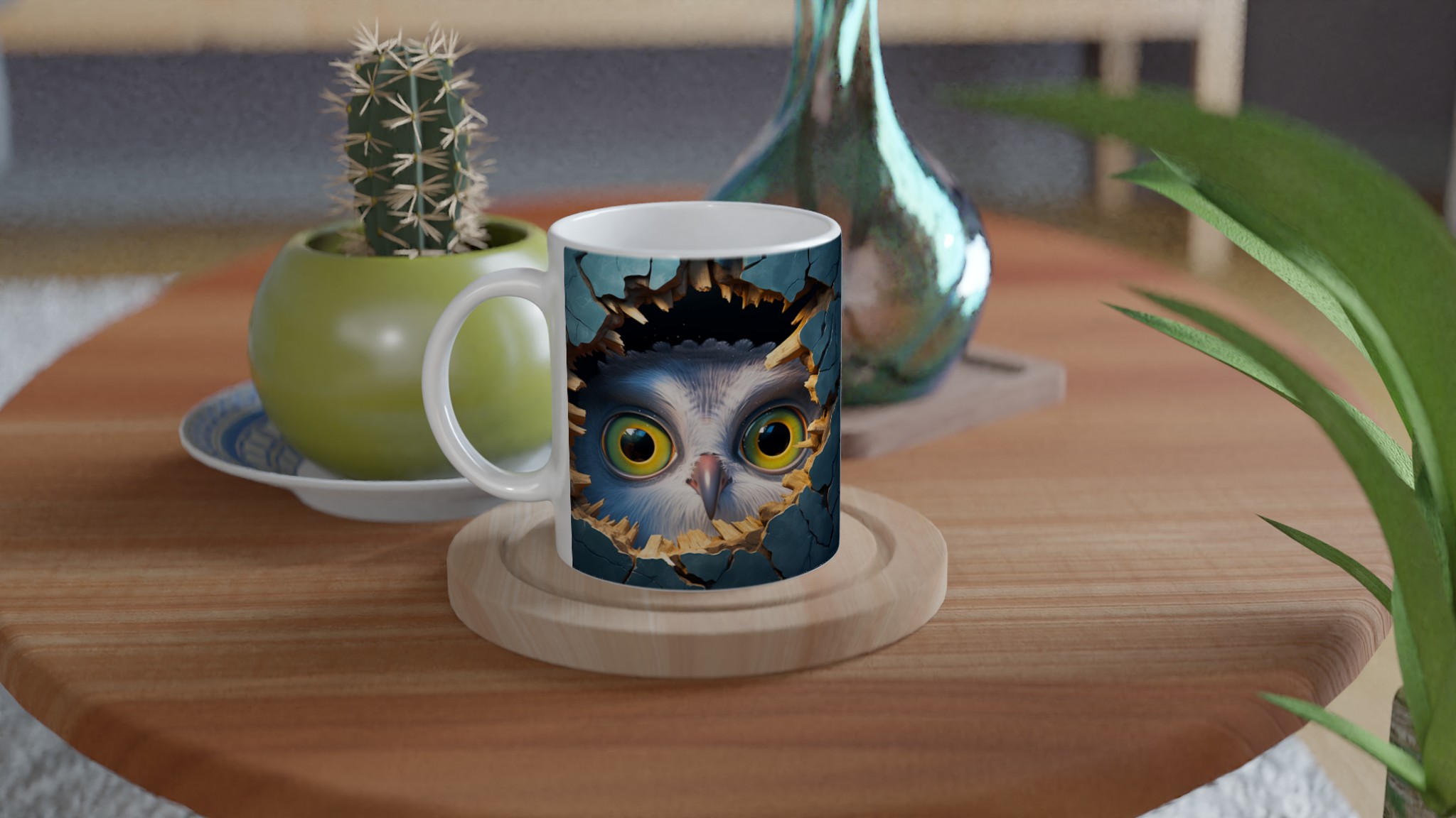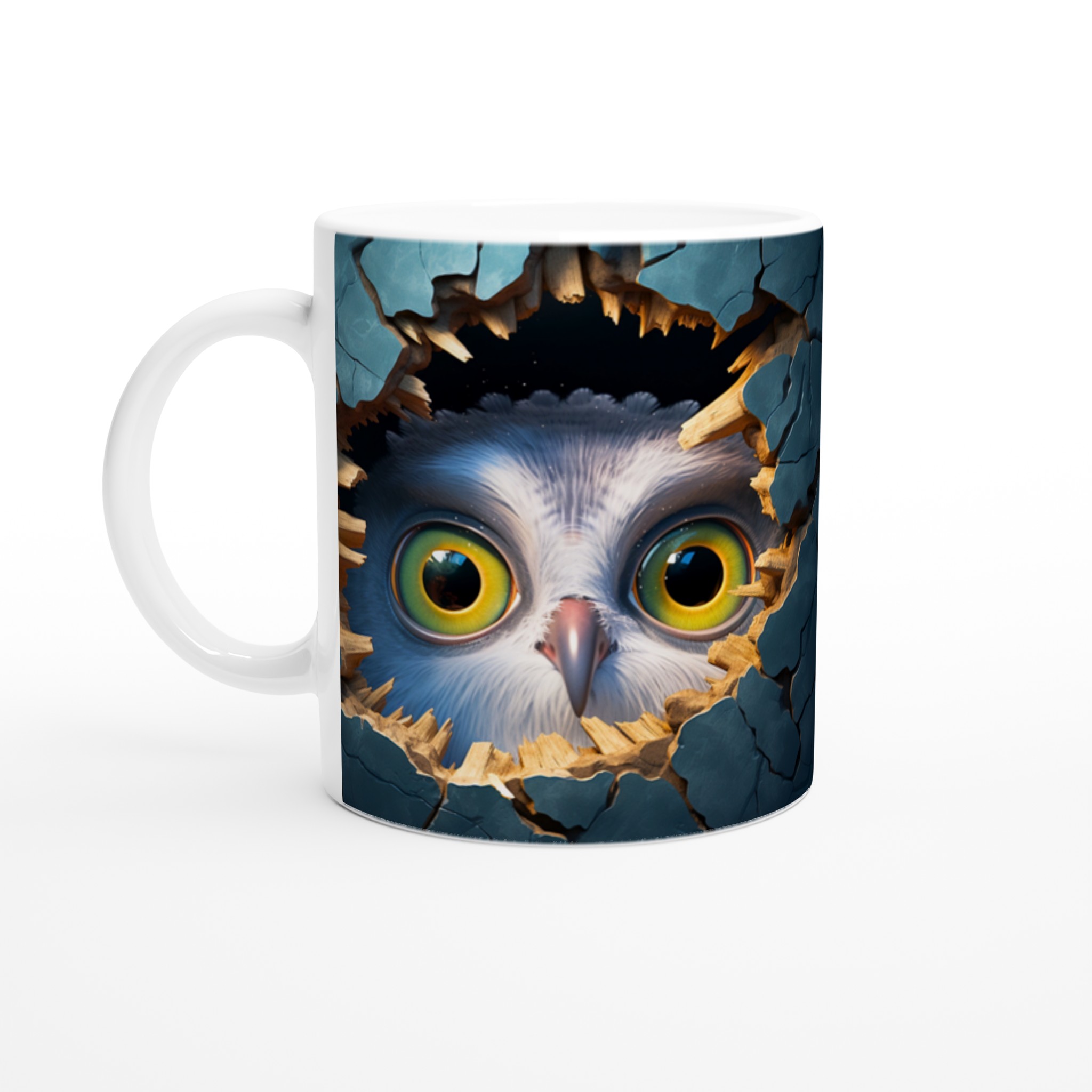 Låt denna unika keramiska mugg med sitt fängslande uggleögonmotiv bli din nya vardagsfavorit! De uttrycksfulla ögonen, som kikar fram ur en sprucken yta, ger varje sip en touch av mystik och charm. Perfekt för morgonkaffet, kvällens varma choklad eller när du bara vill njuta av en kopp te. Den blanka ytan gör att trycken framhävs med klara och levande färger, som håller sig fina även efter många turer i mikron och diskmaskinen.