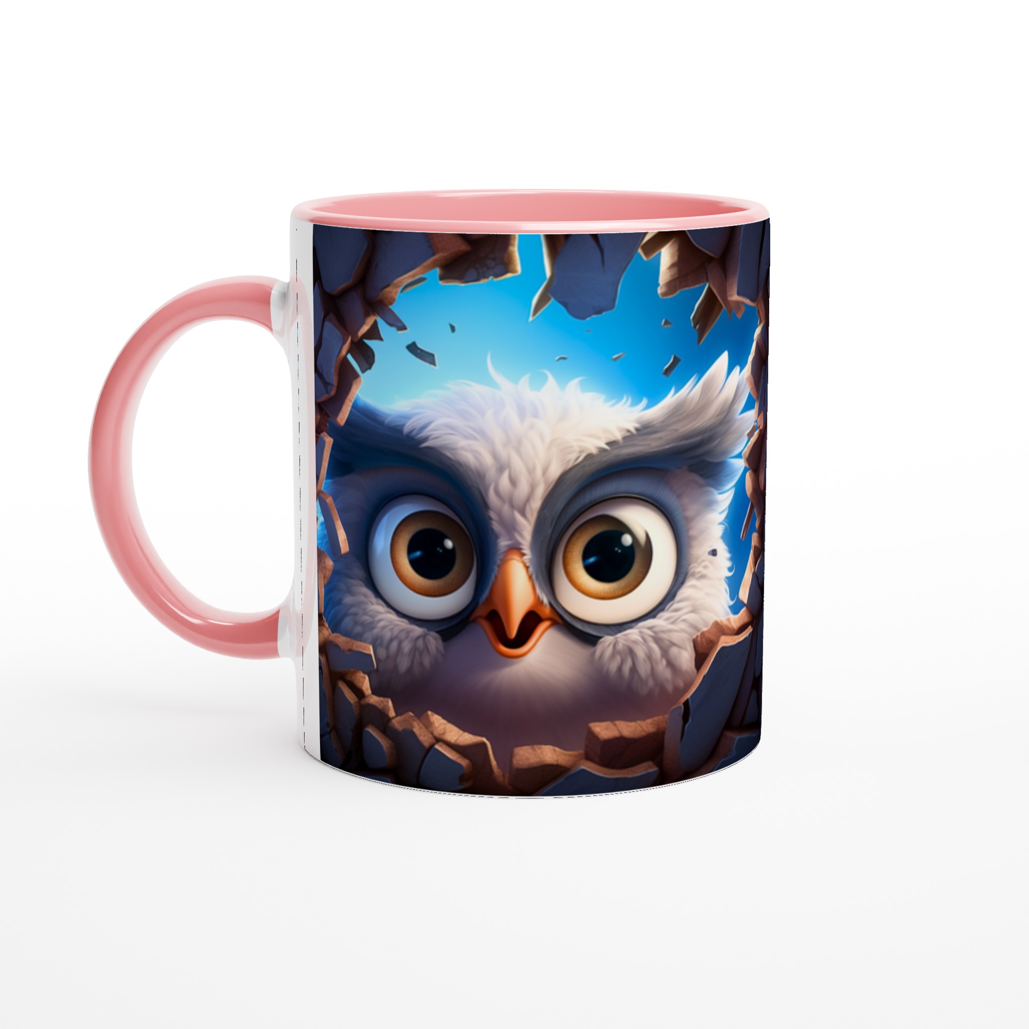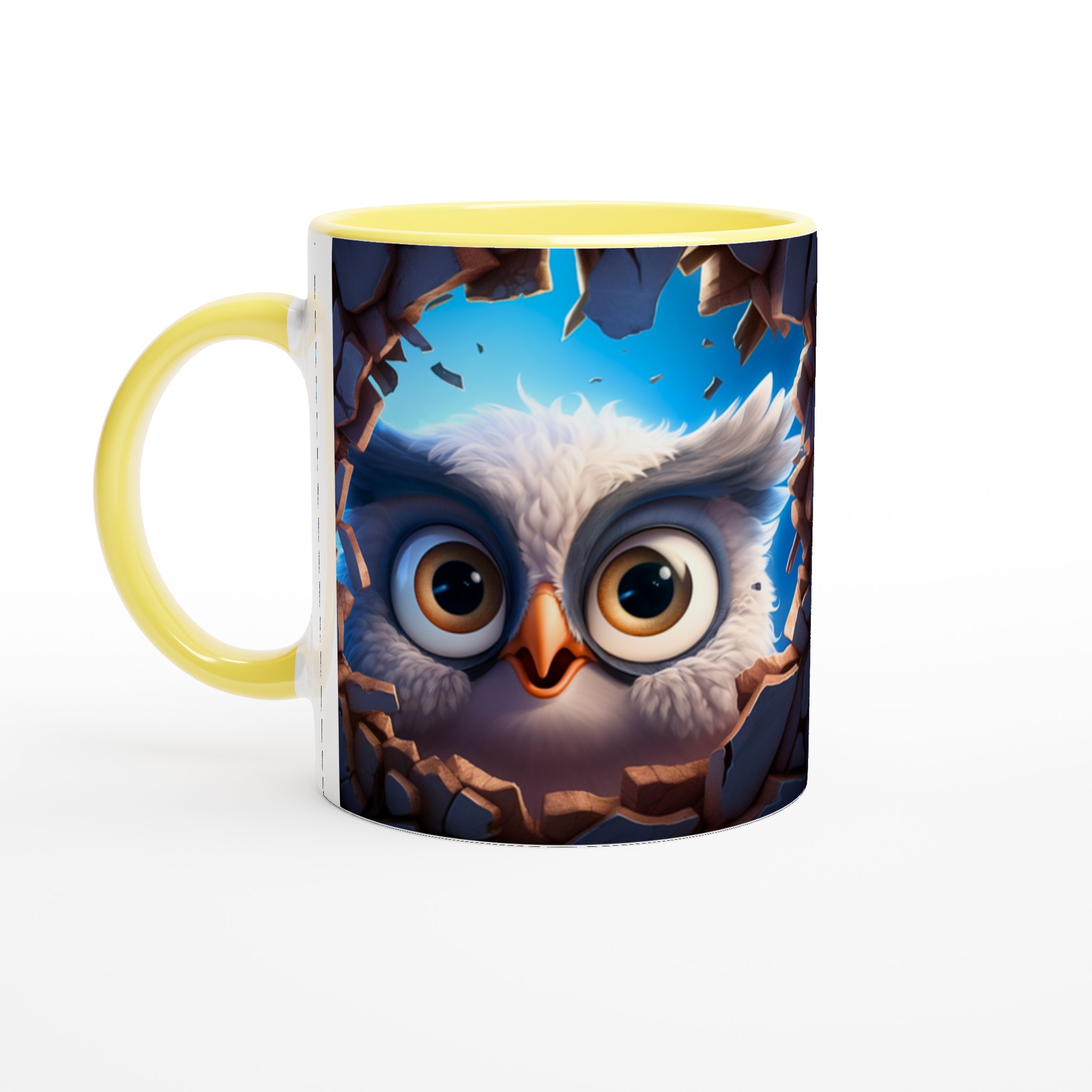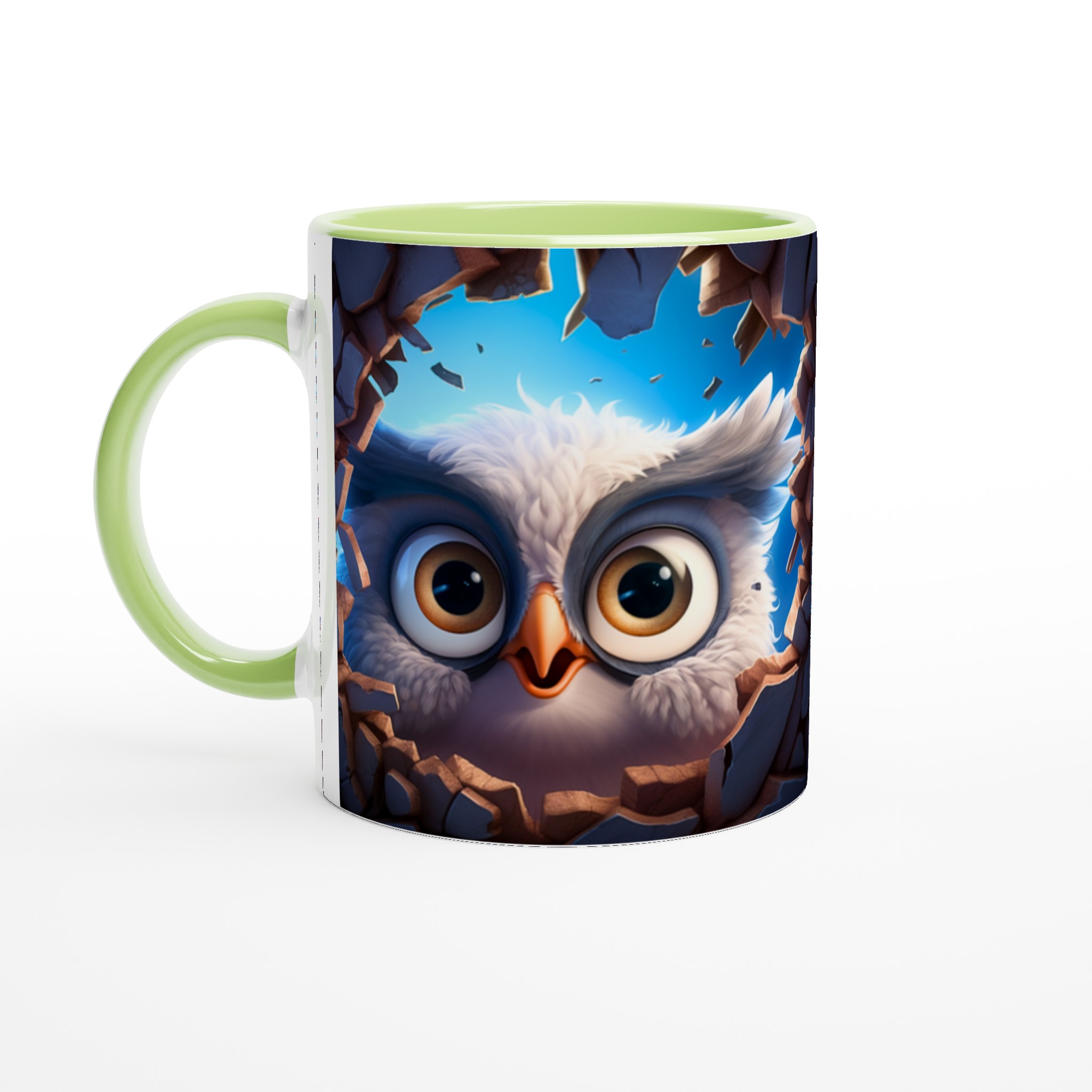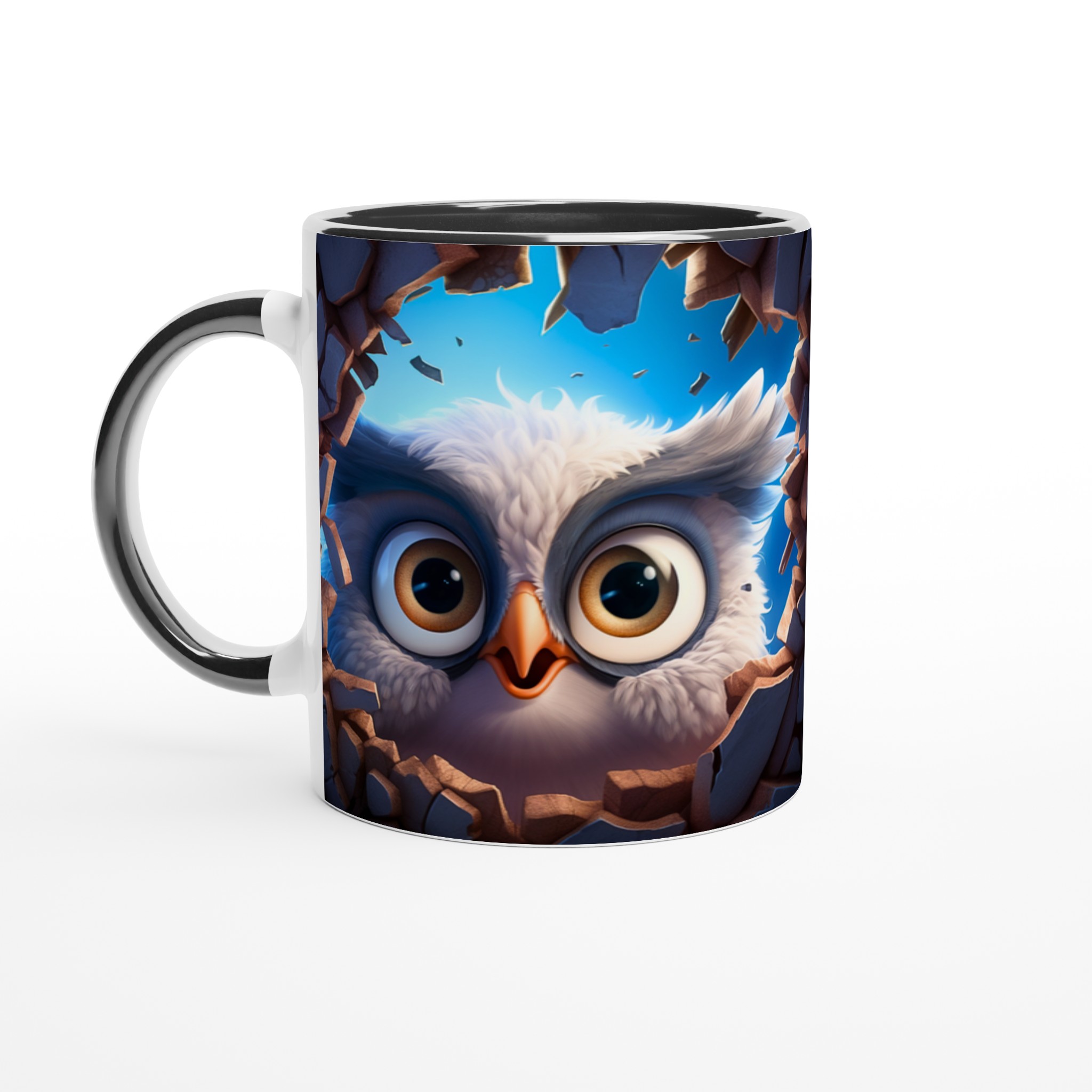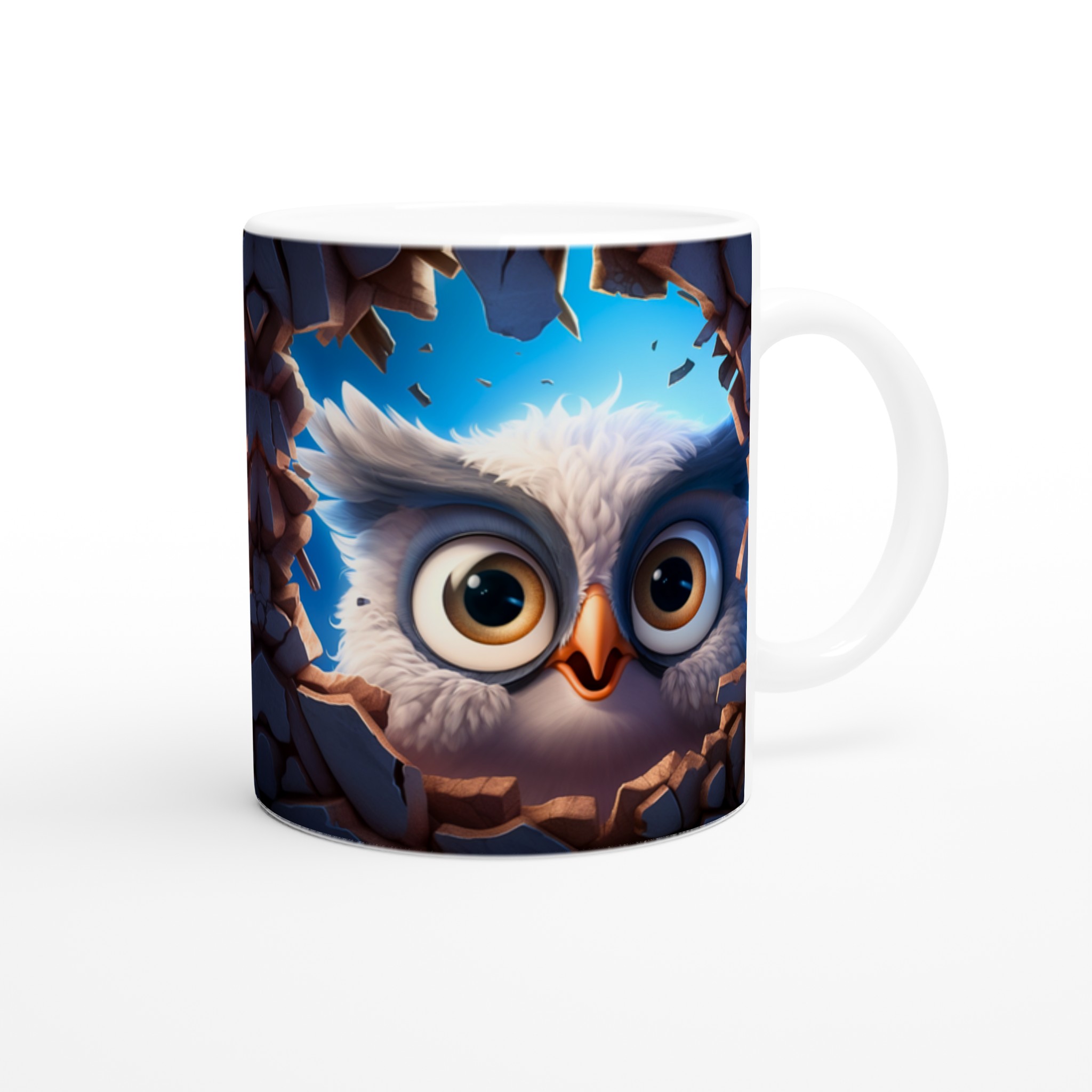 Låt dessa nyfikna små ugglor kika fram och förgylla din fikastund! Denna charmiga keramiska mugg blir snabbt en favorit för alla som älskar en touch av lekfull magi i vardagen. Perfekt för morgonkaffet, kvällens varma choklad eller när du bara vill njuta av en kopp te. Den blanka vita ytan gör att trycken framhävs med klara och levande färger, som håller sig fina även efter många turer i mikron och diskmaskinen.