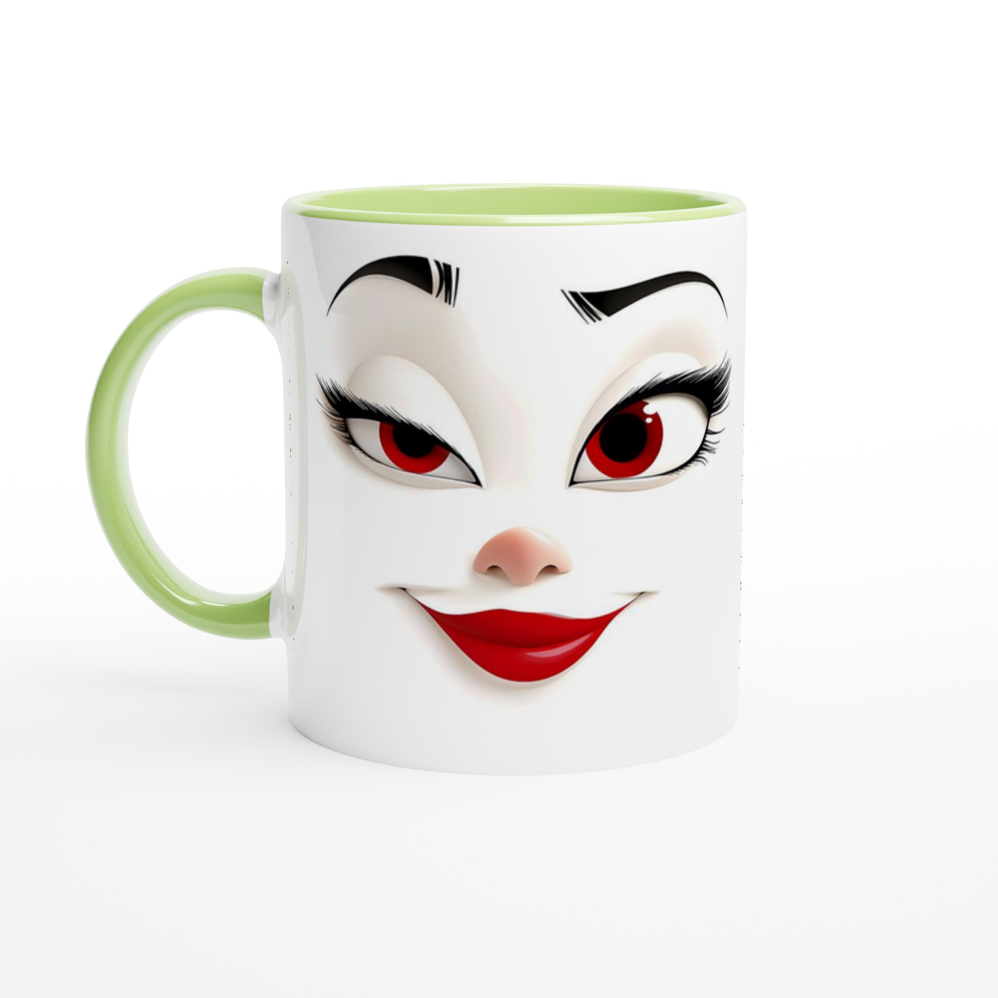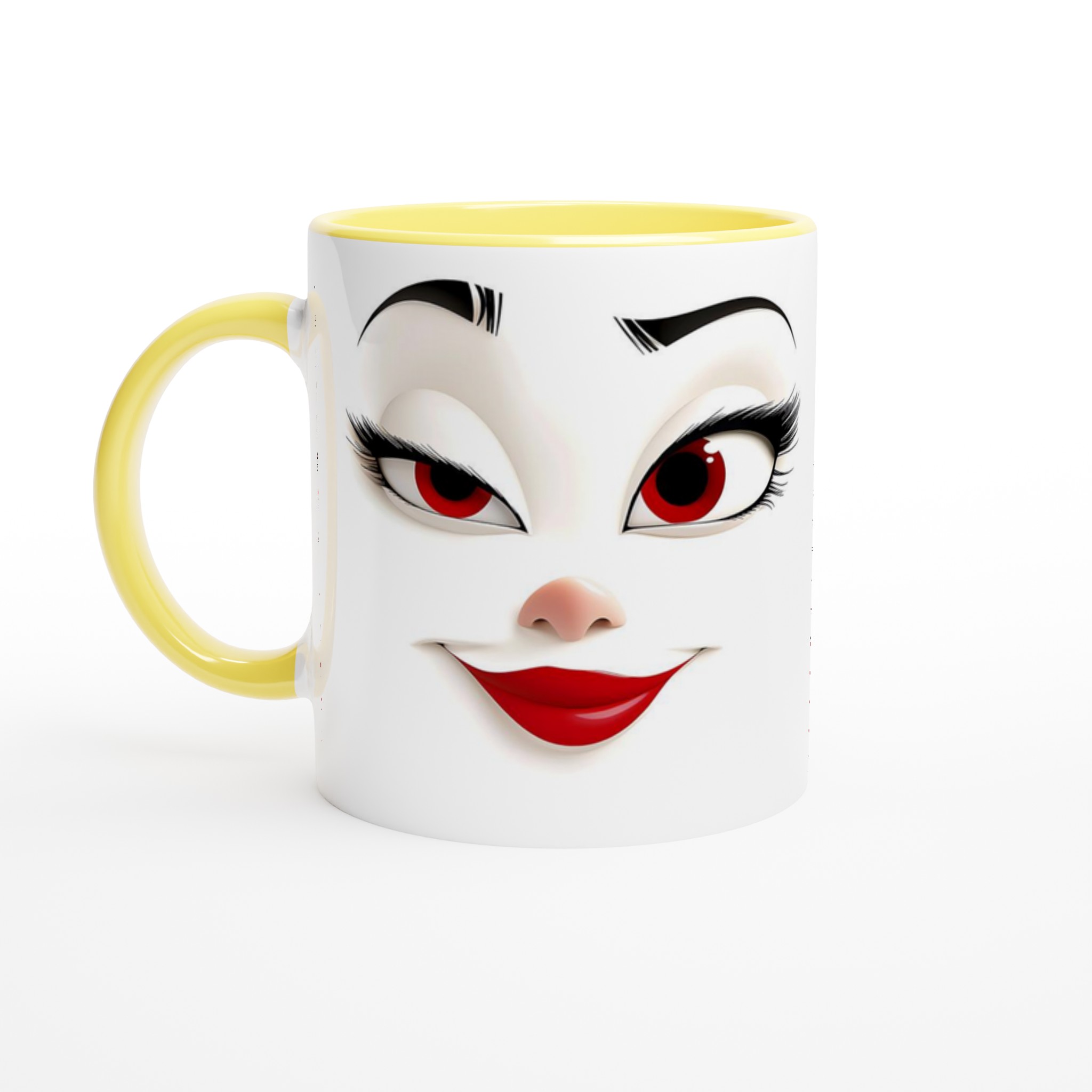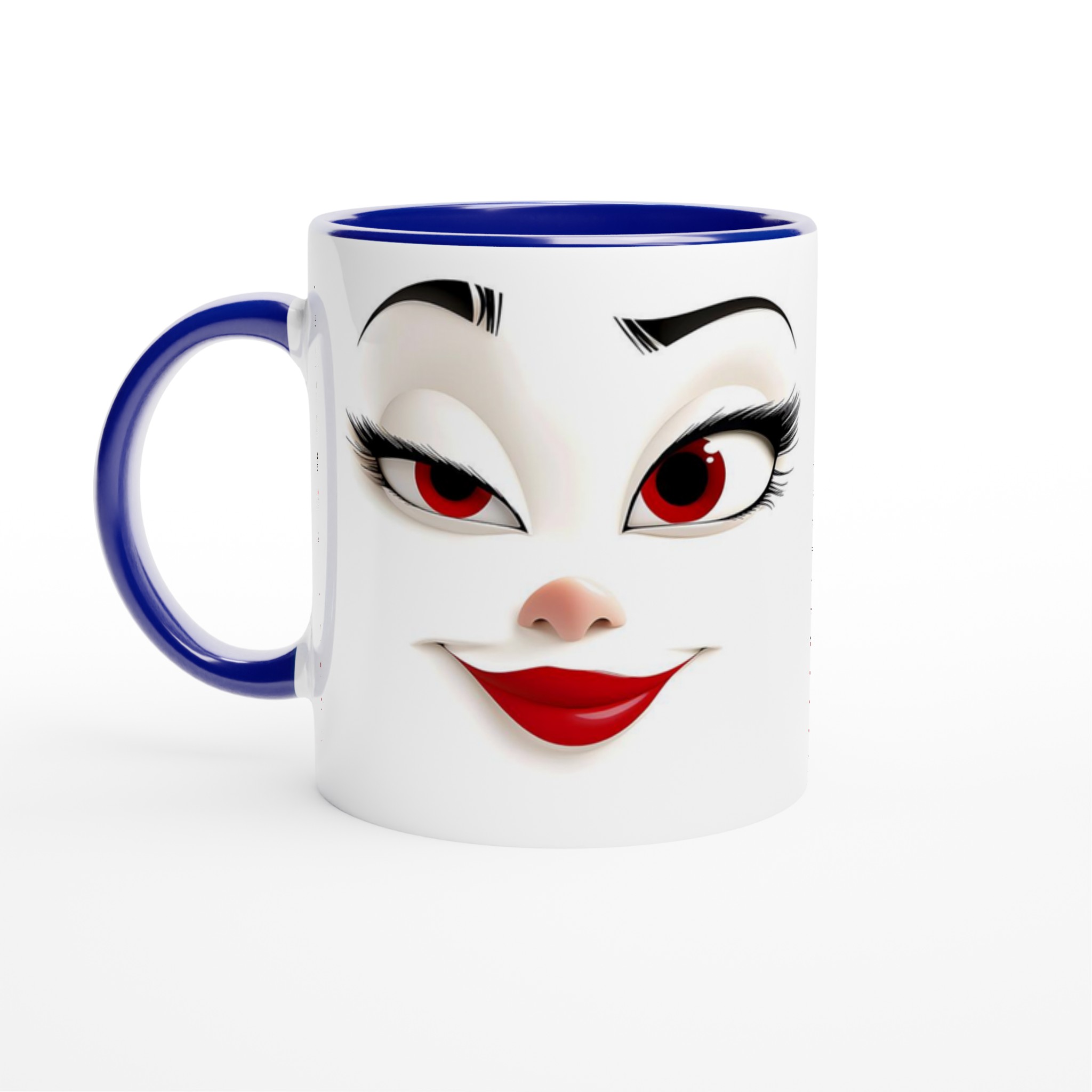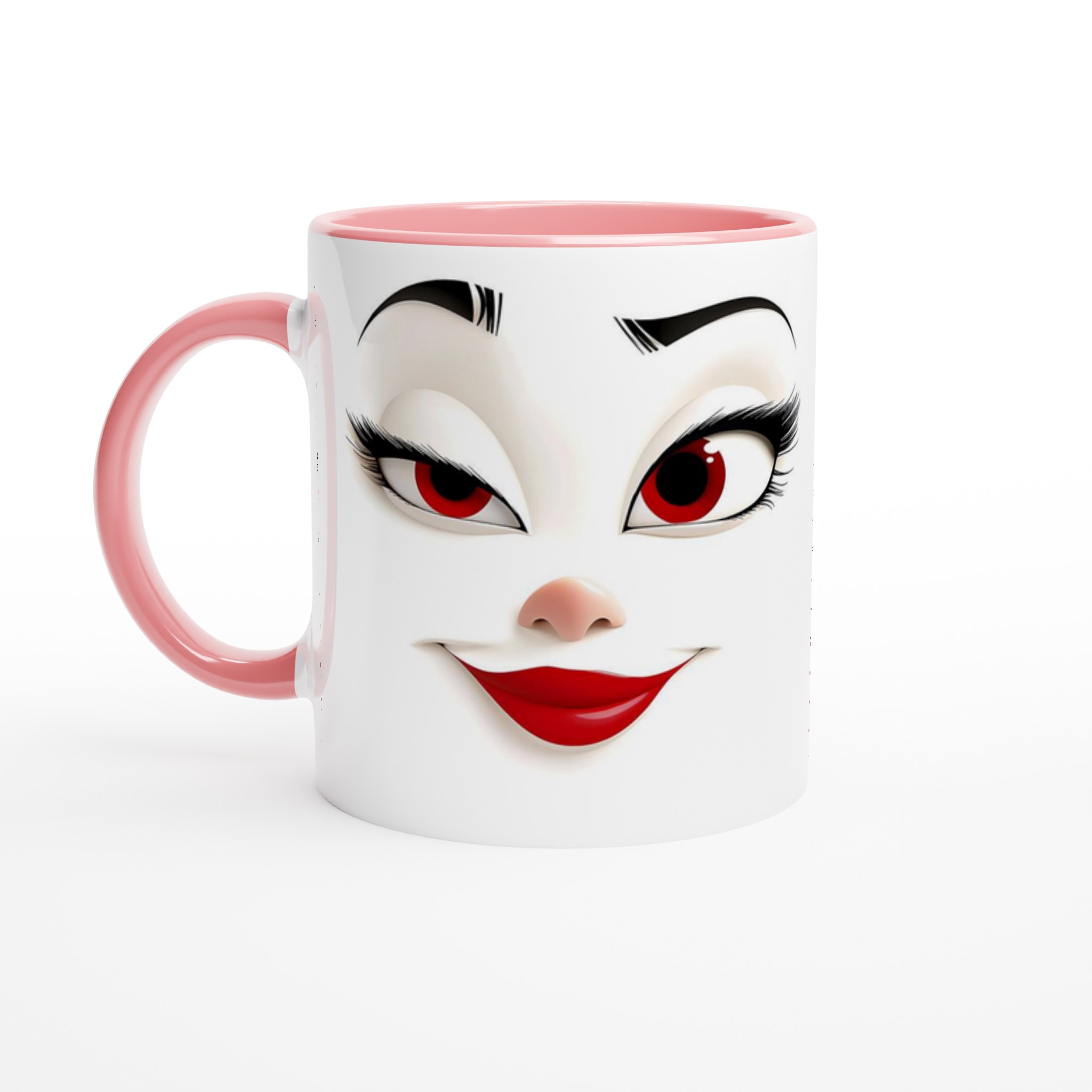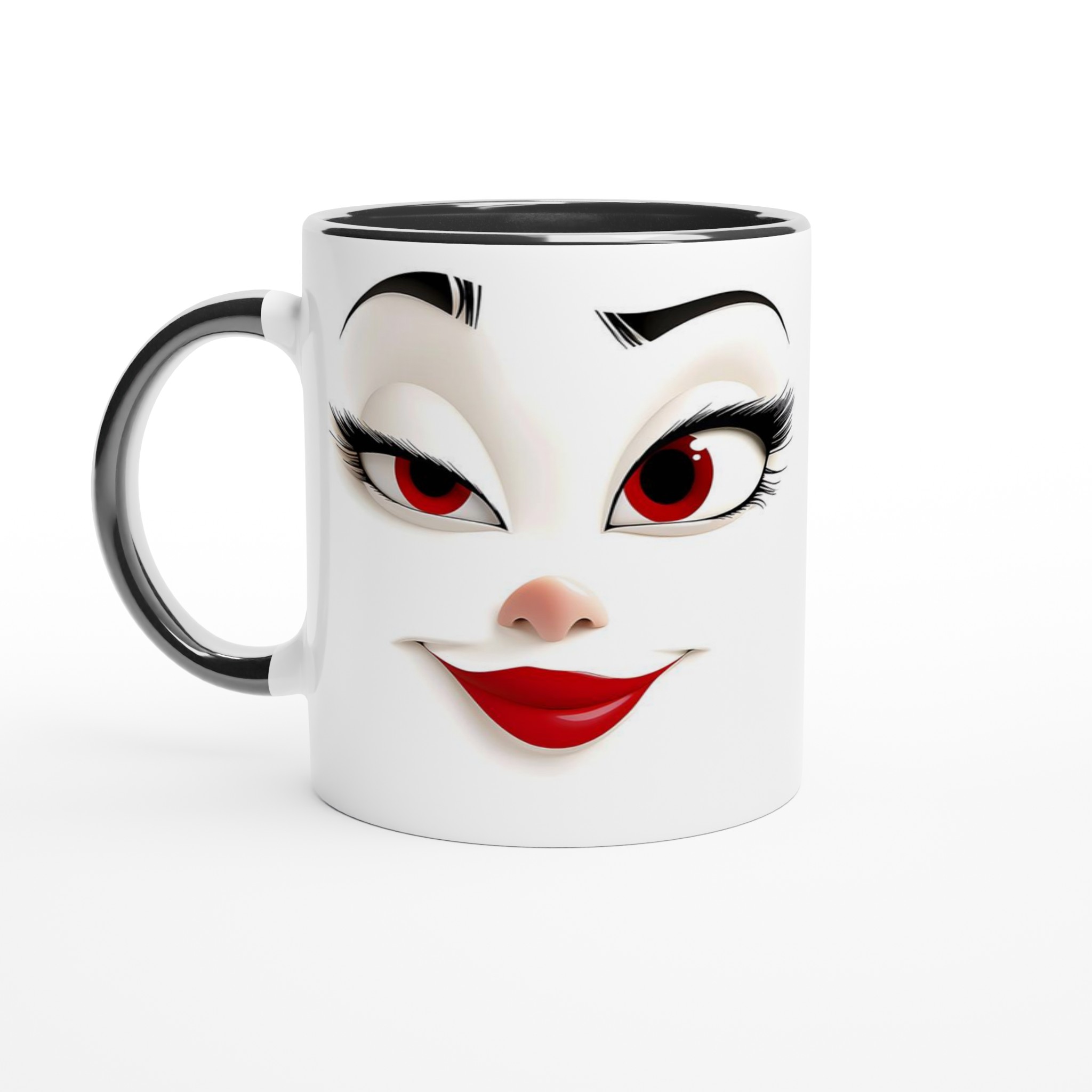 Lyft varje kaffestund med vår premium keramikmugg – stilren, hållbar och skapad för att låta ditt motiv glänsa. Denna mugg fångar blicken med sin distinkta design som påminner om en karaktäristisk ansiktsuttryck, komplett med livfulla röda ögon, mjukt böjda ögonbryn och sensuella röda läppar. Det är den perfekta konversationsstartaren för fikarasten eller en rolig present till den som älskar unika detaljer.