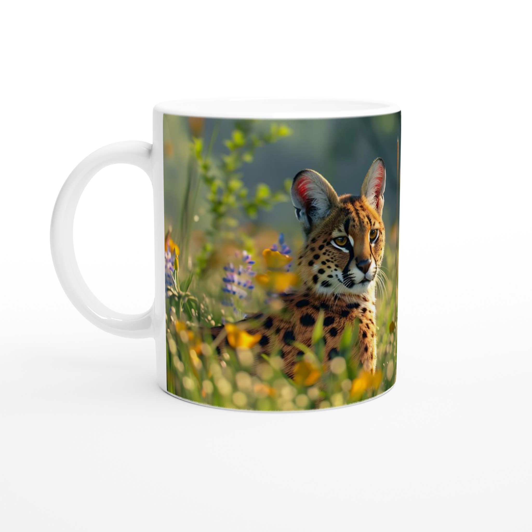 Inspirerad av den majestätiska vildkatten i det livfulla vårlandskapet, ger denna mugg en känsla av äventyr och skönhet till din dag. Den blanka vita ytan ger ett skarpt och levande tryck som verkligen sticker ut, oavsett om det är en personlig design, ett roligt citat eller en present till någon du tycker om.