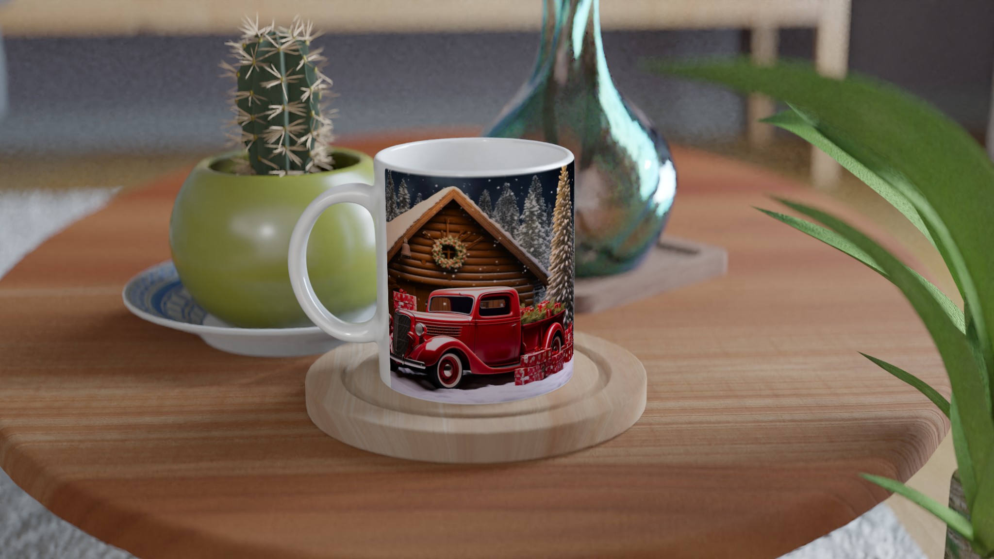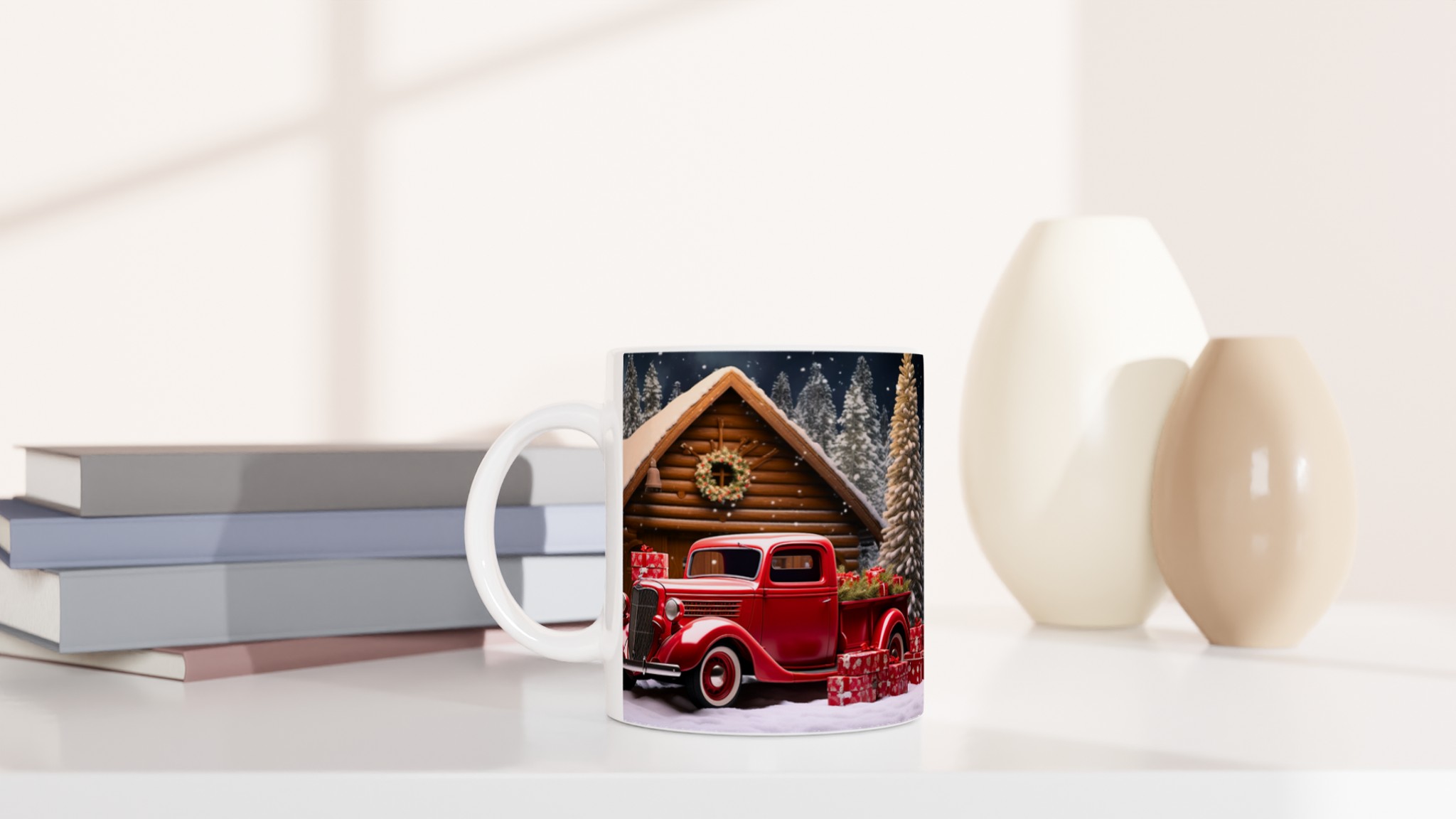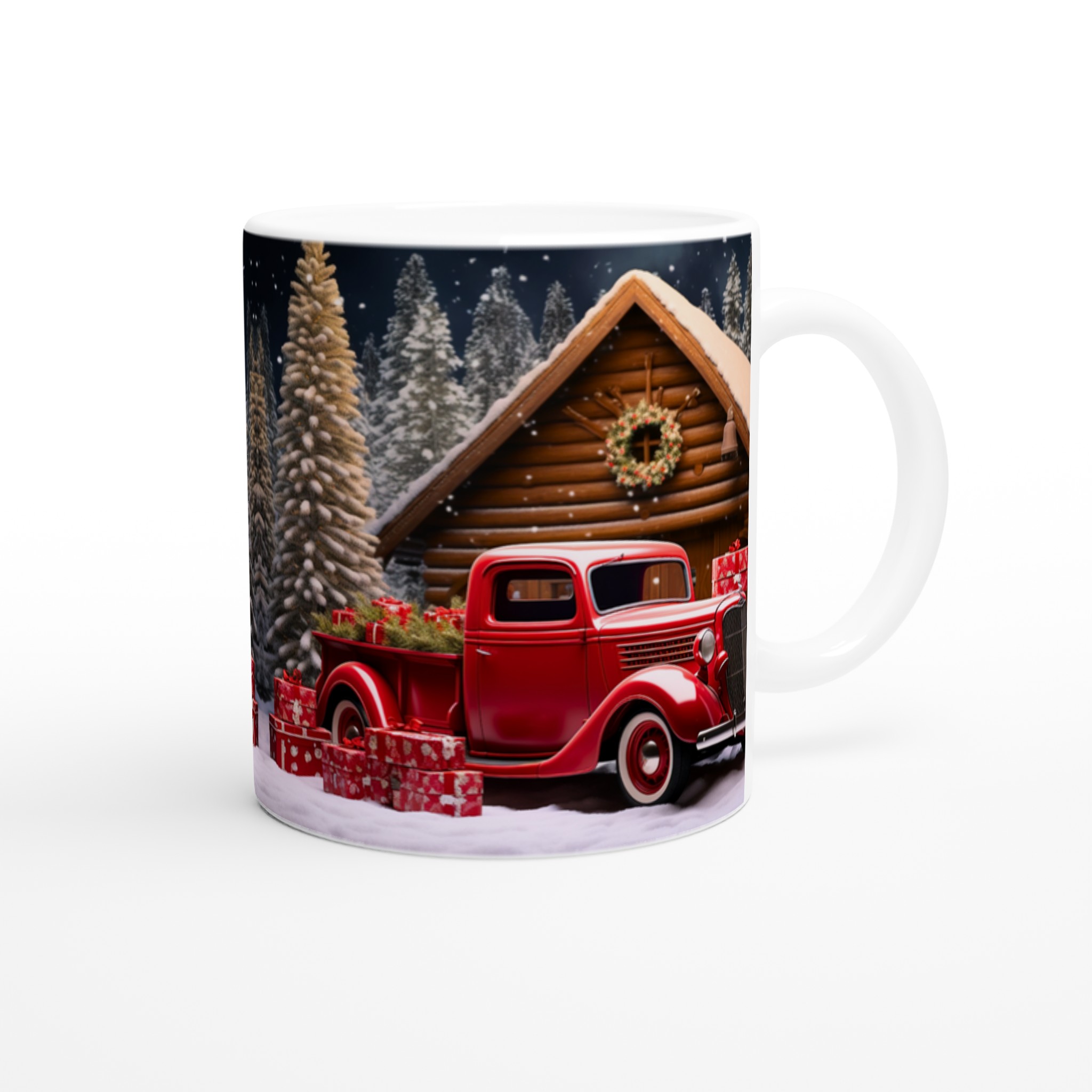 Vardagsfavorit Keramisk Mugg – Julig Röda Pick-up & Snölandskap i ditt val av färg