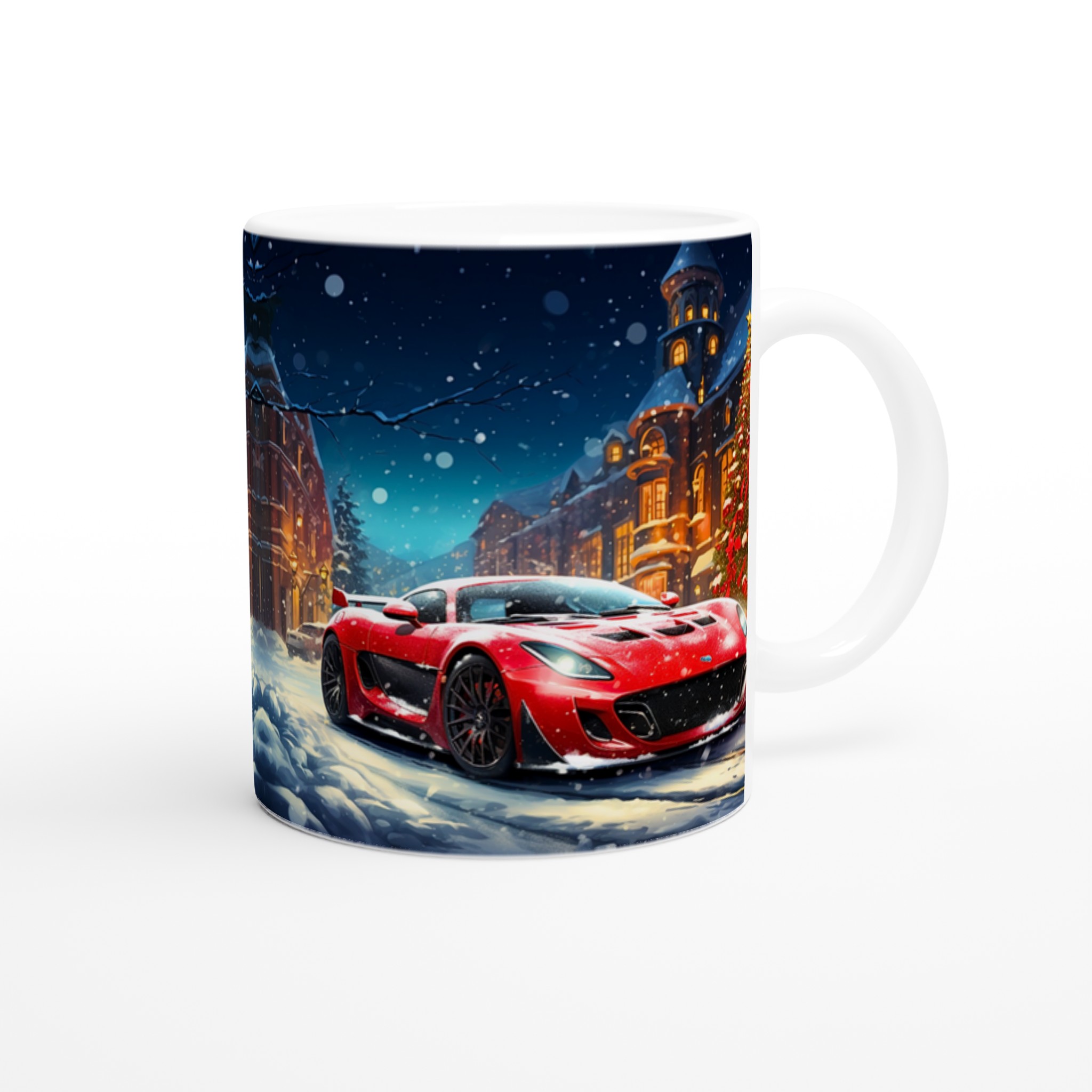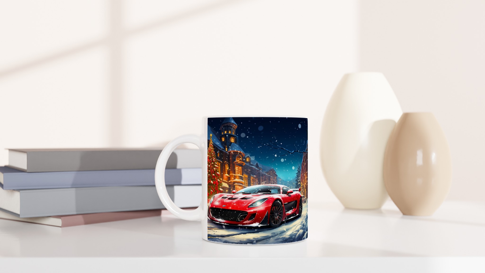 Fånga den magiska känslan av en snöig julnatt med denna charmiga keramiska mugg! Föreställ dig den stämningsfulla bilden av en elegant sportbil i ett vinterlandskap, omgiven av glittrande snö och festligt pyntade byggnader. Denna mugg blir snabbt en vardagsfavorit, perfekt för morgonkaffet, kvällens varma choklad eller när du bara vill njuta av en kopp te i en riktigt mysig atmosfär.