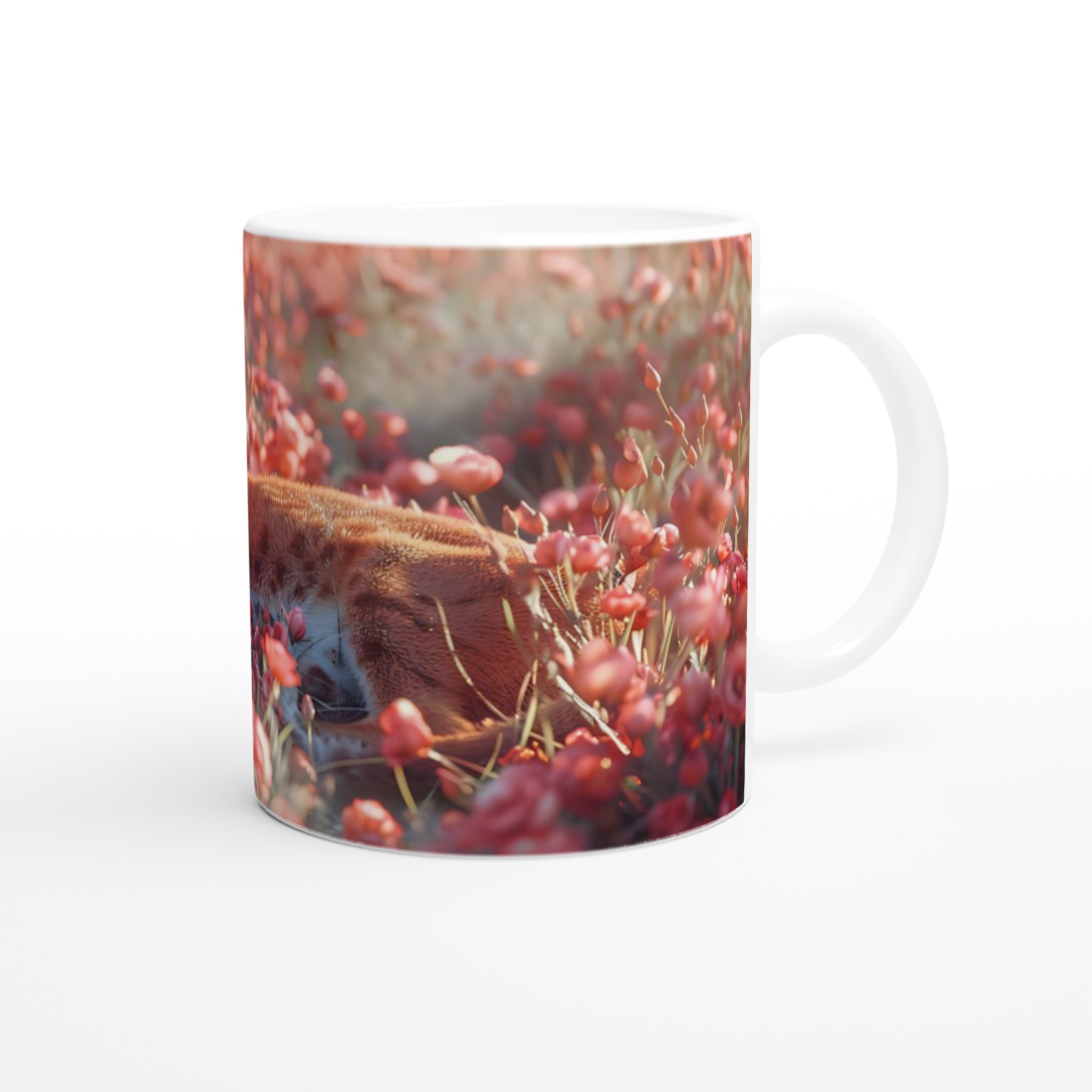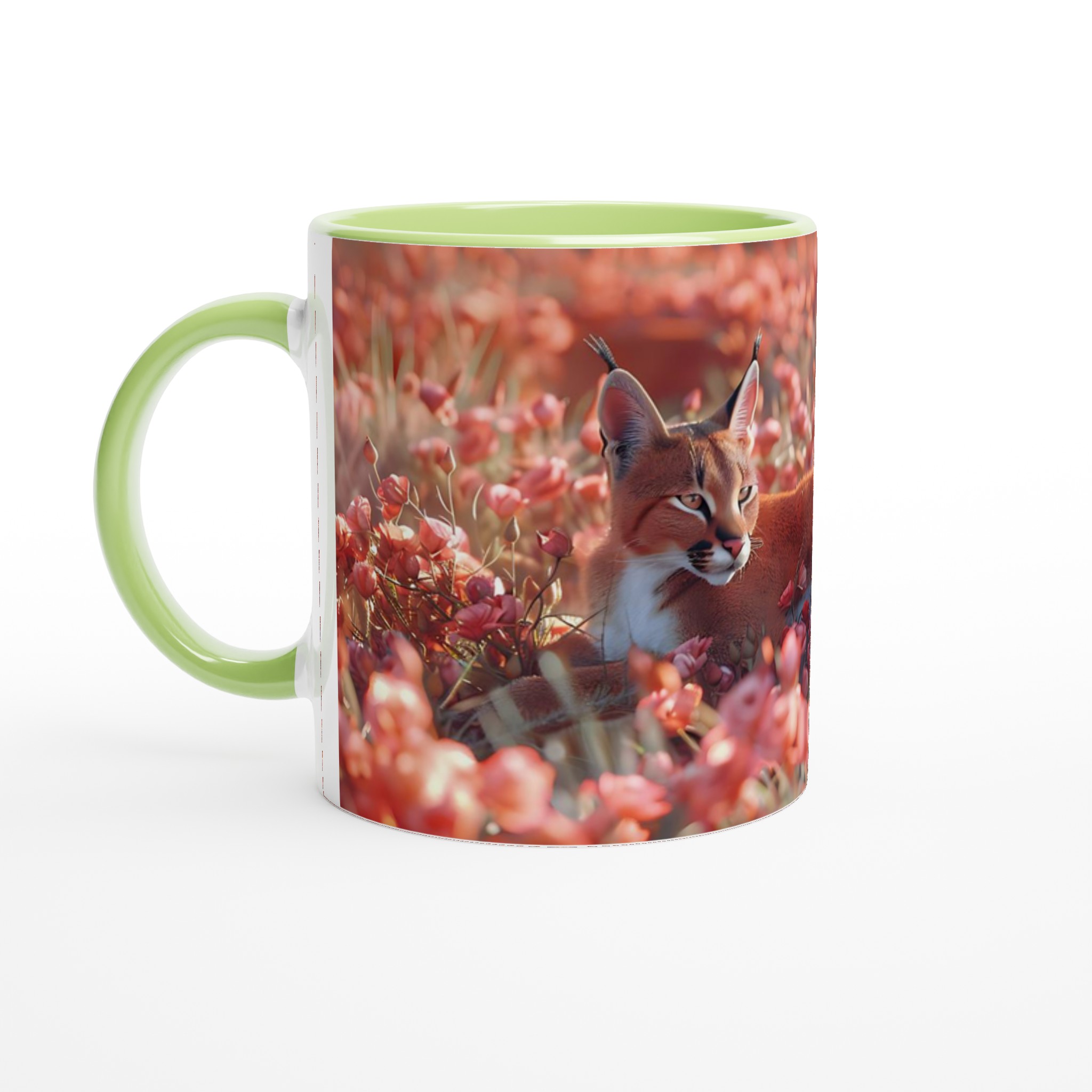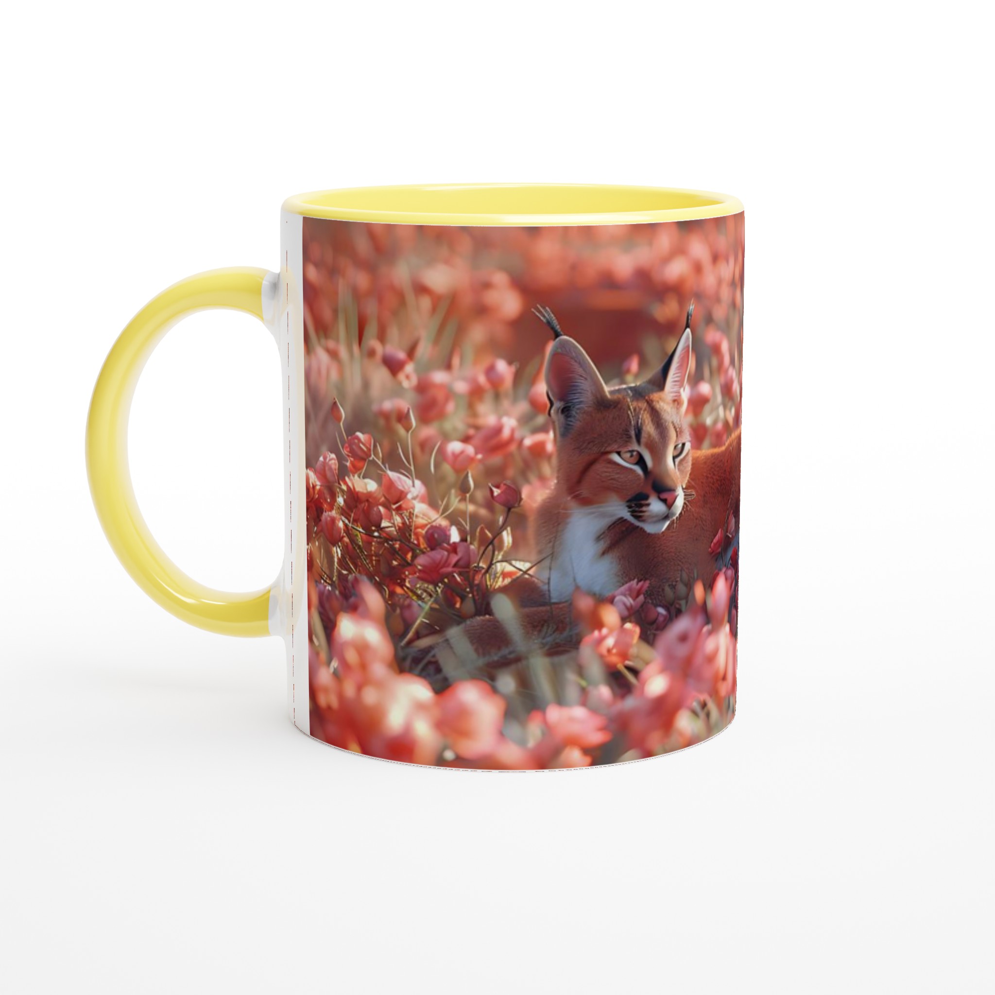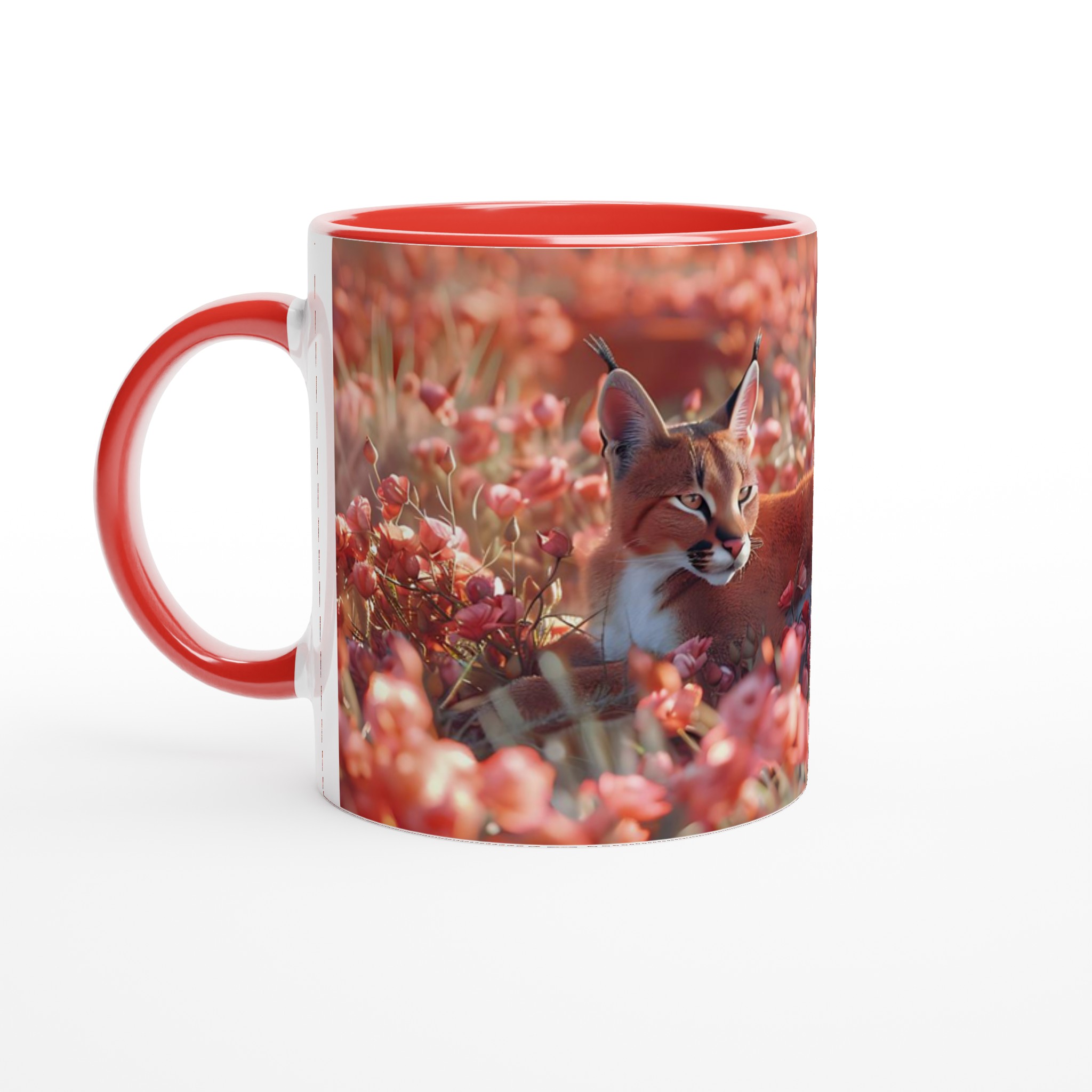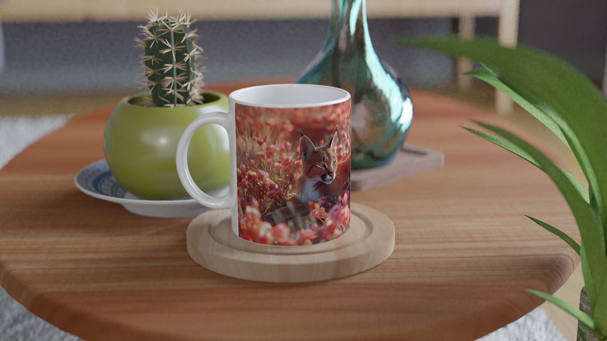 Föreställ dig en lugn stund, en solig eftermiddag, omgiven av blommande vallmo och sällskap av en majestätisk karakal. Denna drömska scen fångas perfekt på vår stilrena keramiska mugg, som snabbt blir en vardagsfavorit. Perfekt för morgonkaffet, kvällens varma choklad eller när du bara vill njuta av en kopp te. Den blanka ytan gör att trycket framhävs med klara och levande färger, som håller sig fina även efter många turer i mikron och diskmaskinen.
