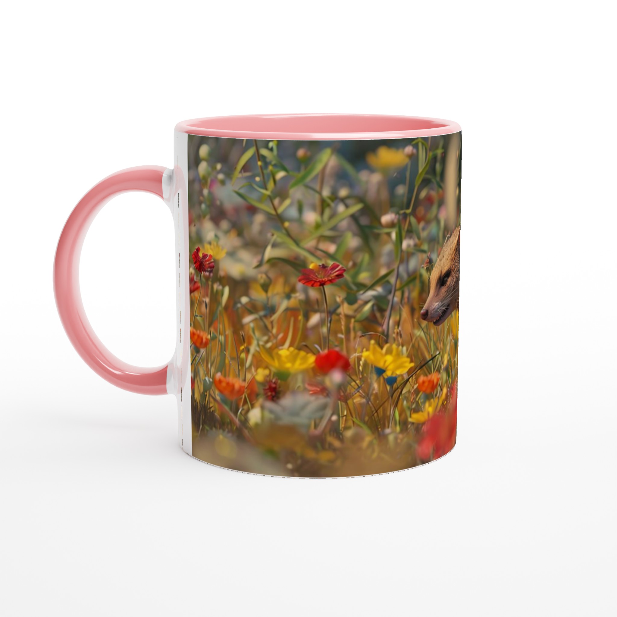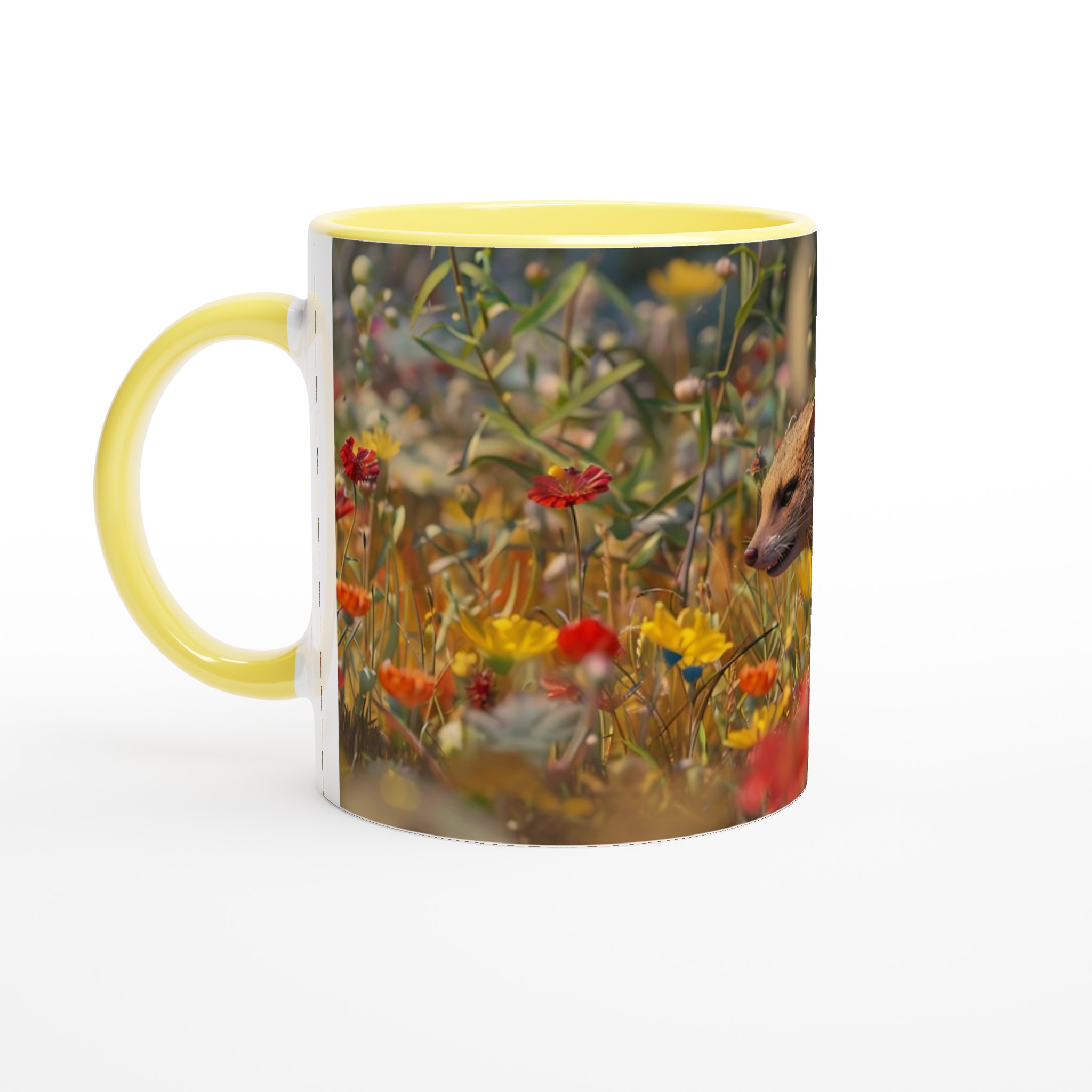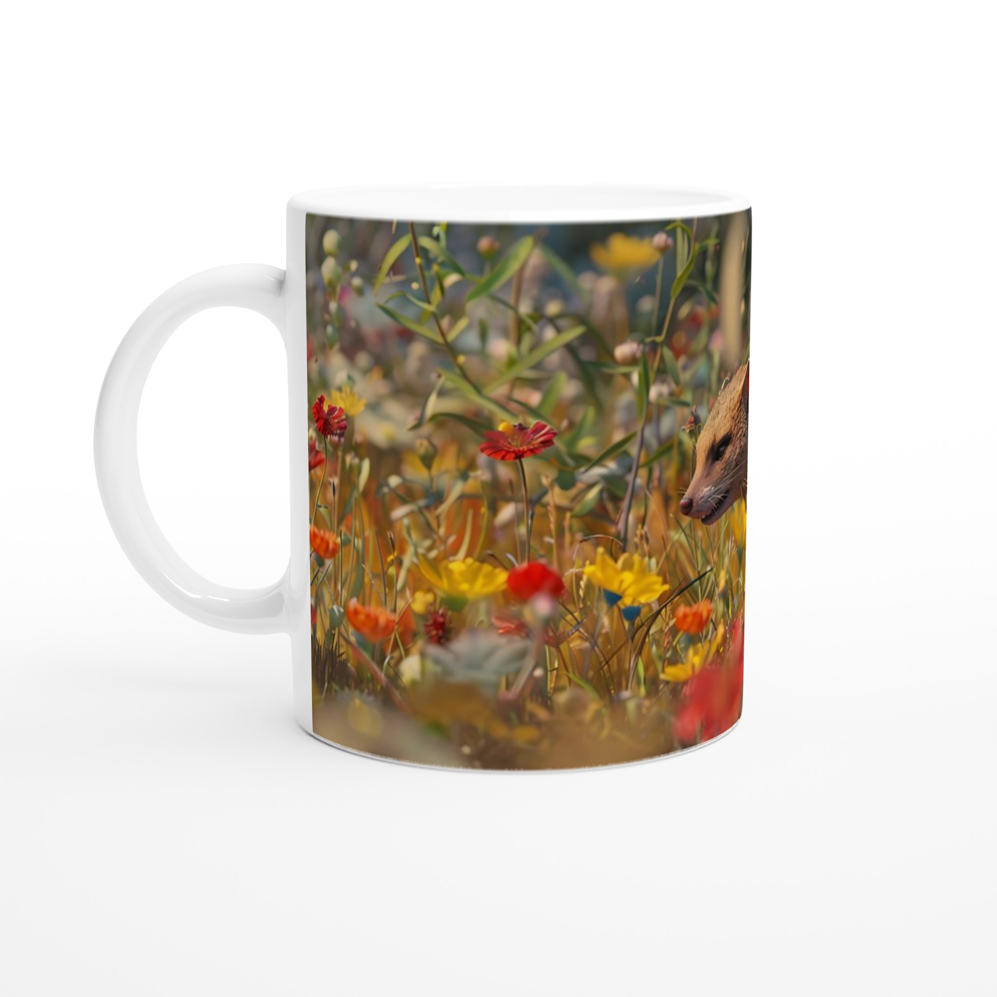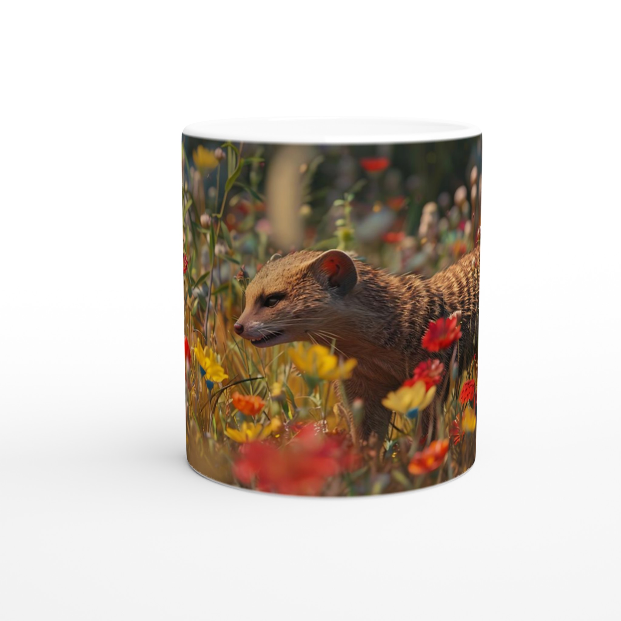 Väck dina sinnen varje morgon med denna stilrena keramiska mugg, som blir en omedelbar favorit. Föreställ dig den mysiga känslan när du sippar ditt morgonkaffe, njuter av en kvällens varma choklad eller bara kopplar av med en lugnande kopp te, omgiven av en lekfull illustration av en mungo mitt bland färgsprakande blommor. Den blanka vita ytan garanterar att detta charmiga motiv framhävs med klara och levande färger, som förblir lika fina och levande även efter otaliga turer i mikron och diskmaskinen.