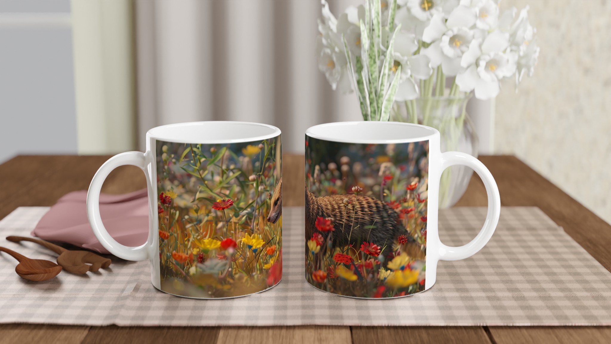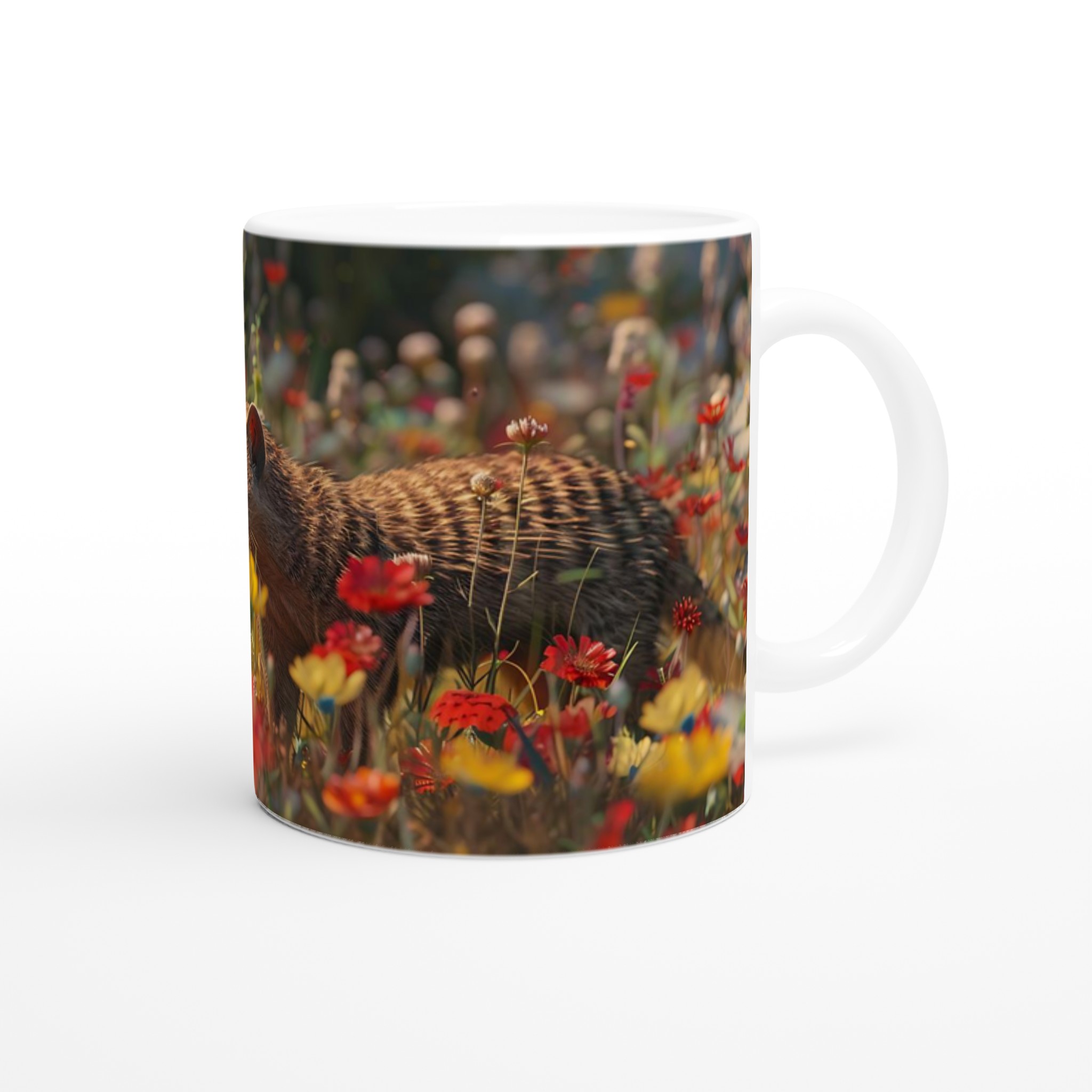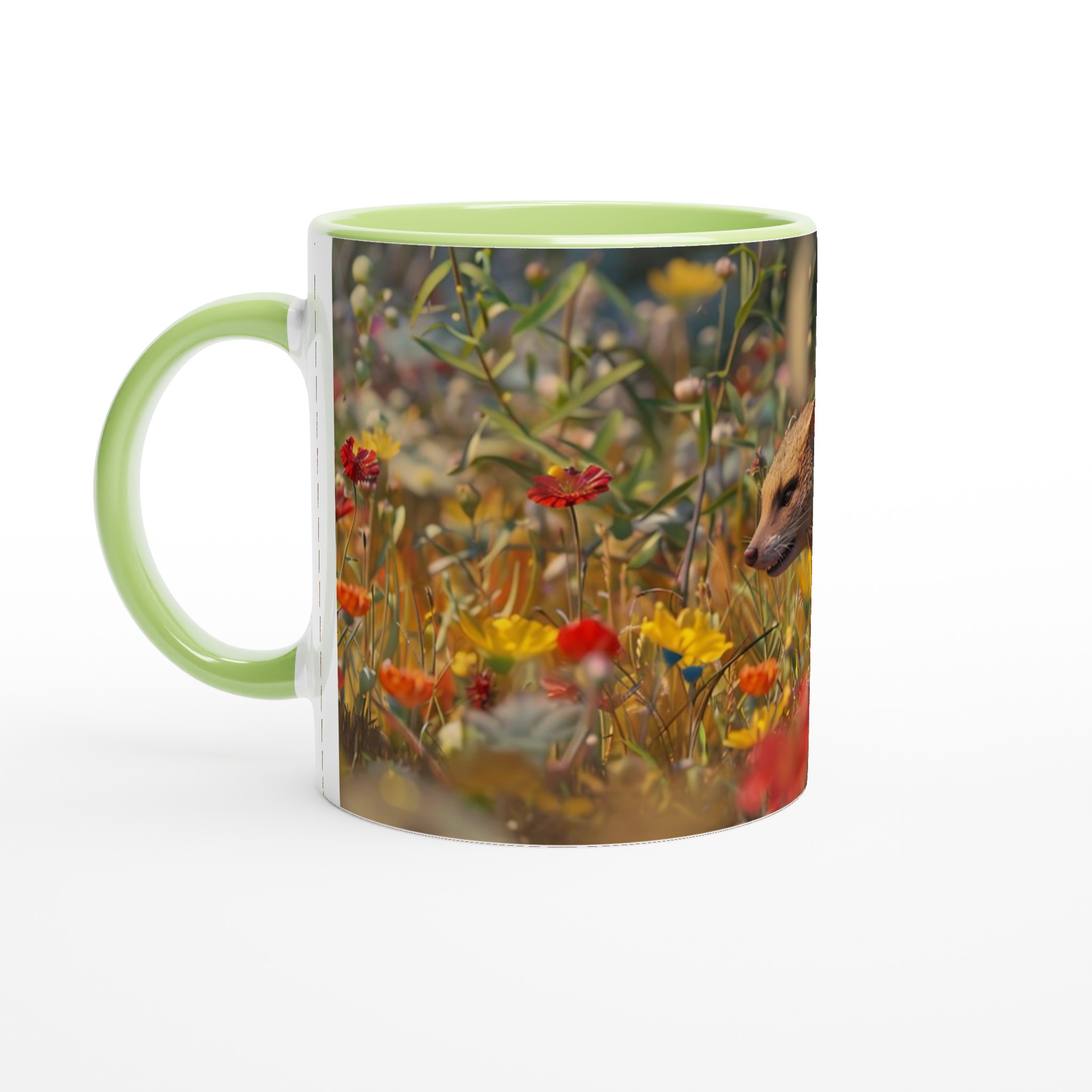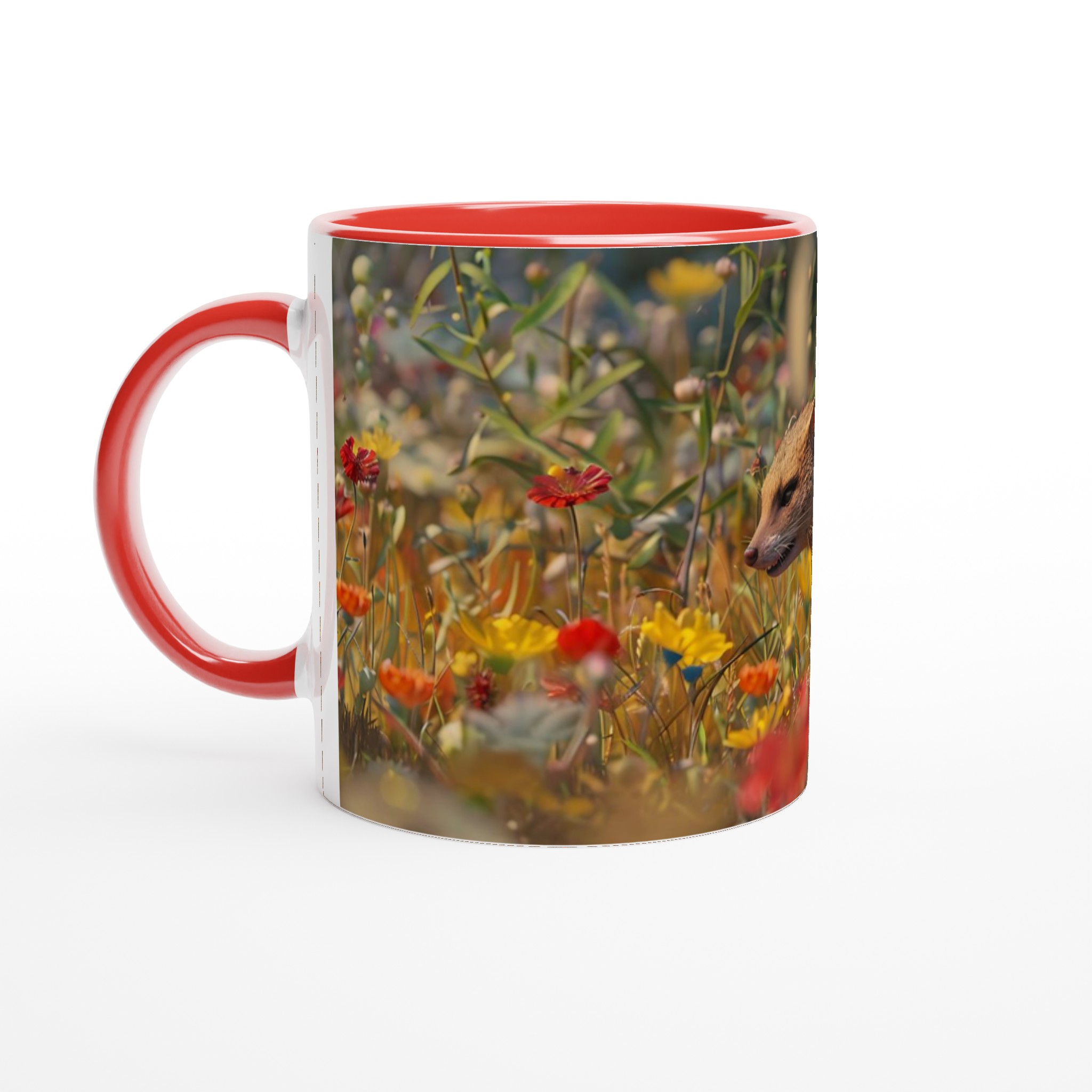 Väck dina sinnen varje morgon med denna stilrena keramiska mugg, som blir en omedelbar favorit. Föreställ dig den mysiga känslan när du sippar ditt morgonkaffe, njuter av en kvällens varma choklad eller bara kopplar av med en lugnande kopp te, omgiven av en lekfull illustration av en mungo mitt bland färgsprakande blommor. Den blanka vita ytan garanterar att detta charmiga motiv framhävs med klara och levande färger, som förblir lika fina och levande även efter otaliga turer i mikron och diskmaskinen.