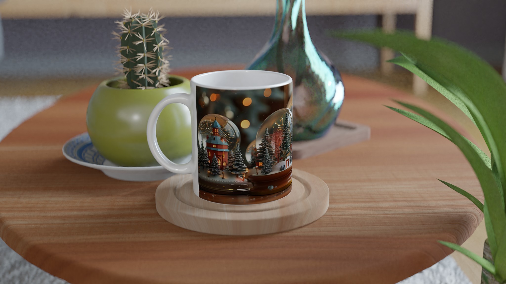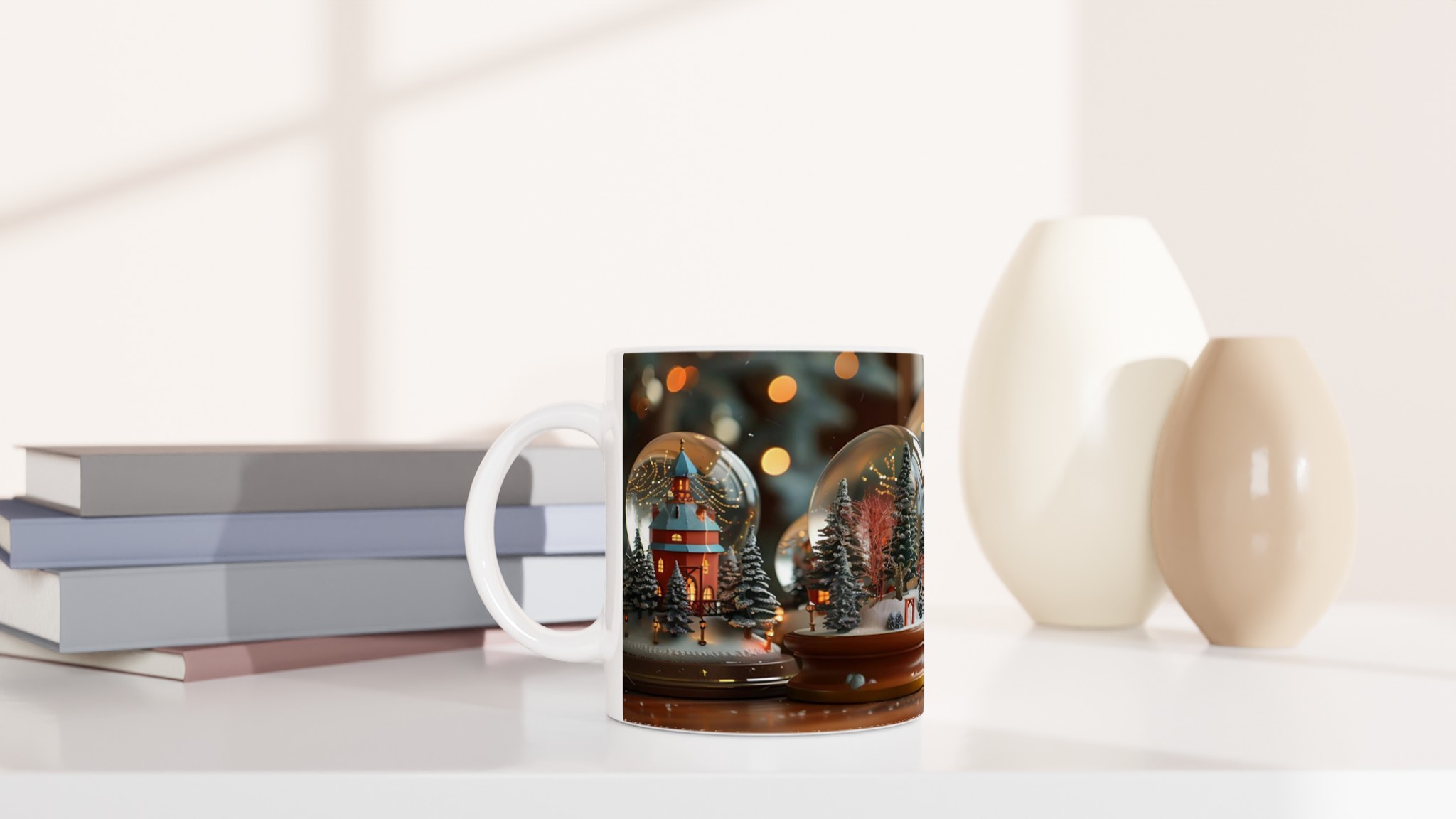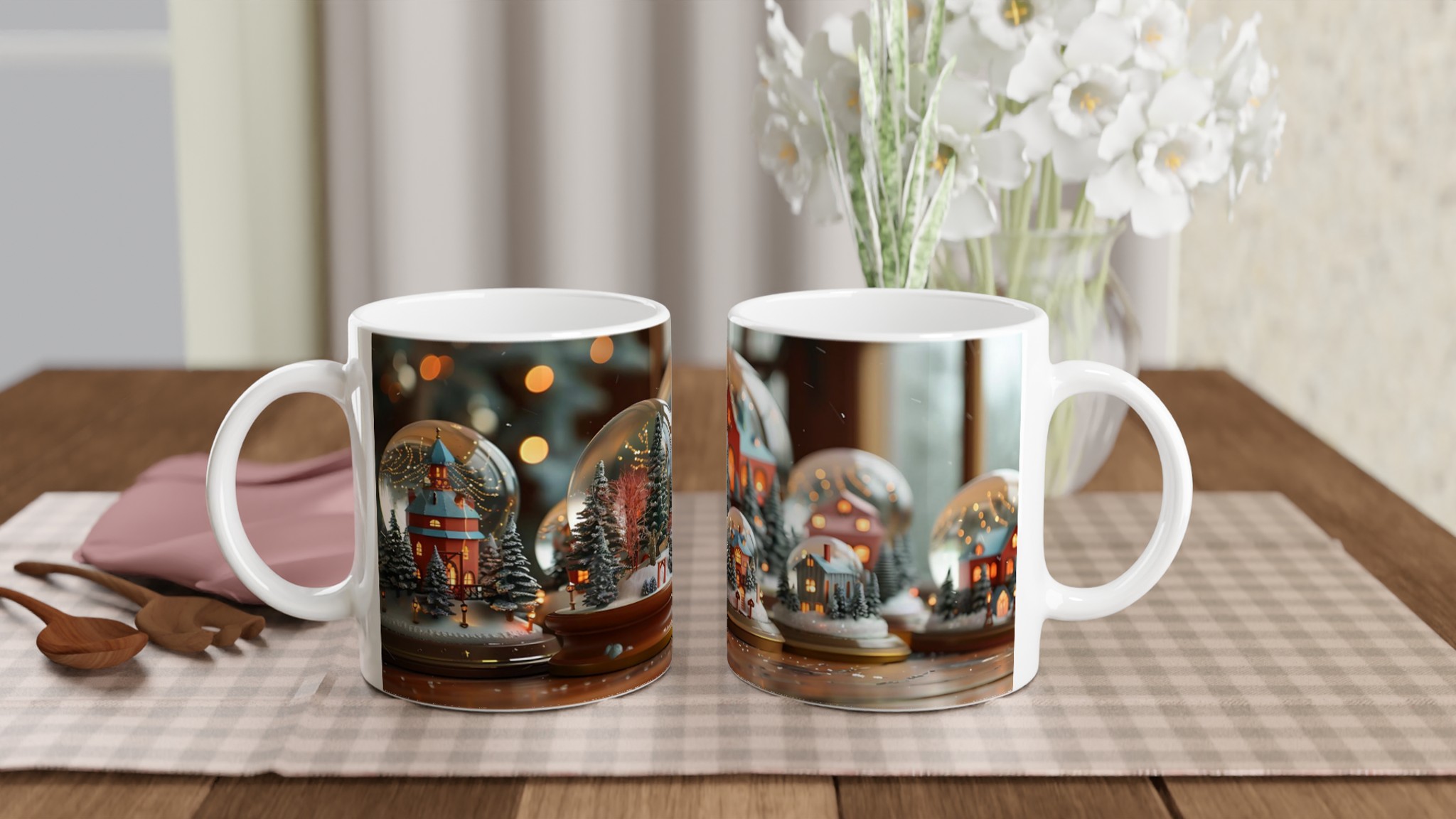 Föreställ dig att krypa upp i soffan med en värmande dryck i denna charmiga keramiska mugg, som för tankarna till en förtrollad vinterby i en snöglob. Den här stilrena keramiska muggen blir snabbt en vardagsfavorit. Perfekt för morgonkaffet, kvällens varma choklad eller när du bara vill njuta av en kopp te. Den blanka ytan gör att trycken framhävs med klara och levande färger, som håller sig fina även efter många turer i mikron och diskmaskinen.