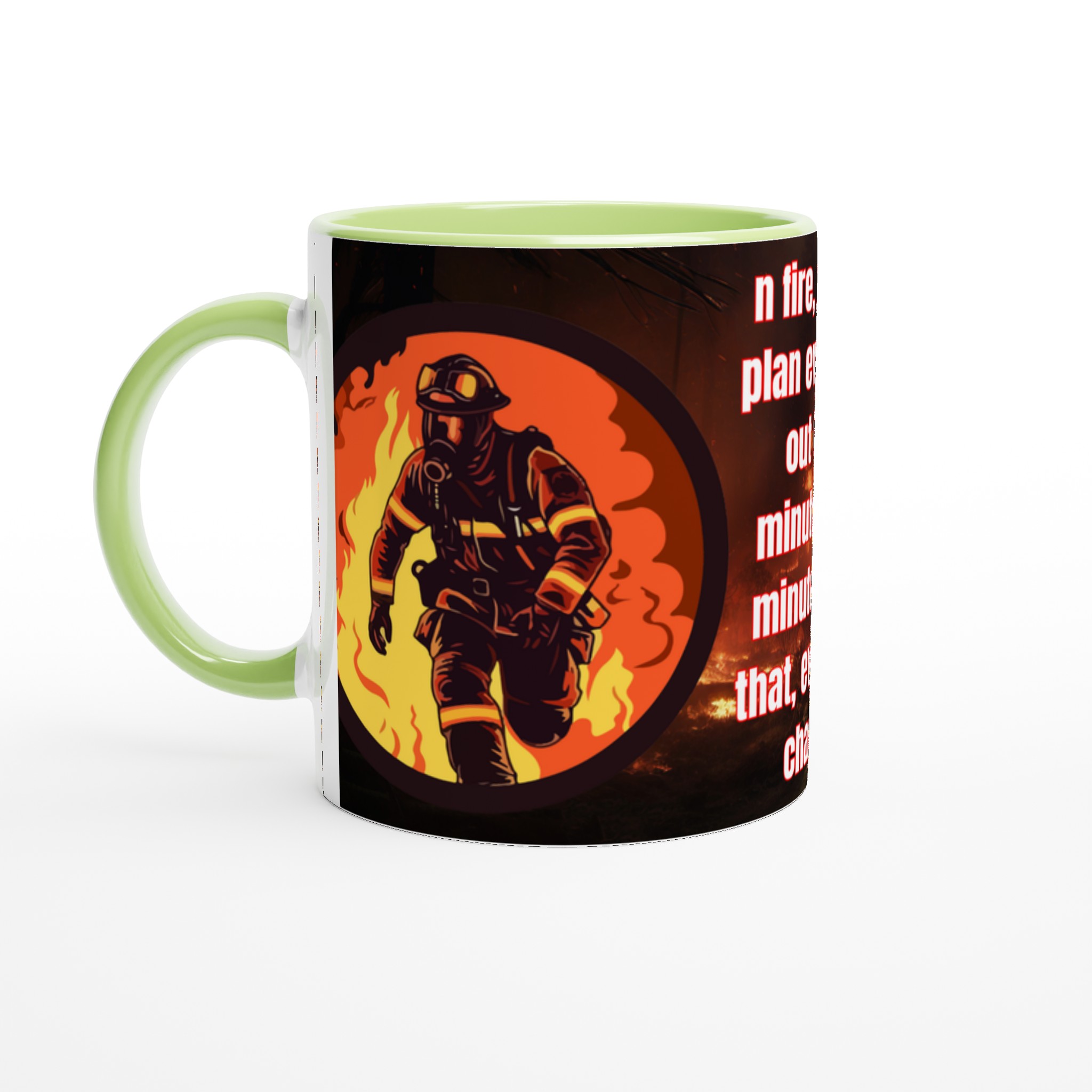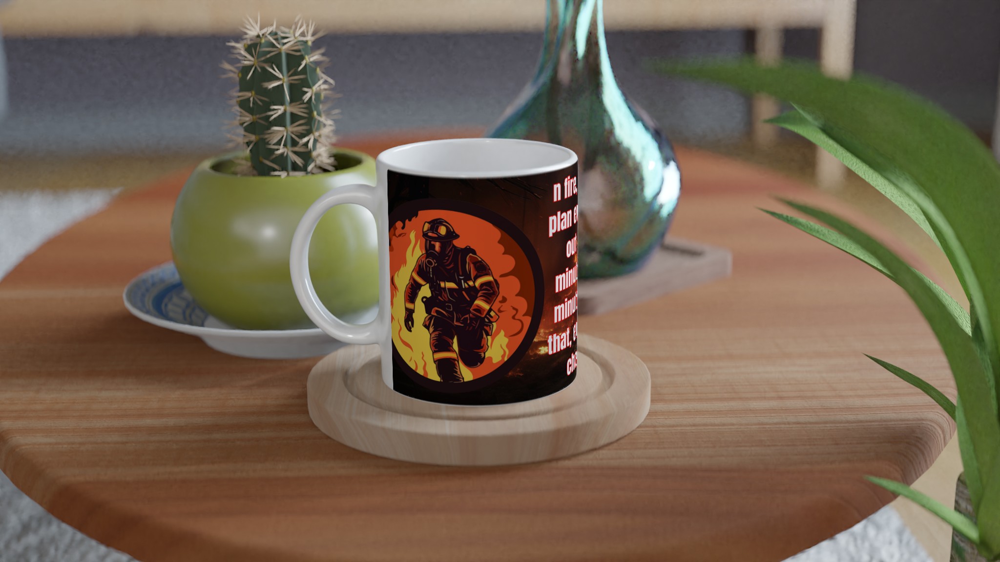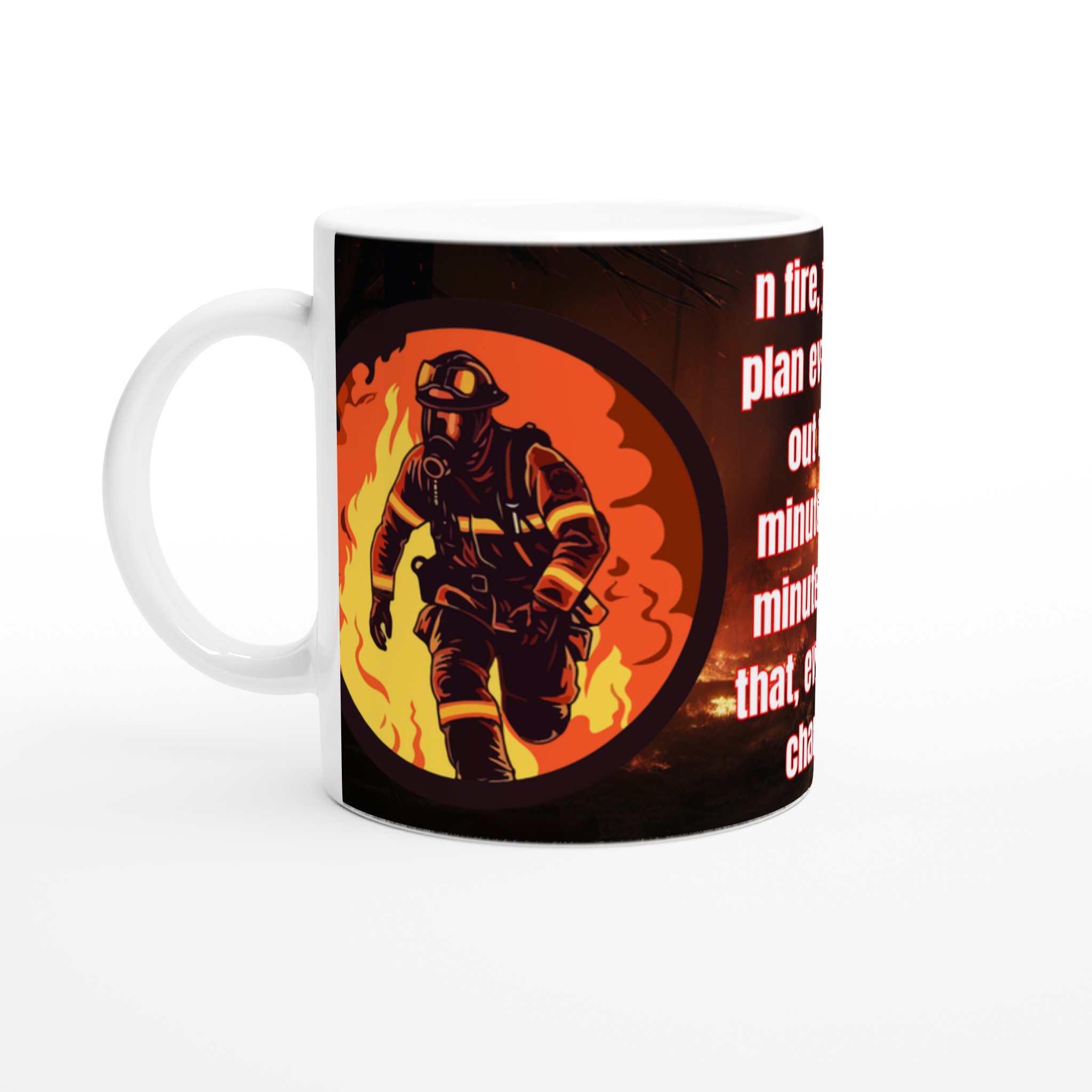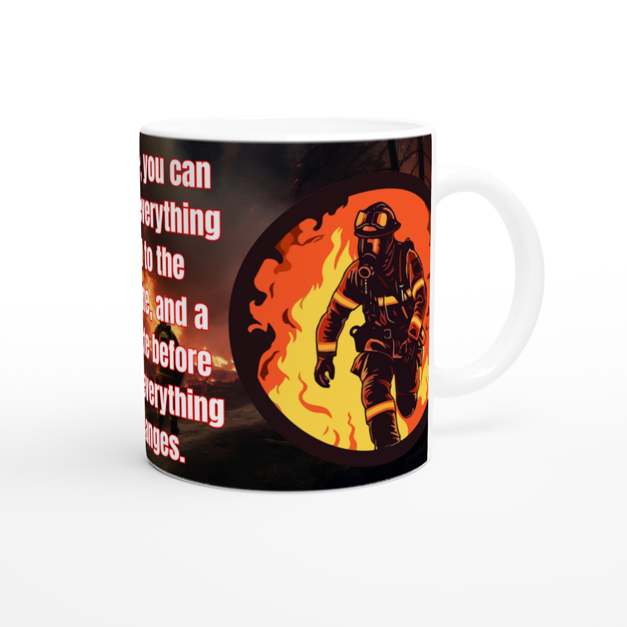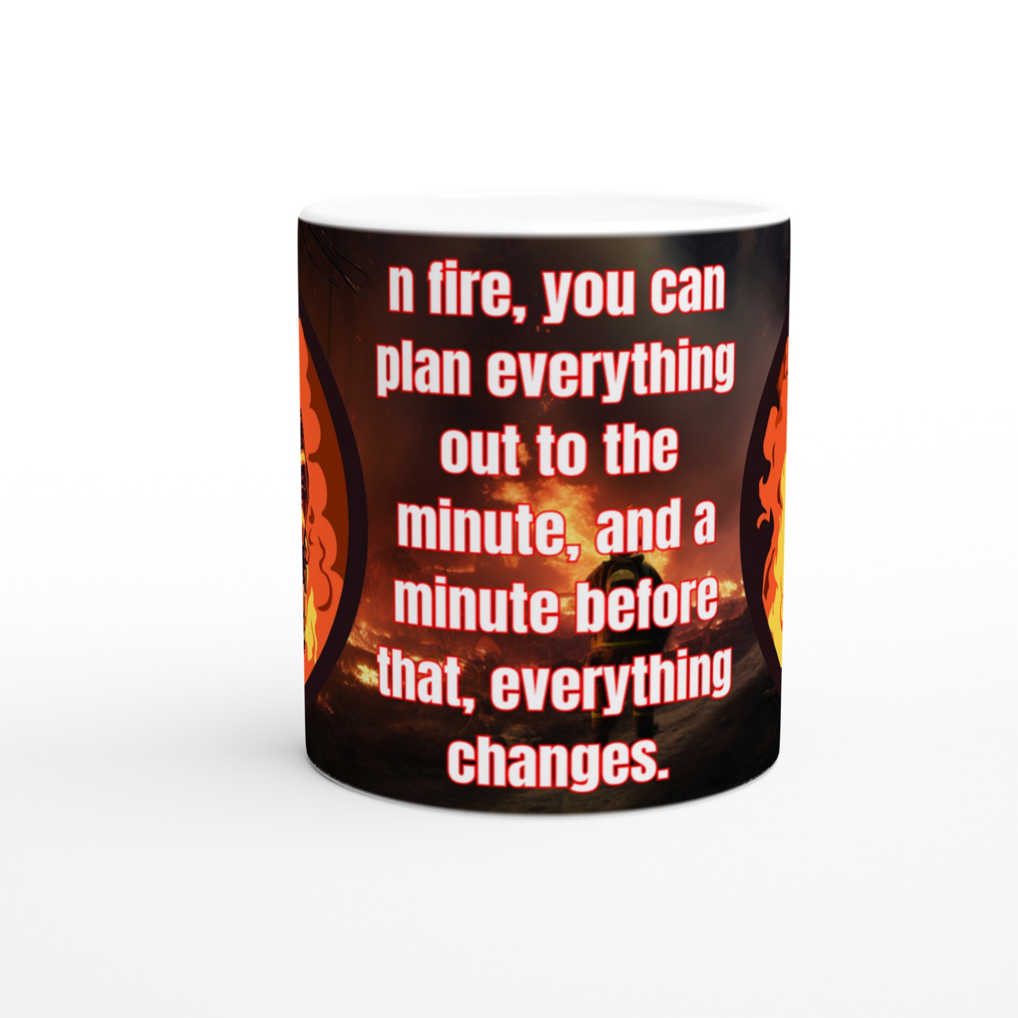 Vardagen kan vara oförutsägbar, precis som en brand. Men oavsett hur snabbt allt förändras, är det viktigt att ha en stund för dig själv. Denna inspirerande keramiska mugg är mer än bara en kopp – den är en daglig påminnelse om mod, beslutsamhet och vikten av att stå stadigt. Med en kraftfull illustration av en brandman omgiven av lågor, och det tänkvärda citatet ”When fire, you can plan everything out to the minute, and a minute before that, everything changes”, är den perfekt för att reflektera över livets utmaningar.