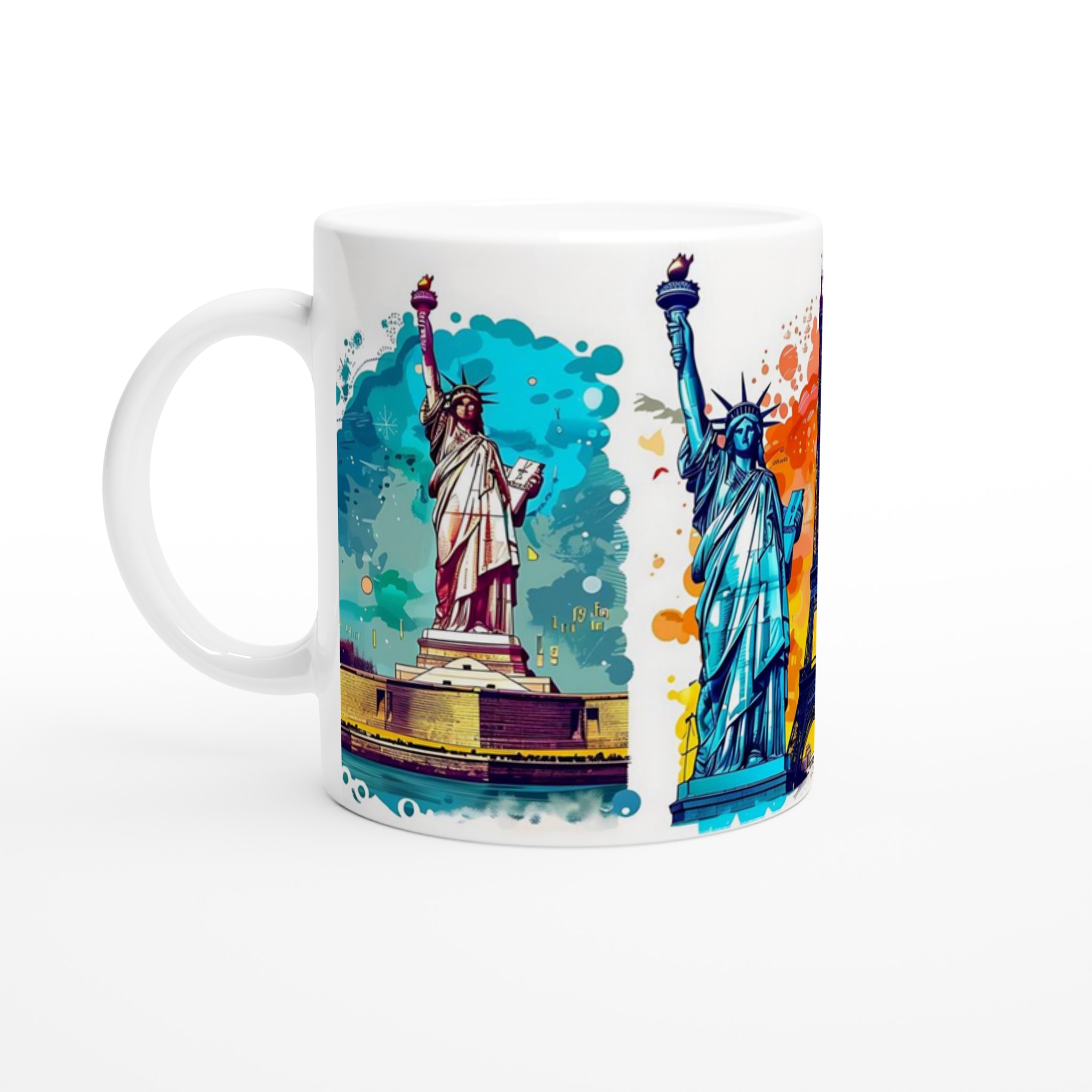 Fira världens mest ikoniska landmärken varje dag med vår unika keramikmugg! Denna mugg fångar den majestätiska skönheten hos Frihetsgudinnan, Eiffeltornet och Big Ben i en livfull och konstnärlig akvarellstil, fylld med varma, inbjudande toner. Oavsett om du drömmer om din nästa resa eller minns ett älskat äventyr, kommer detta konstverk att inspirera dig med varje klunk.