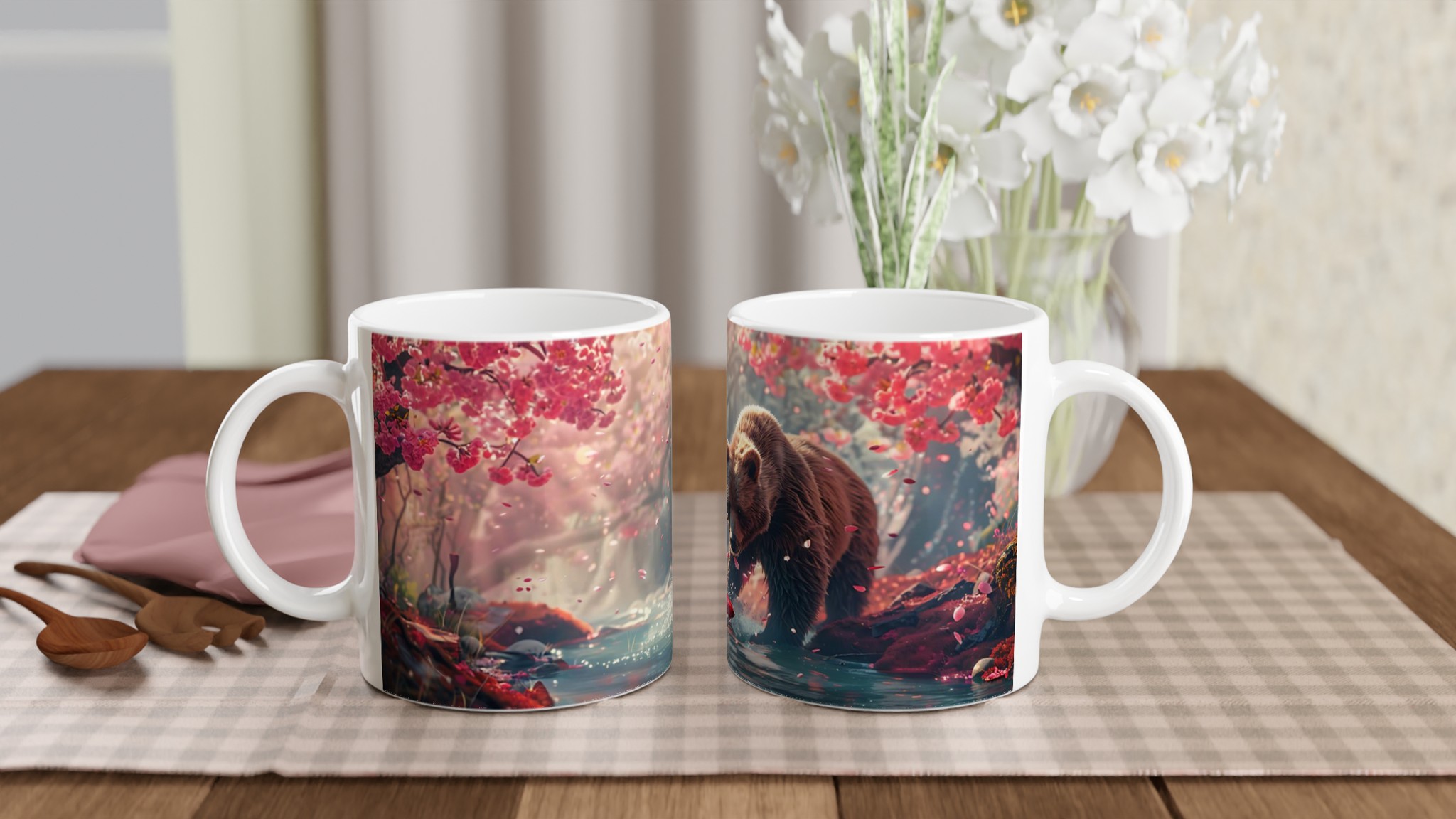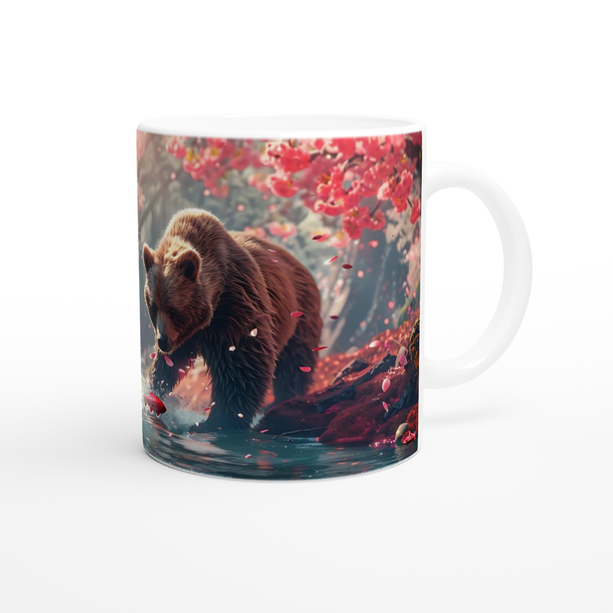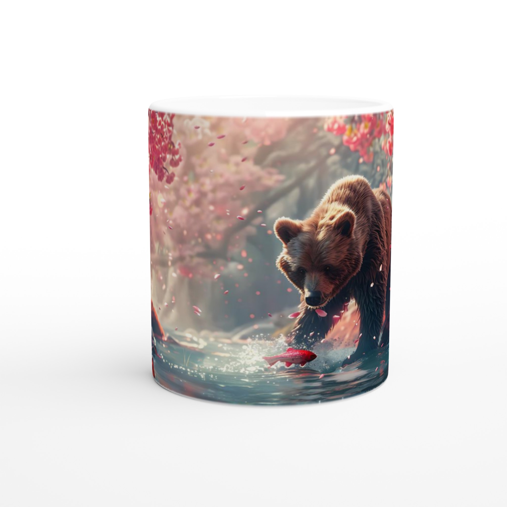 Låt dig förtrollas av vårens magi varje gång du tar en klunk! Denna exklusiva keramiska mugg fångar den lugnande skönheten i ett körsbärsblomsterlandskap, där en majestätisk björn graciöst fiskar bland fallande sakura-blad. Med sin drömlika estetik och rogivande färgpalett, blir den snabbt en vardagsfavorit – perfekt för morgonkaffet, kvällens varma choklad eller när du bara vill njuta av en kopp te.