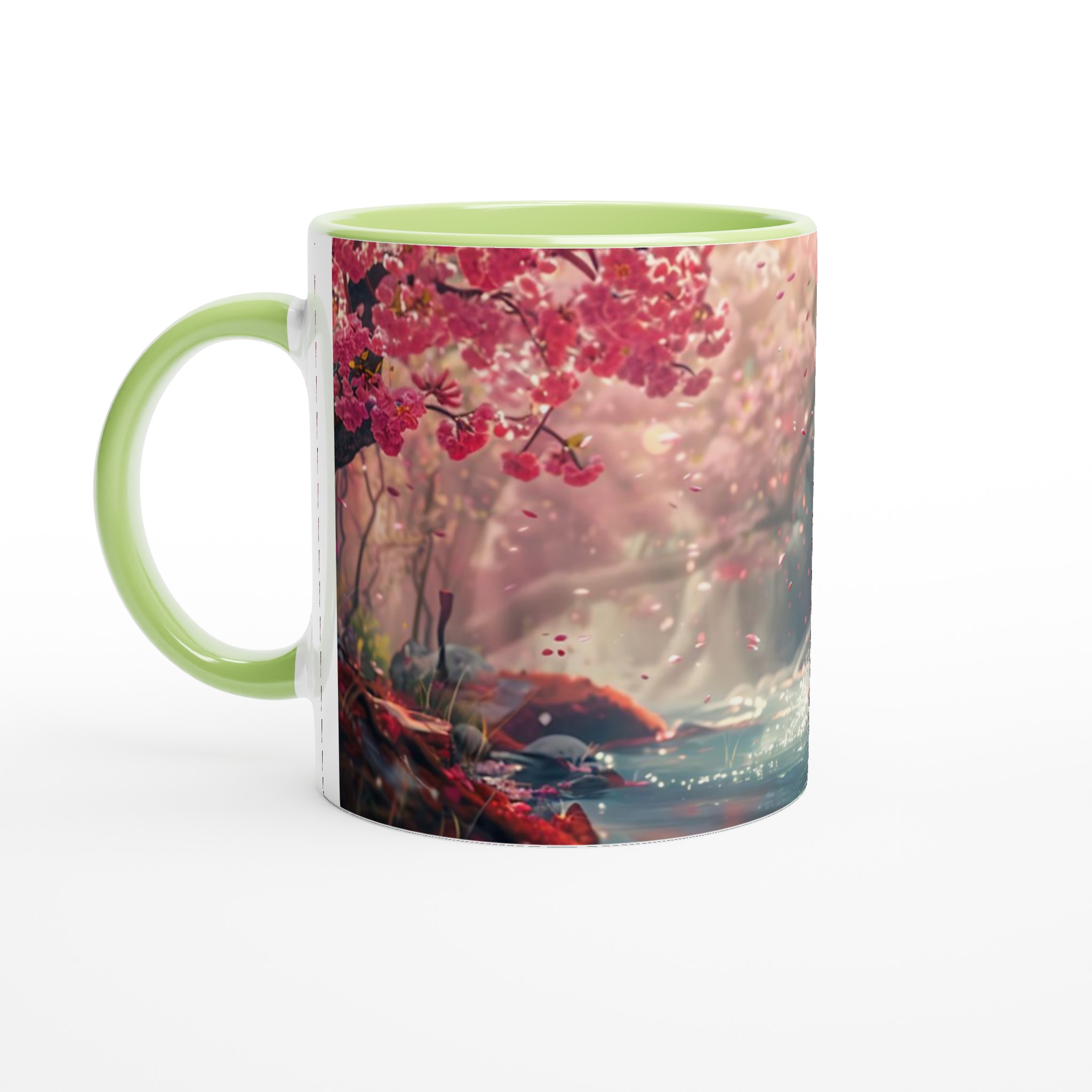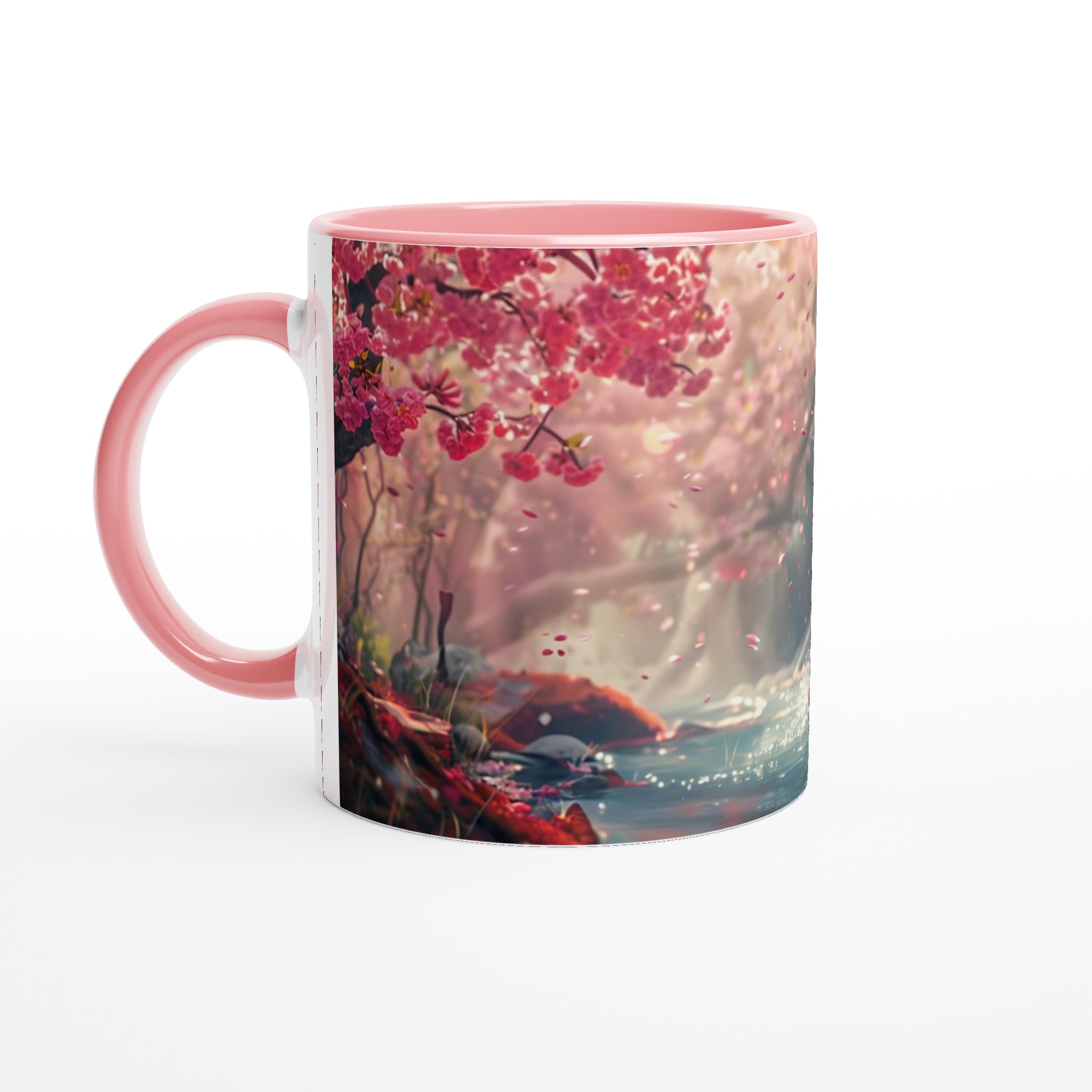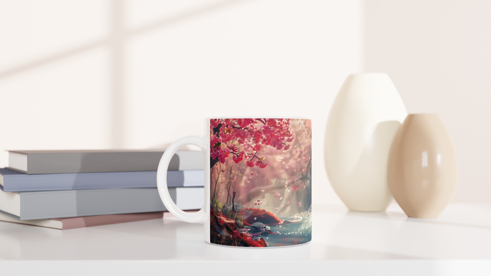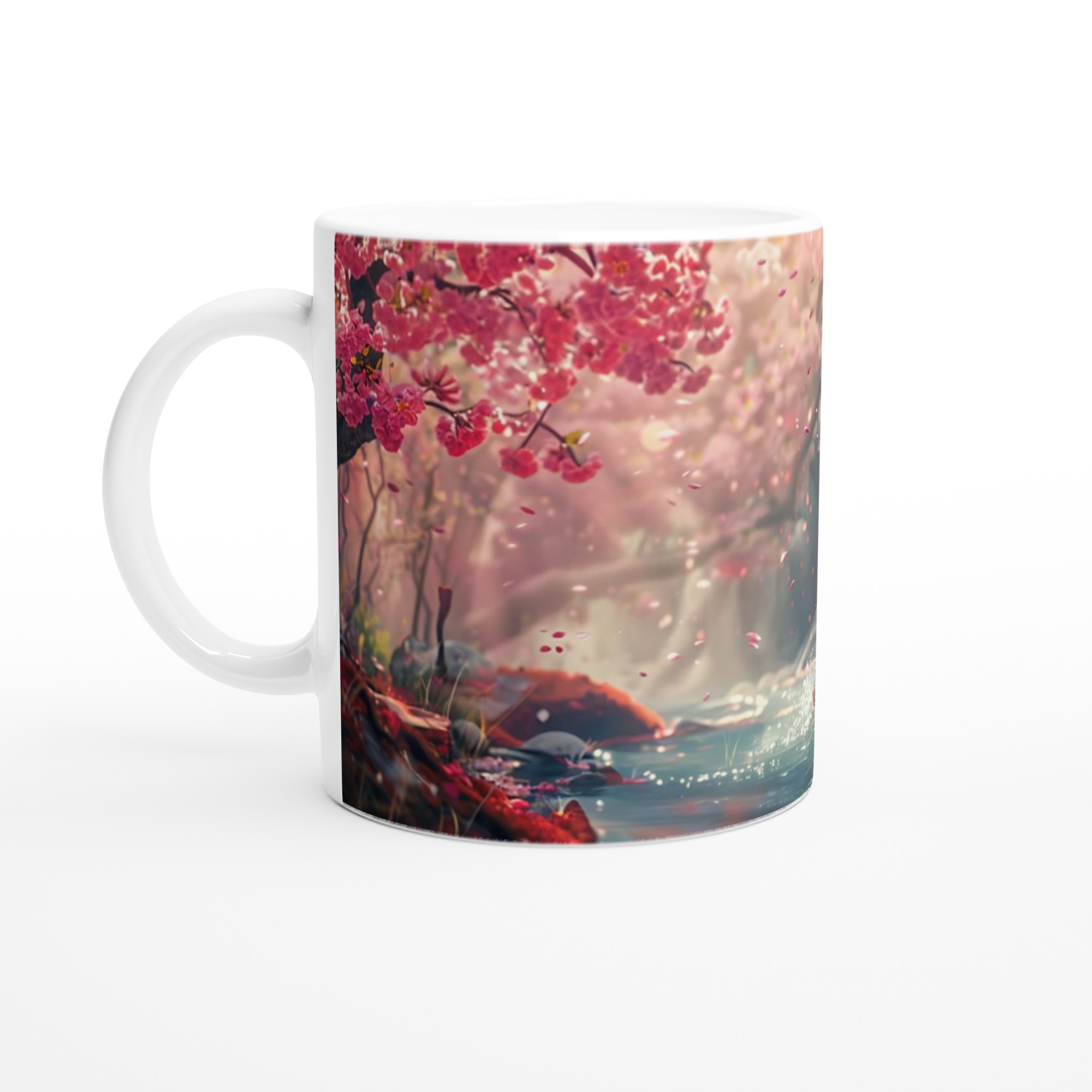 Låt dig förtrollas av vårens magi varje gång du tar en klunk! Denna exklusiva keramiska mugg fångar den lugnande skönheten i ett körsbärsblomsterlandskap, där en majestätisk björn graciöst fiskar bland fallande sakura-blad. Med sin drömlika estetik och rogivande färgpalett, blir den snabbt en vardagsfavorit – perfekt för morgonkaffet, kvällens varma choklad eller när du bara vill njuta av en kopp te.