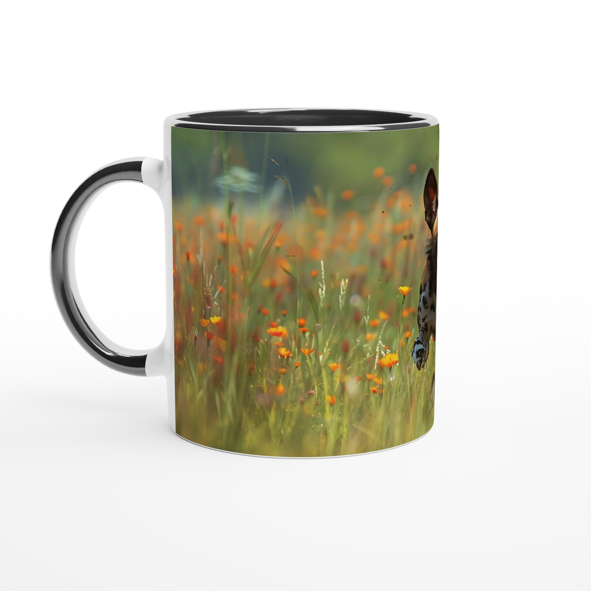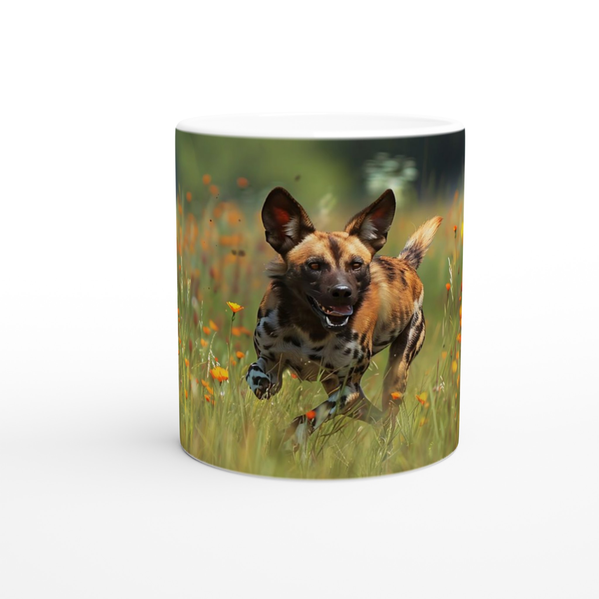 Föreställ dig att ta din första klunk kaffe medan du blickar ut över en vidsträckt savann, fylld med vilda blommor och spänningen av en afrikansk vildhund i full fart. Denna livfulla keramiska mugg fångar den glädjefyllda energin hos den vilda naturen, vilket gör varje dryck till en liten flykt. Perfekt för morgonkaffet, kvällens varma choklad eller när du bara vill njuta av en kopp te.