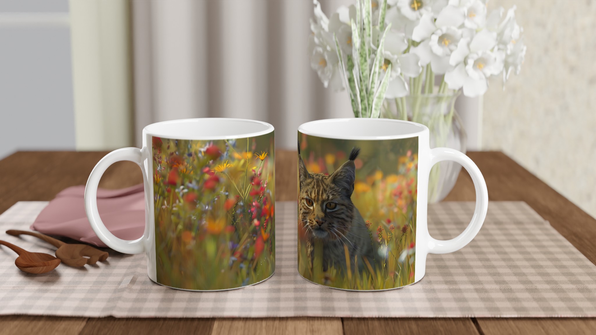 Föreställ dig att vakna till en vacker vildkatt bland blommande ängsblommor, med en värmande kopp i handen. Denna stilrena keramiska mugg blir snabbt en vardagsfavorit, perfekt för morgonkaffet, kvällens varma choklad eller när du bara vill njuta av en kopp te. Med sin inspirerande design och blanka yta framhävs trycket med klara och levande färger, som håller sig fina även efter många turer i mikron och diskmaskinen.