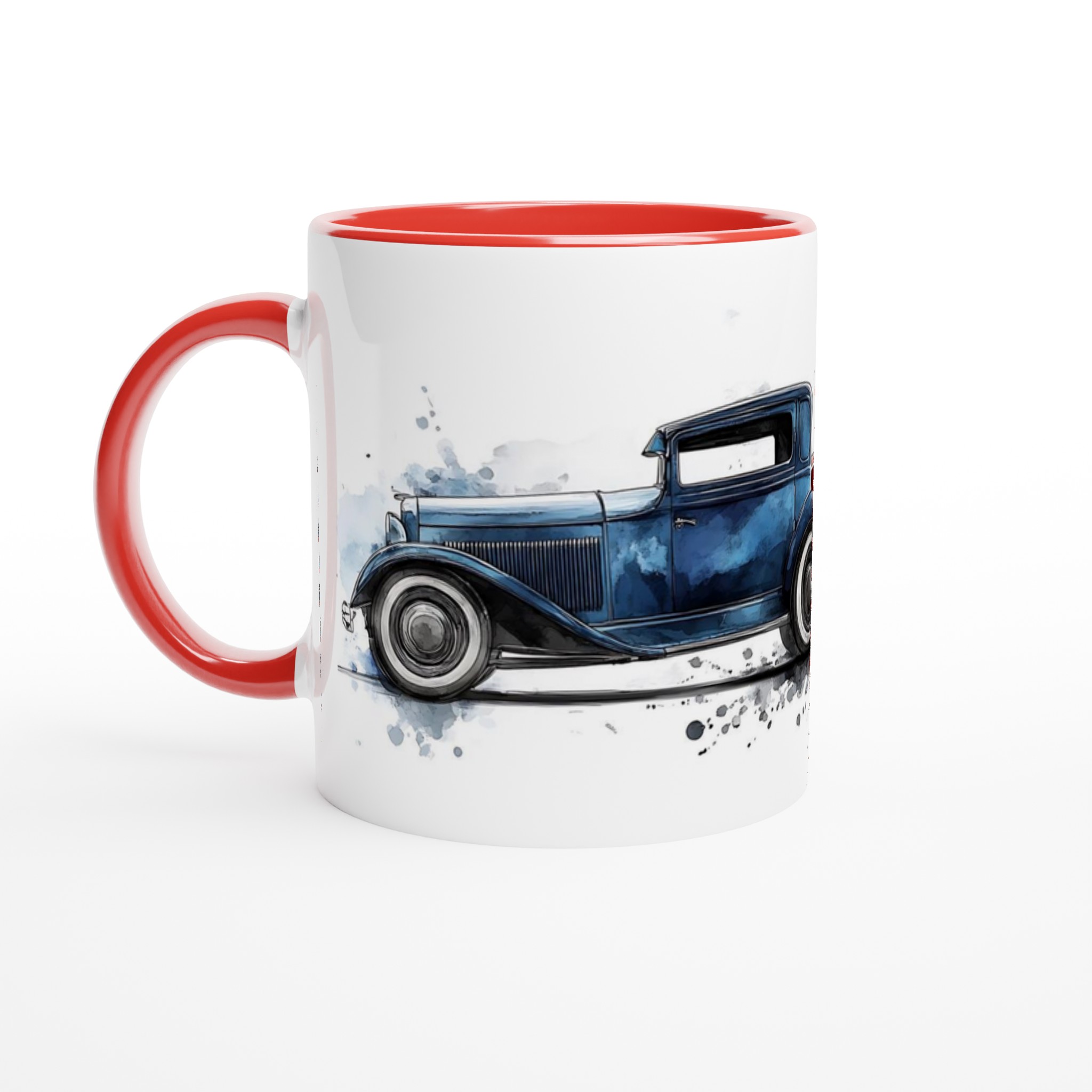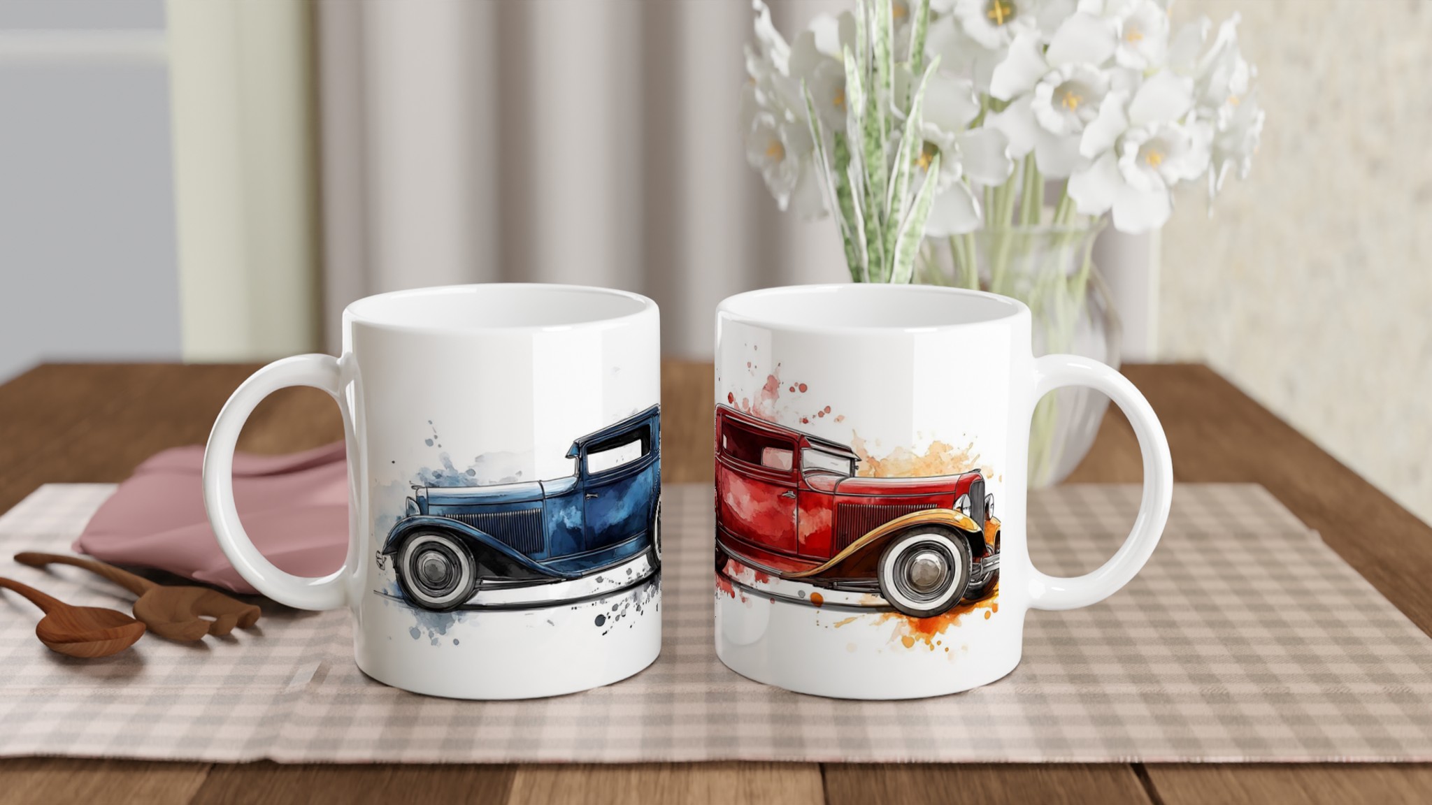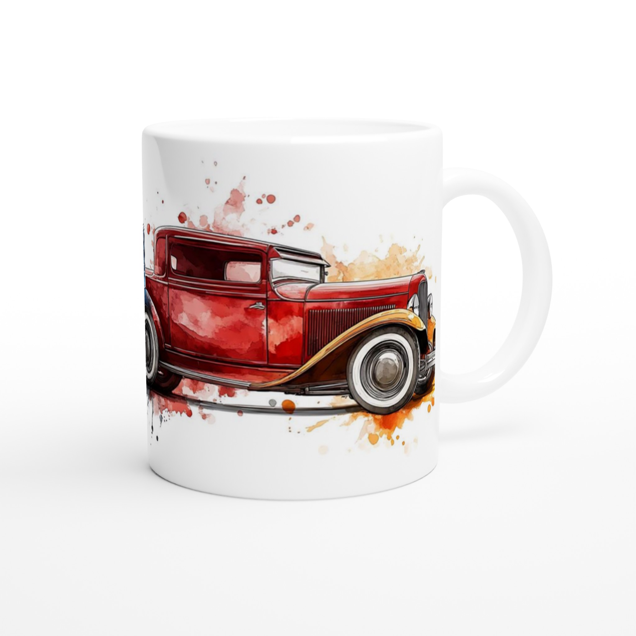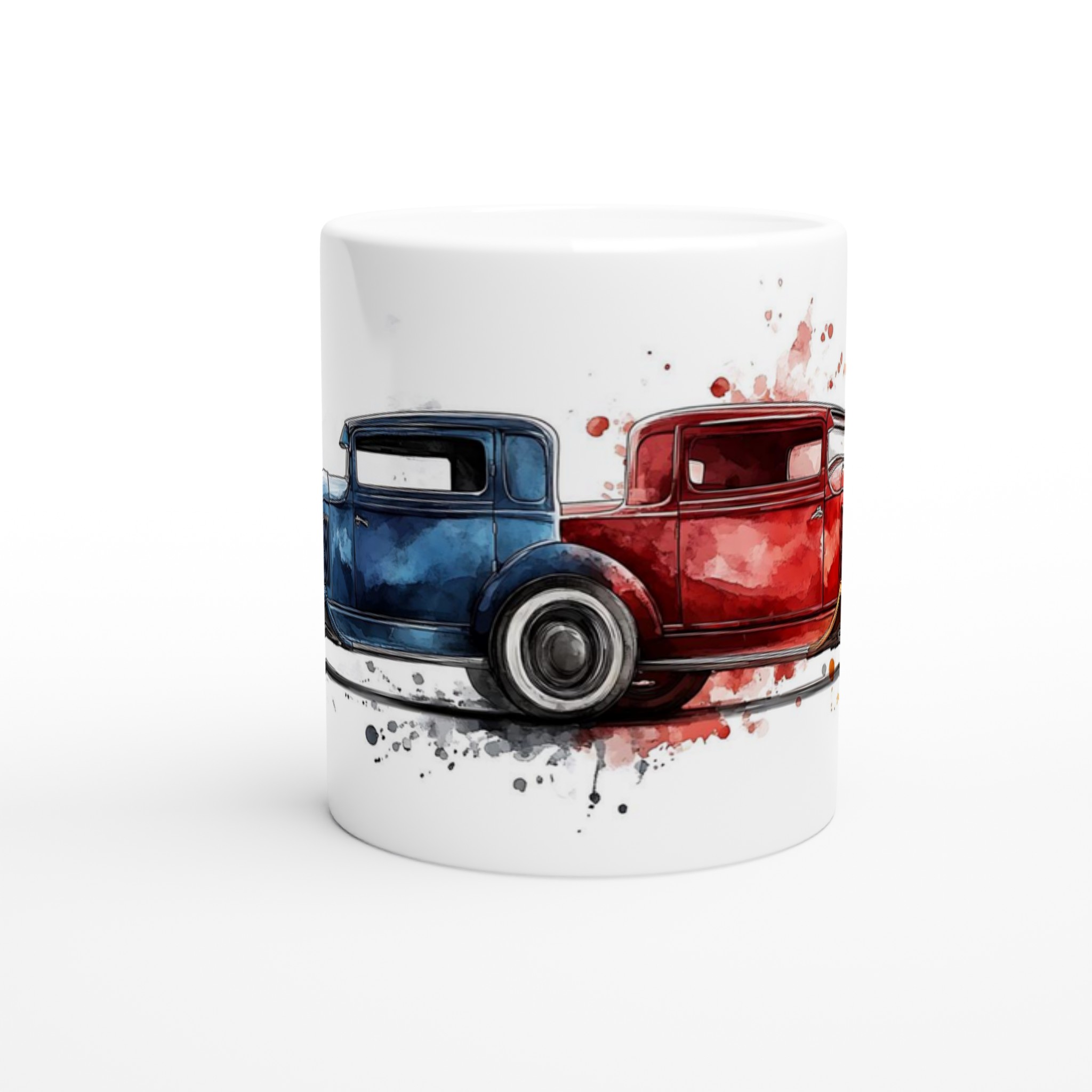 Fånga den tidlösa charmen hos klassiska hot rods med denna unika keramiska mugg. De stilrena akvarellbilarna, en i svalt blått och den andra i eldigt rött, skapar en konstnärlig och dynamisk känsla som gör varje klunk till en upplevelse. Denna mugg är en hyllning till bilentusiaster och designälskare, och blir snabbt en favorit för morgonkaffet, kvällens varma choklad eller när du bara vill njuta av en kopp te.