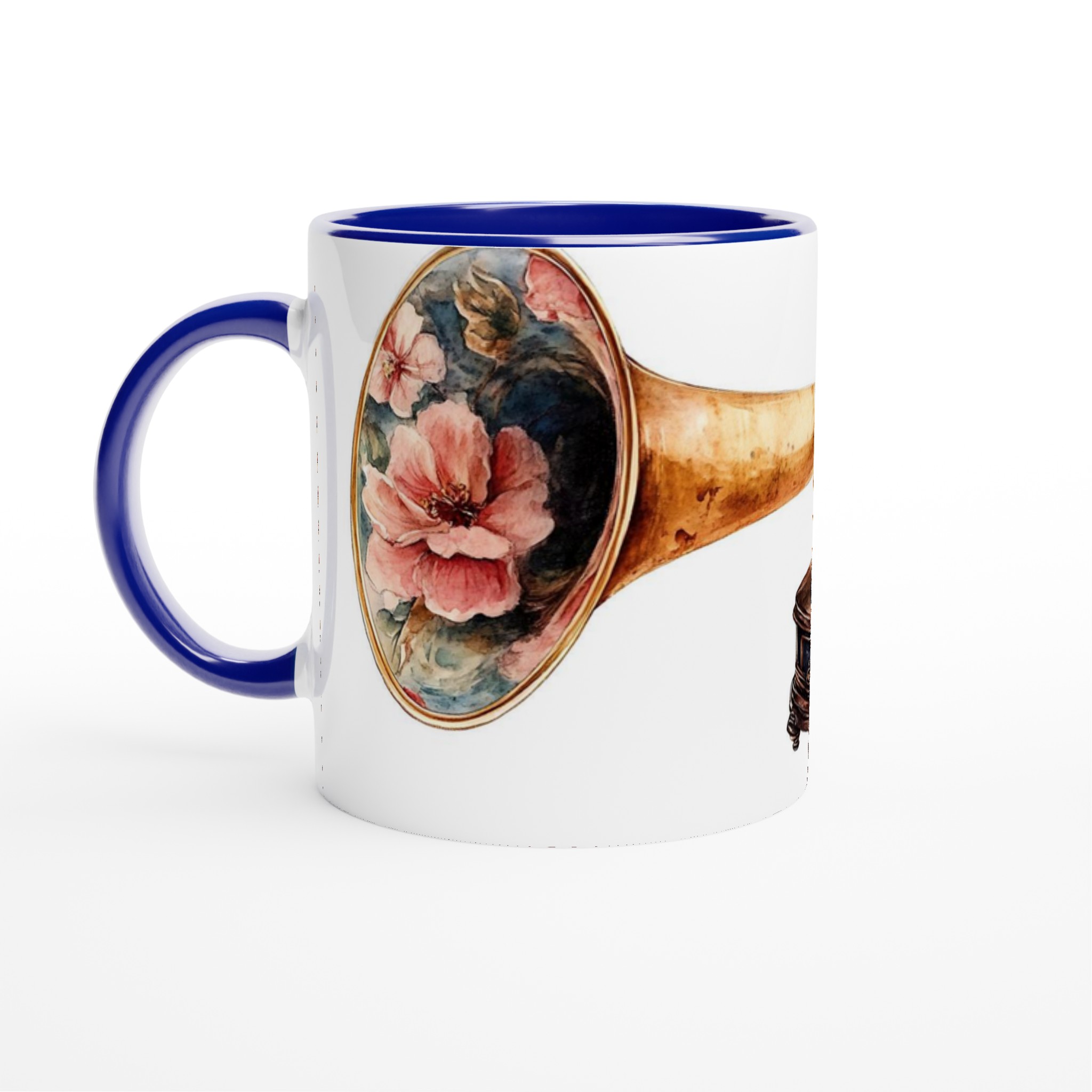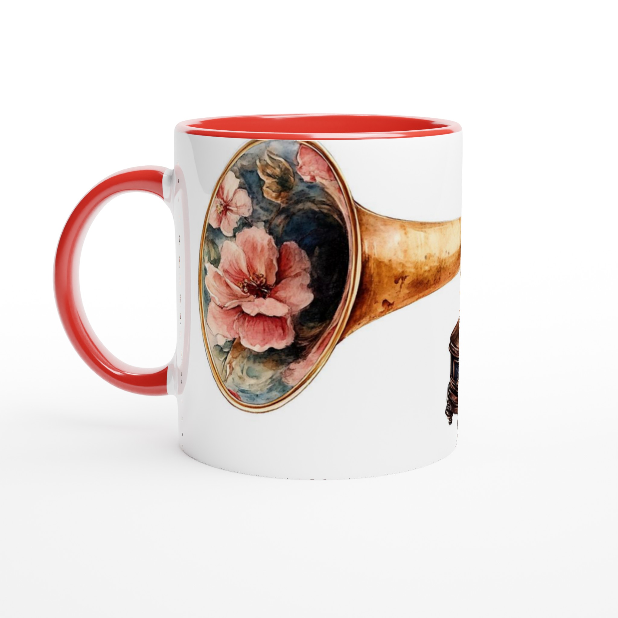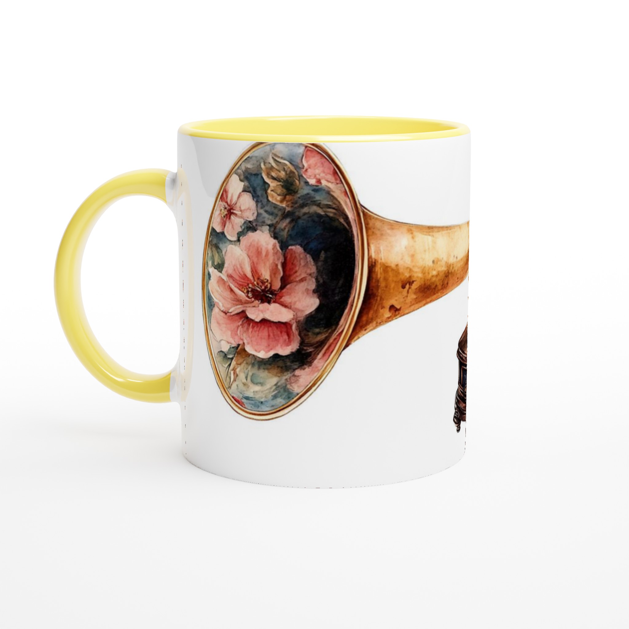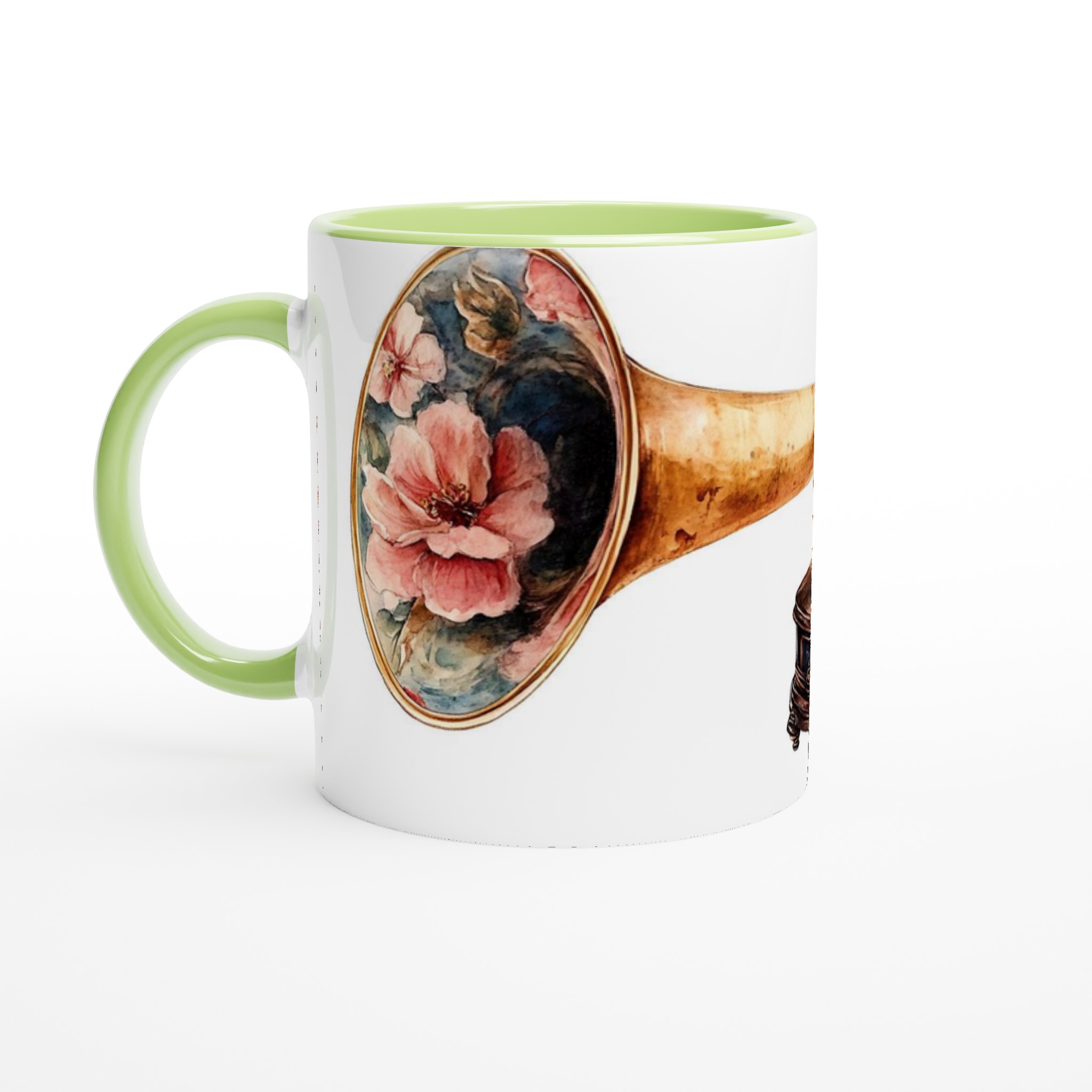 Låt dig förtrollas av en tidlös charm varje gång du tar en klunk. Denna stilrena keramiska mugg, prydd med en utsökt akvarell av en vintage grammofon med blommiga detaljer, blir snabbt en vardagsfavorit. Perfekt för morgonkaffet, kvällens varma choklad eller när du bara vill njuta av en kopp te medan du drömmer dig bort till svunna tider och ljuv musik.