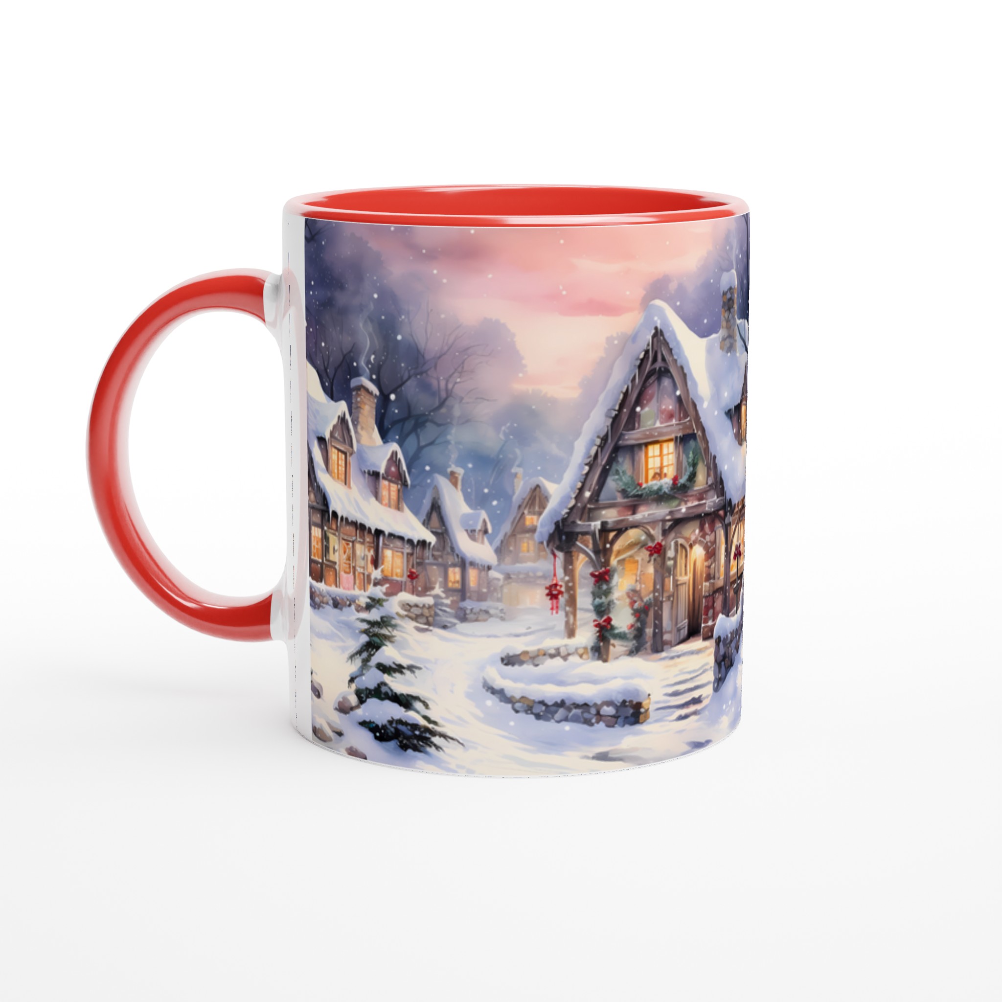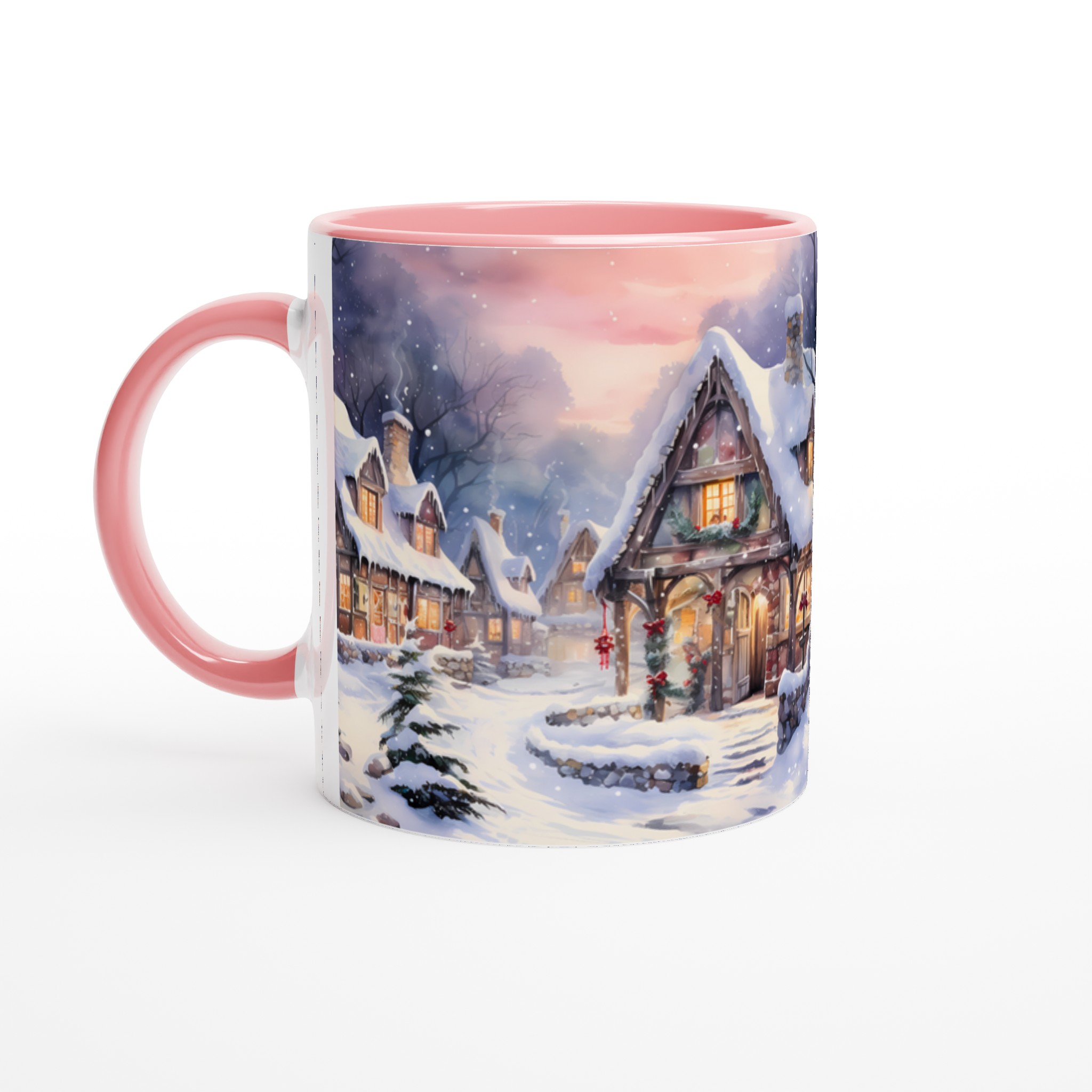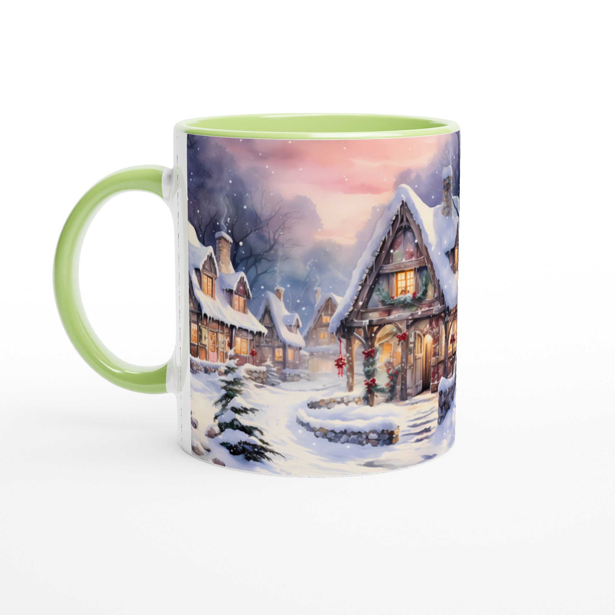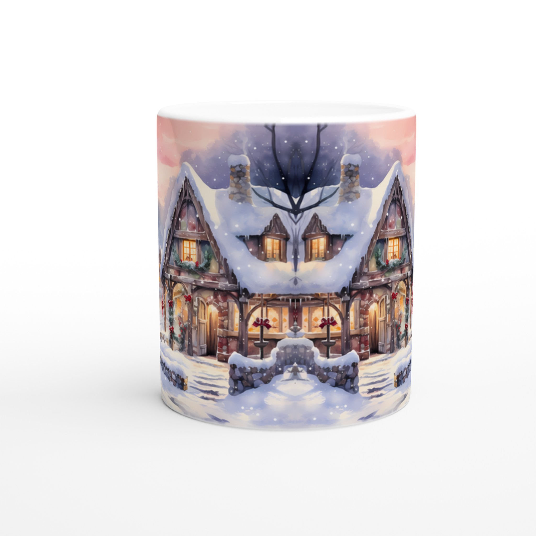 Föreställ dig att du sitter i en mysig stuga, omgiven av snötyngda tak och den varma glöden från fönstren. Den här keramiska muggen fångar den magiska känslan av en vinterdröm med sitt förtrollande julbystmotiv, perfekt för att värma själen under kalla dagar.