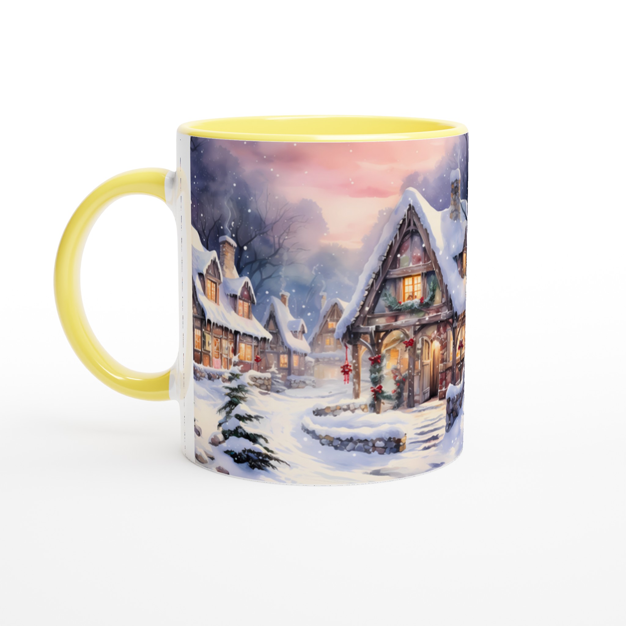 Den här stilrena keramiska muggen blir snabbt en vardagsfavorit. Perfekt för morgonkaffet, kvällens varma choklad eller när du bara vill njuta av en kopp te. Den blanka ytan gör att trycken framhävs med klara och levande färger, som håller sig fina även efter många turer i mikron och diskmaskinen. Välj den klassiska keramiska vita för att låta det drömska vinterlandskapet stå i fokus, eller utforska våra andra färgalternativ: Ceramic Yellow, Ceramic Pink, Ceramic Green, Ceramic Red, Ceramic Black, och Ceramic Blue för att matcha din personliga stil.