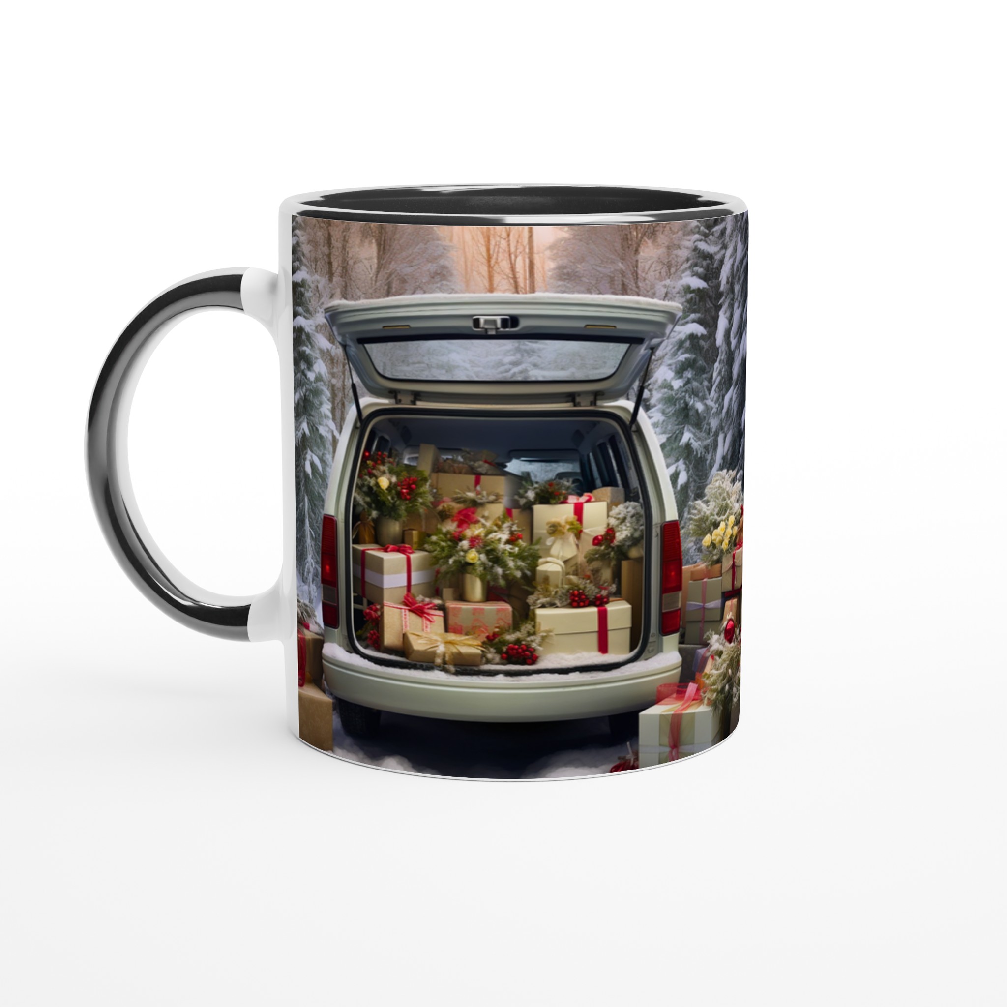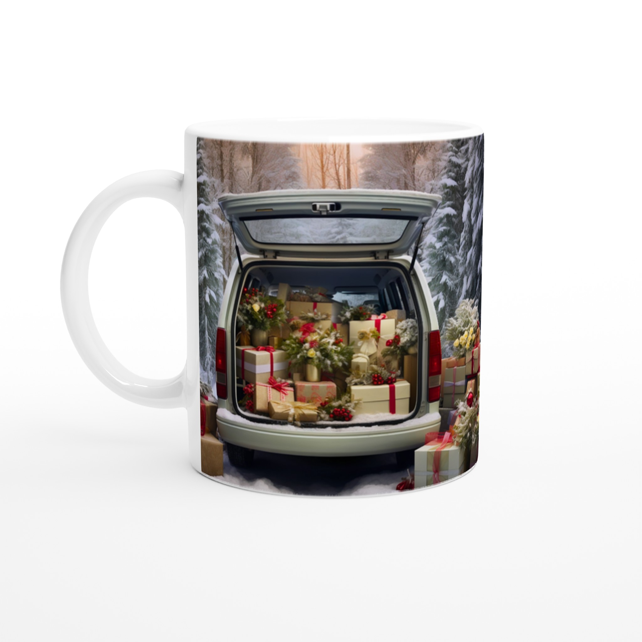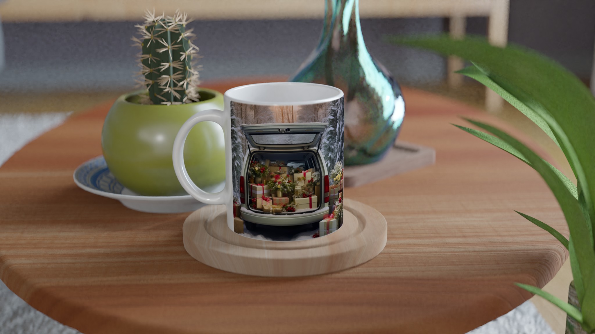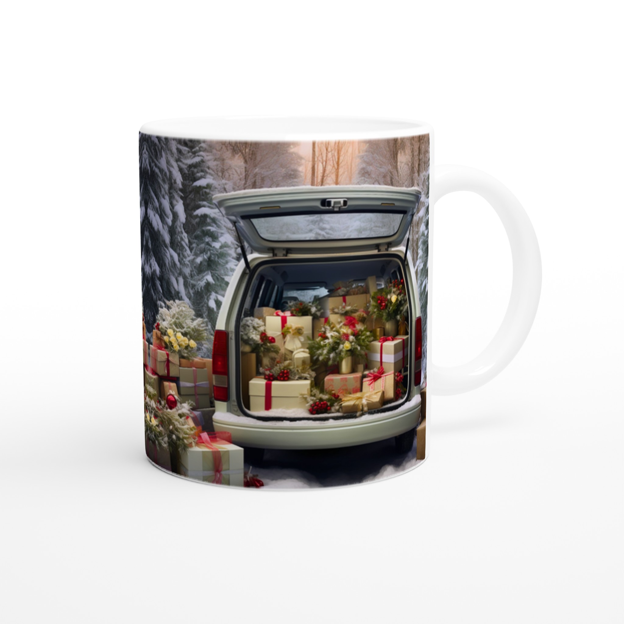 Föreställ dig den mysiga känslan: en frostig vinterdag, och du värmer dig med en rykande het dryck i din nya favoritkopp. Denna charmiga keramiska mugg, som för tankarna till en bil fullastad med julklappar och grönska i ett snöigt vinterlandskap, är den perfekta följeslagaren under årets kallare månader. Med sin blanka yta framhävs trycken med klara och levande färger, som håller sig fina även efter många turer i mikron och diskmaskinen, redo för otaliga stunder av avkoppling.