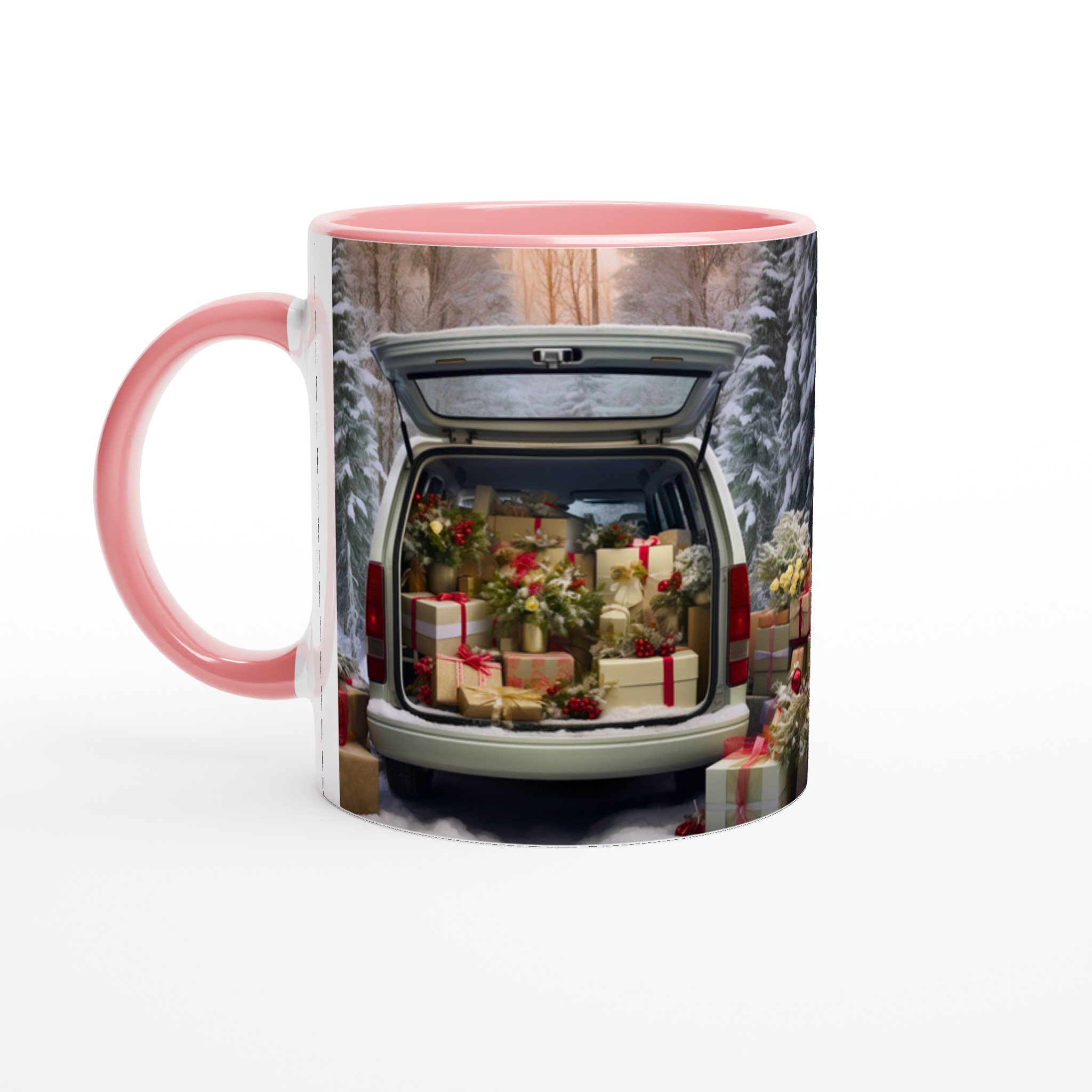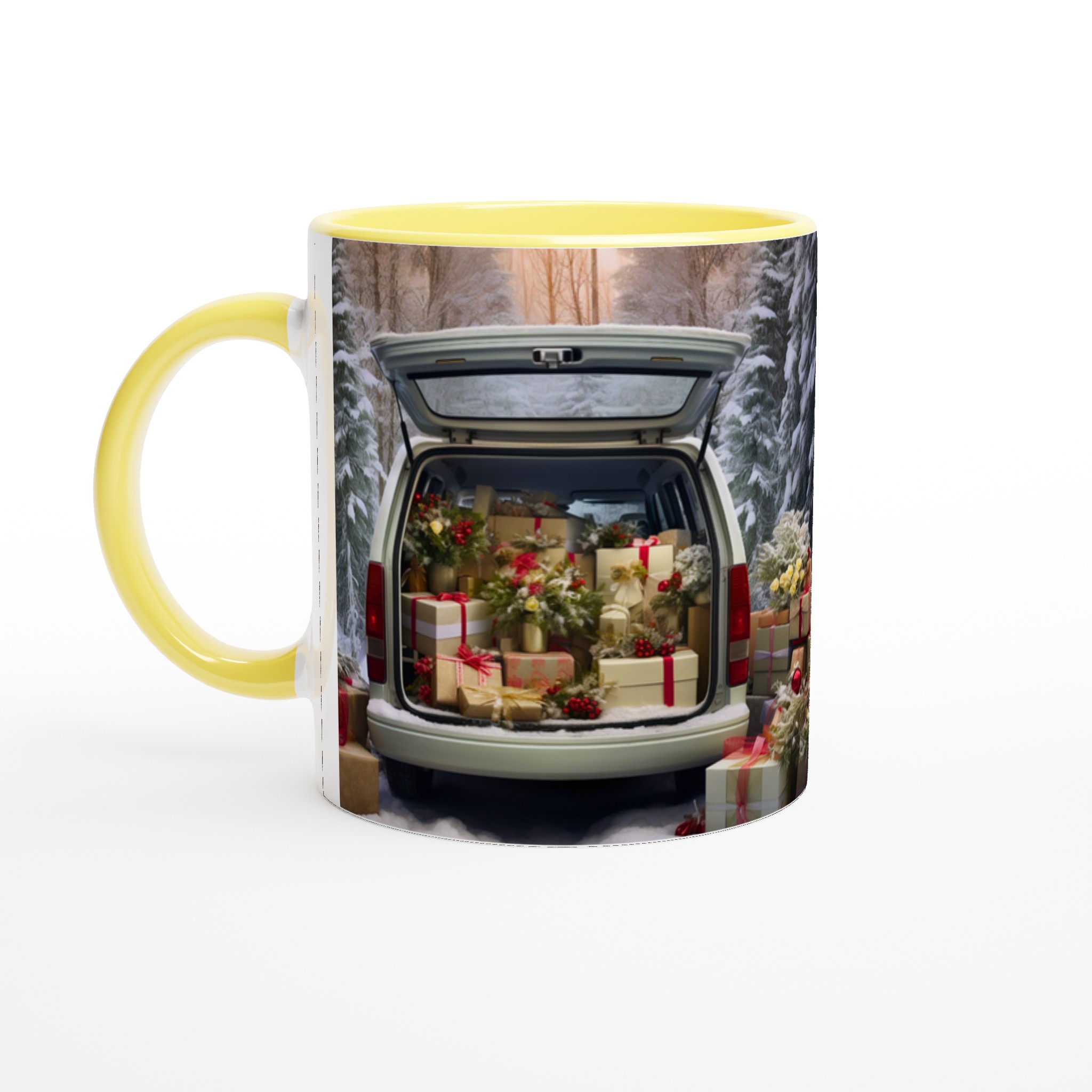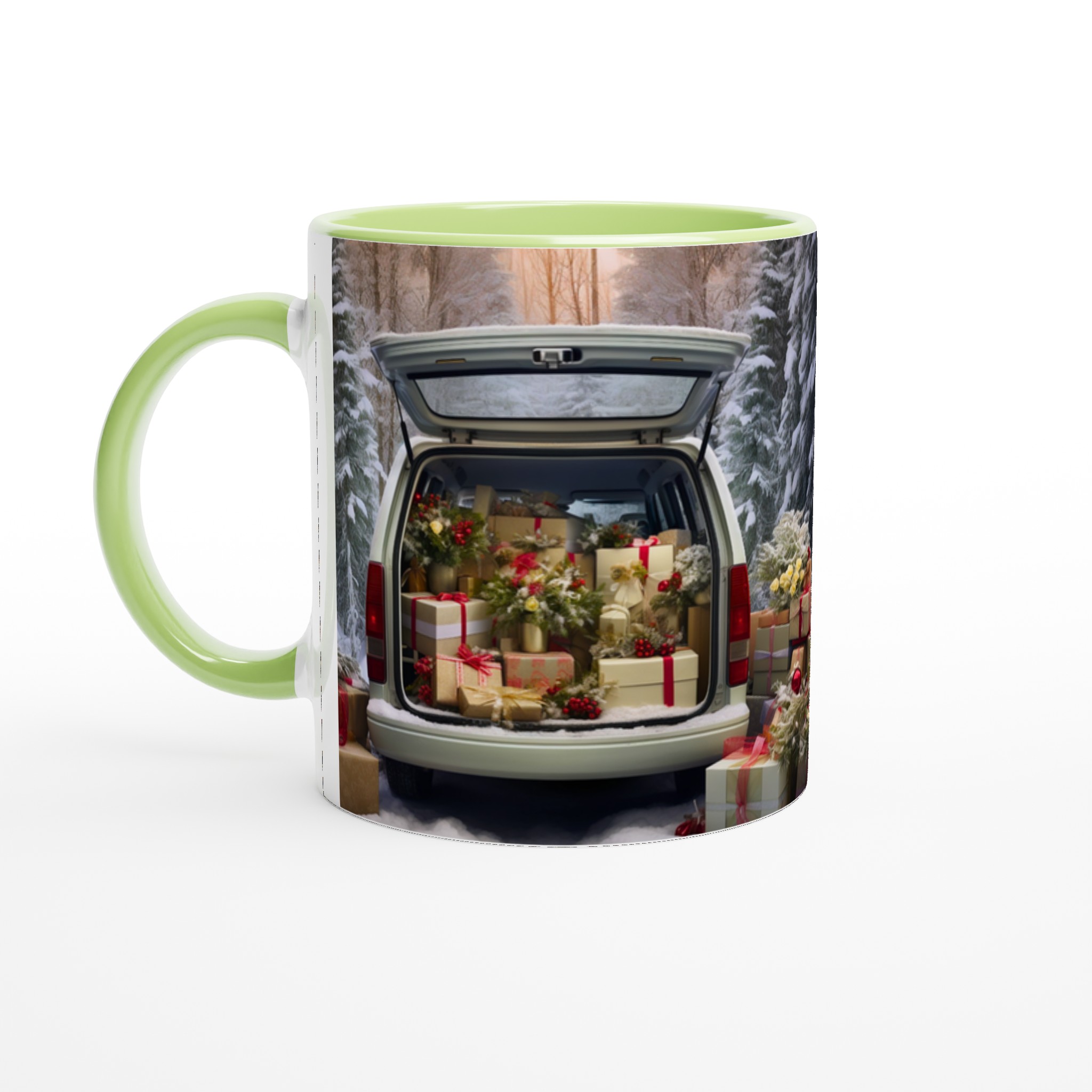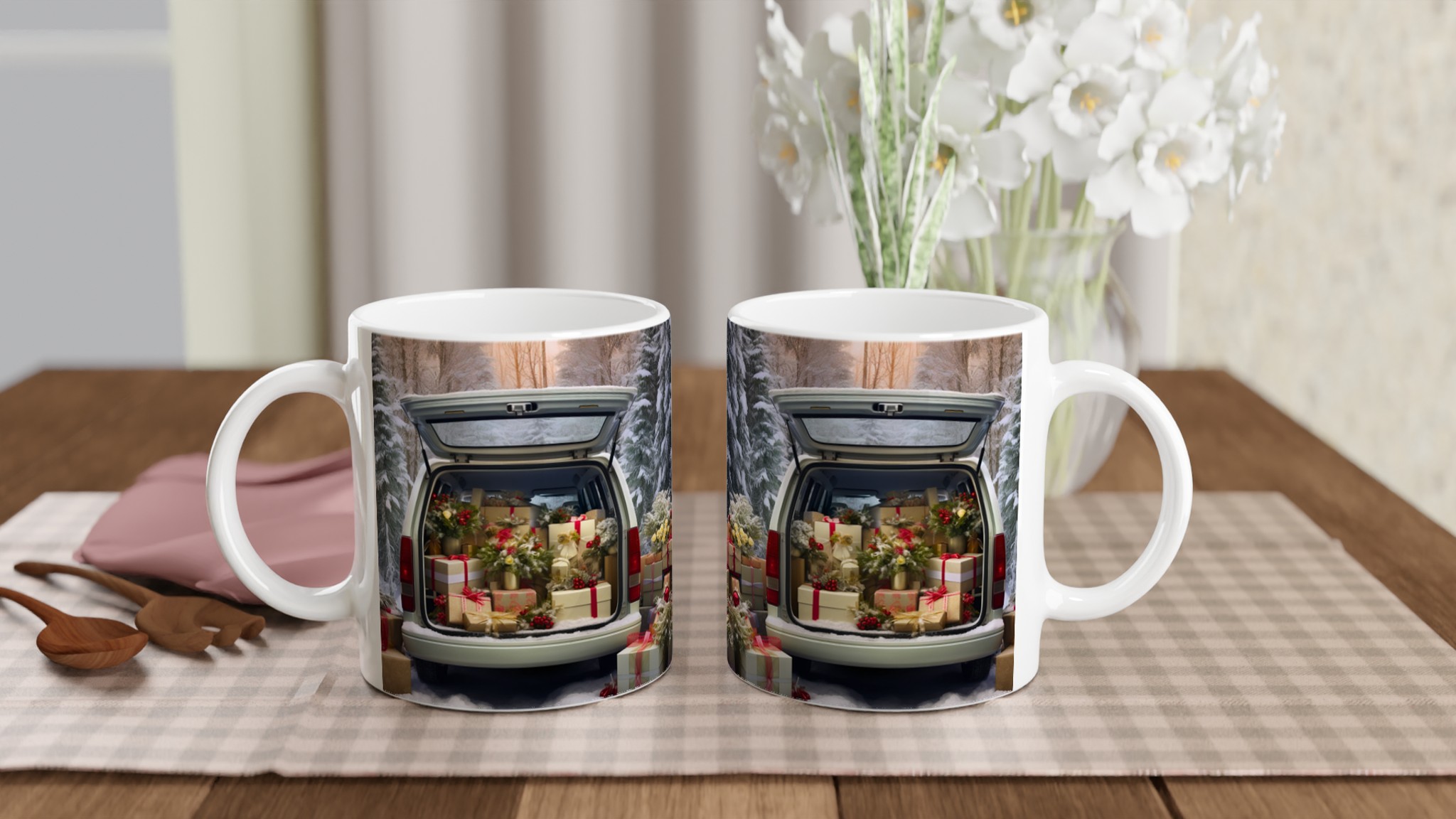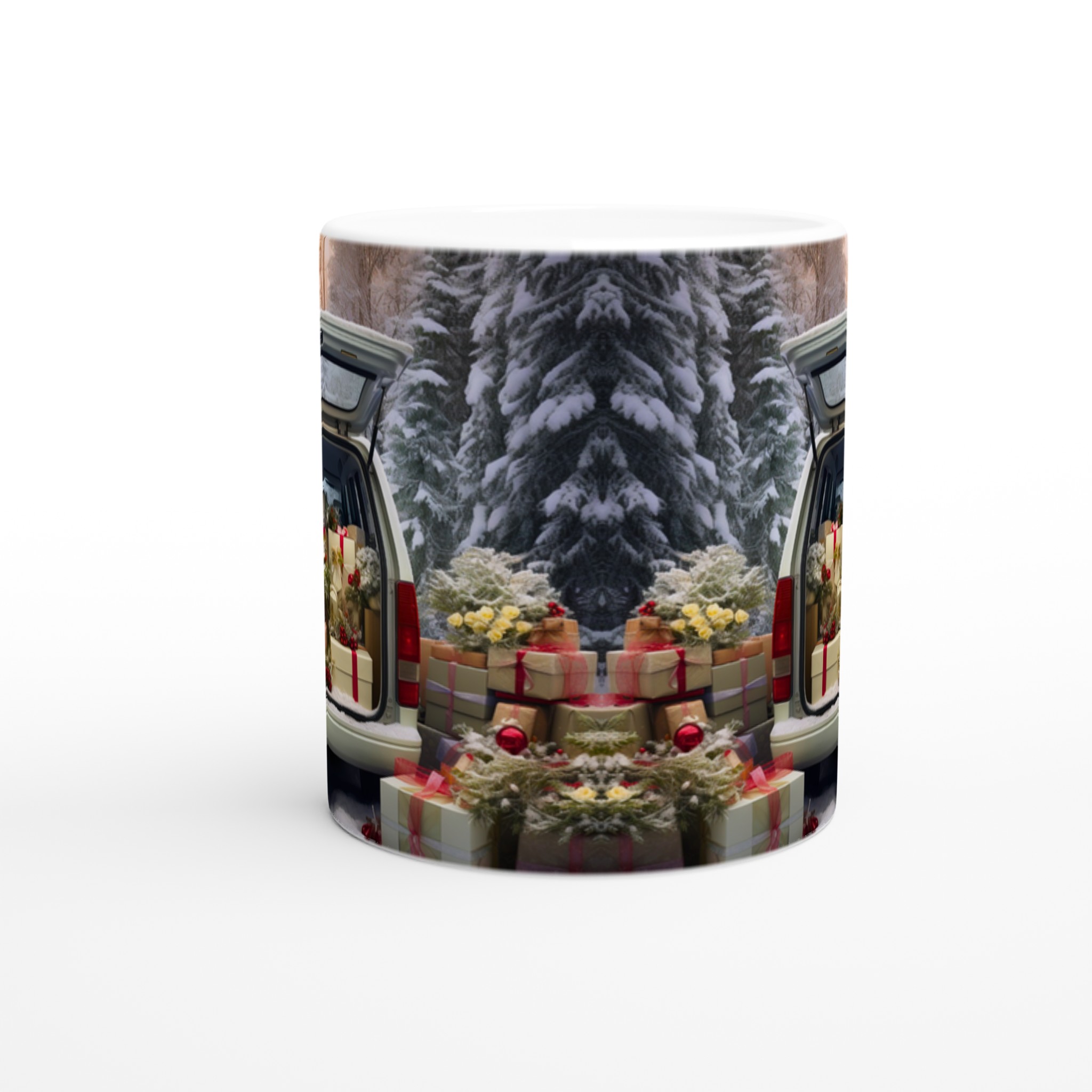 Föreställ dig den mysiga känslan: en frostig vinterdag, och du värmer dig med en rykande het dryck i din nya favoritkopp. Denna charmiga keramiska mugg, som för tankarna till en bil fullastad med julklappar och grönska i ett snöigt vinterlandskap, är den perfekta följeslagaren under årets kallare månader. Med sin blanka yta framhävs trycken med klara och levande färger, som håller sig fina även efter många turer i mikron och diskmaskinen, redo för otaliga stunder av avkoppling.