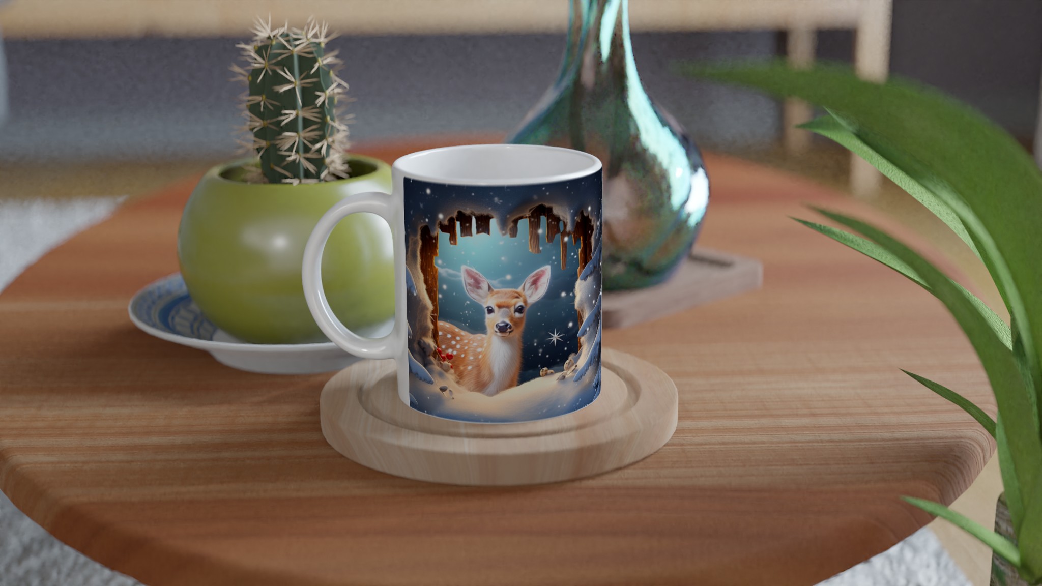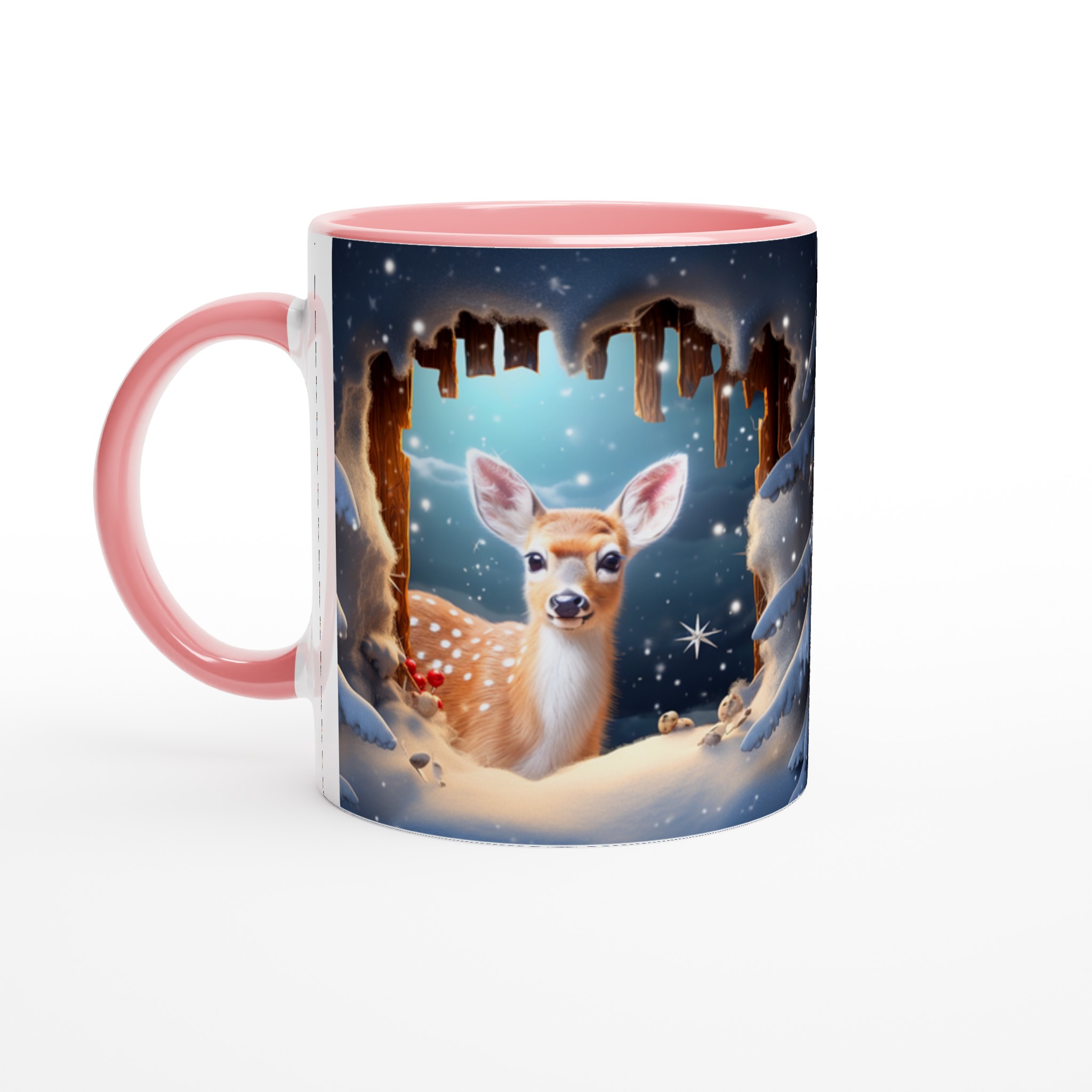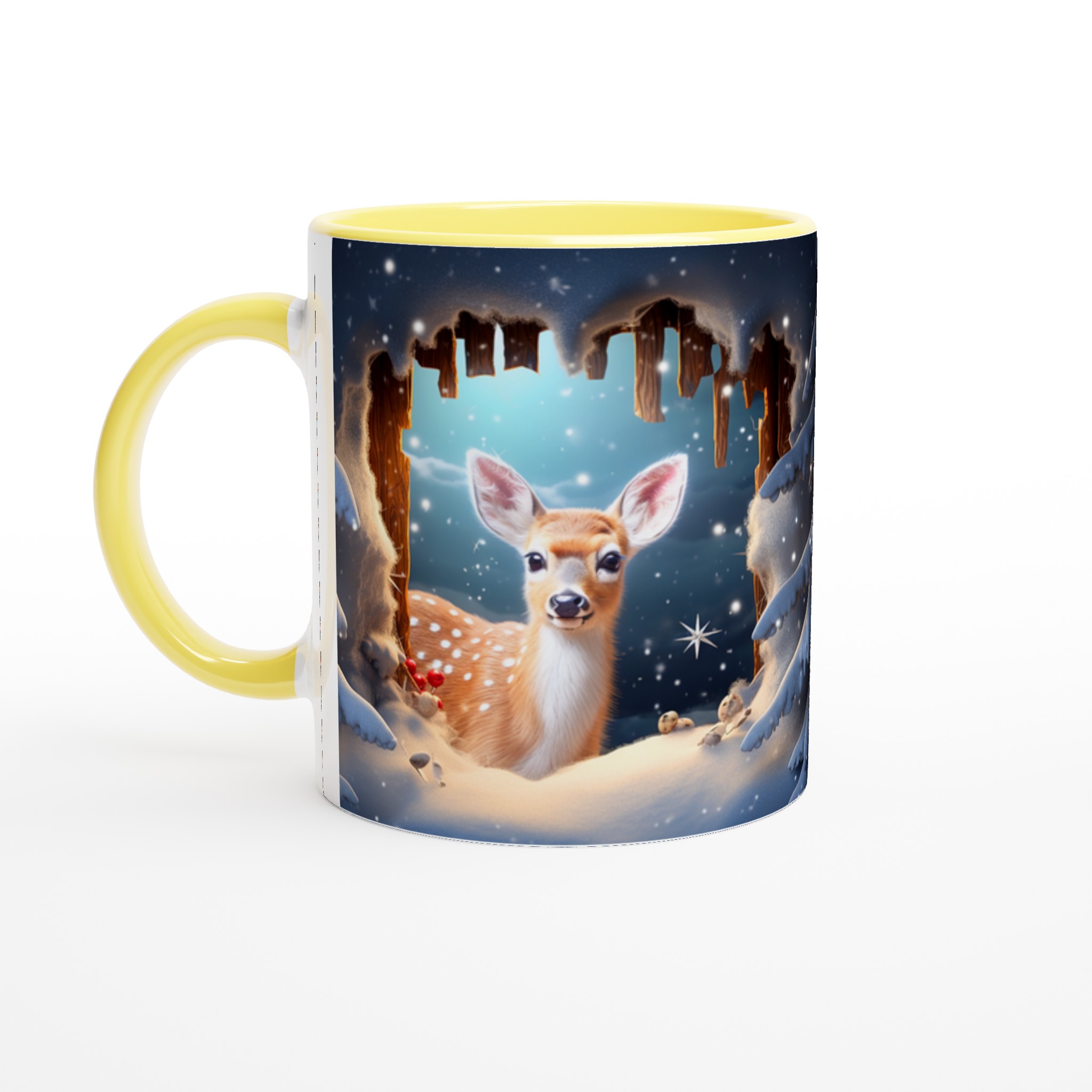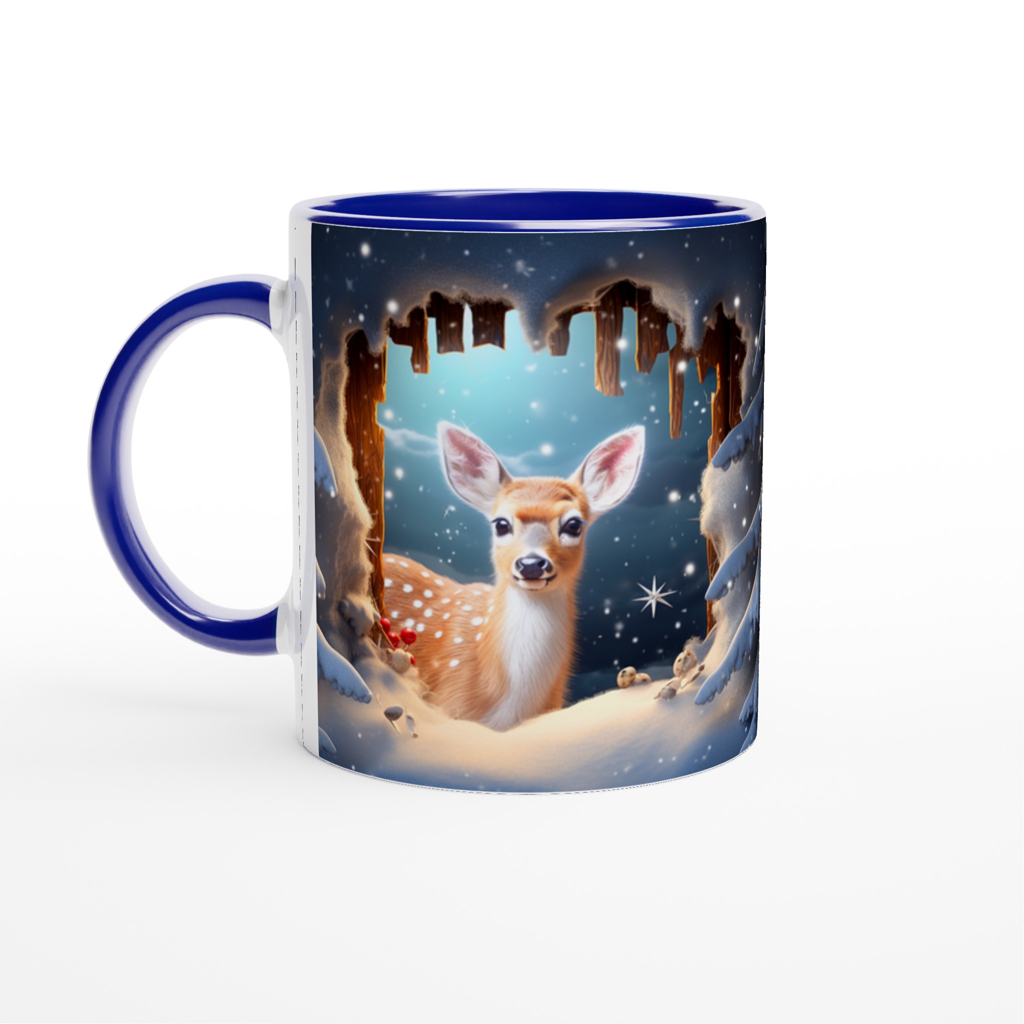 Föreställ dig en mysig vintermorgon, insvept i en filt, med en värmande dryck i din hand. Denna förtrollande keramiska mugg, prydd med ett bedårande vinterrådjur omgivet av snöklädda granar, skapar den perfekta stämningen för alla dina varma favoritdrycker. Perfekt för morgonkaffet, kvällens varma choklad eller när du bara vill njuta av en kopp te. Den blanka ytan framhäver illustrationen med klara och levande färger, som håller sig fina även efter många turer i mikron och diskmaskinen.