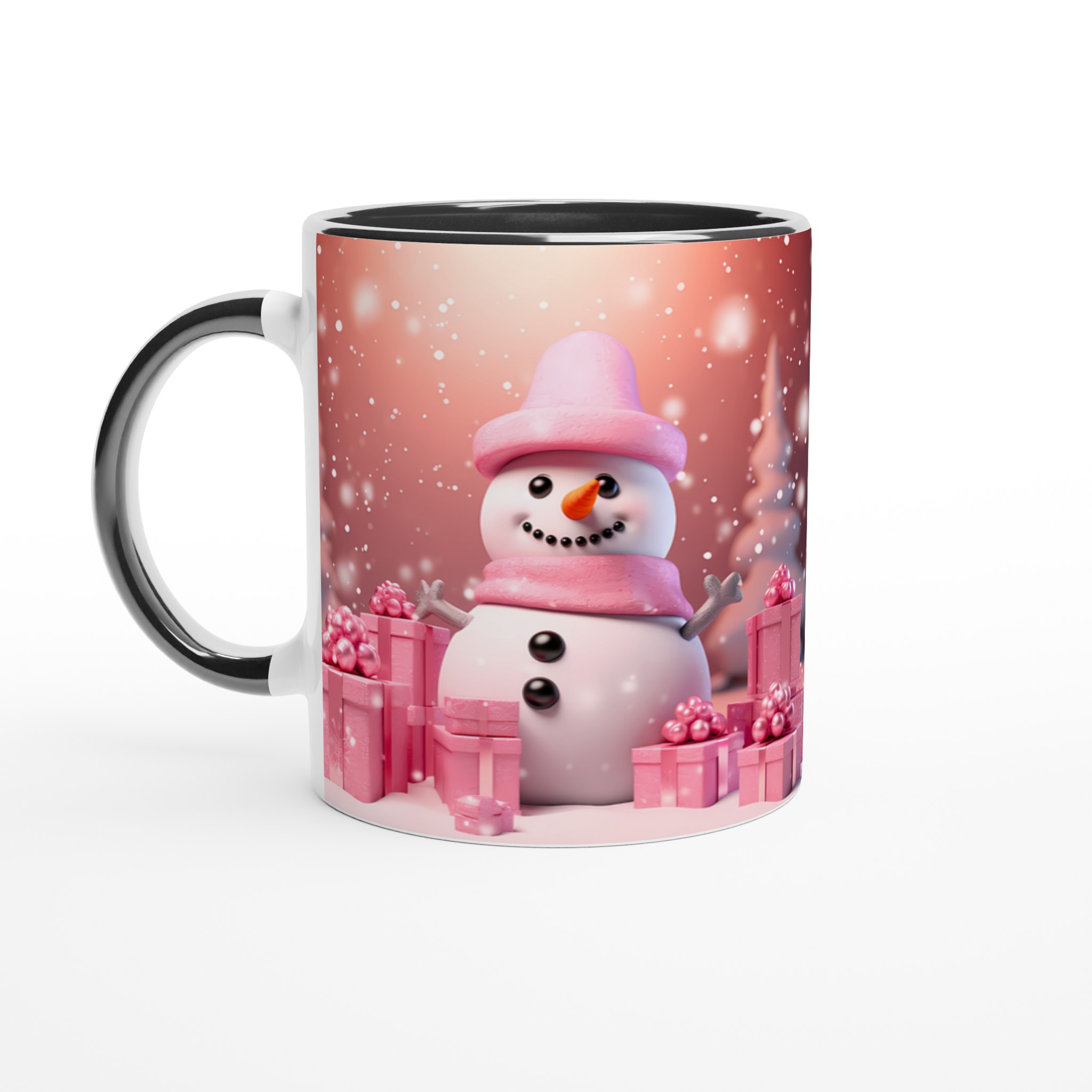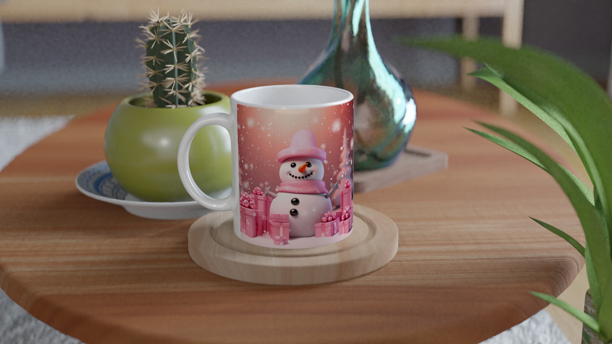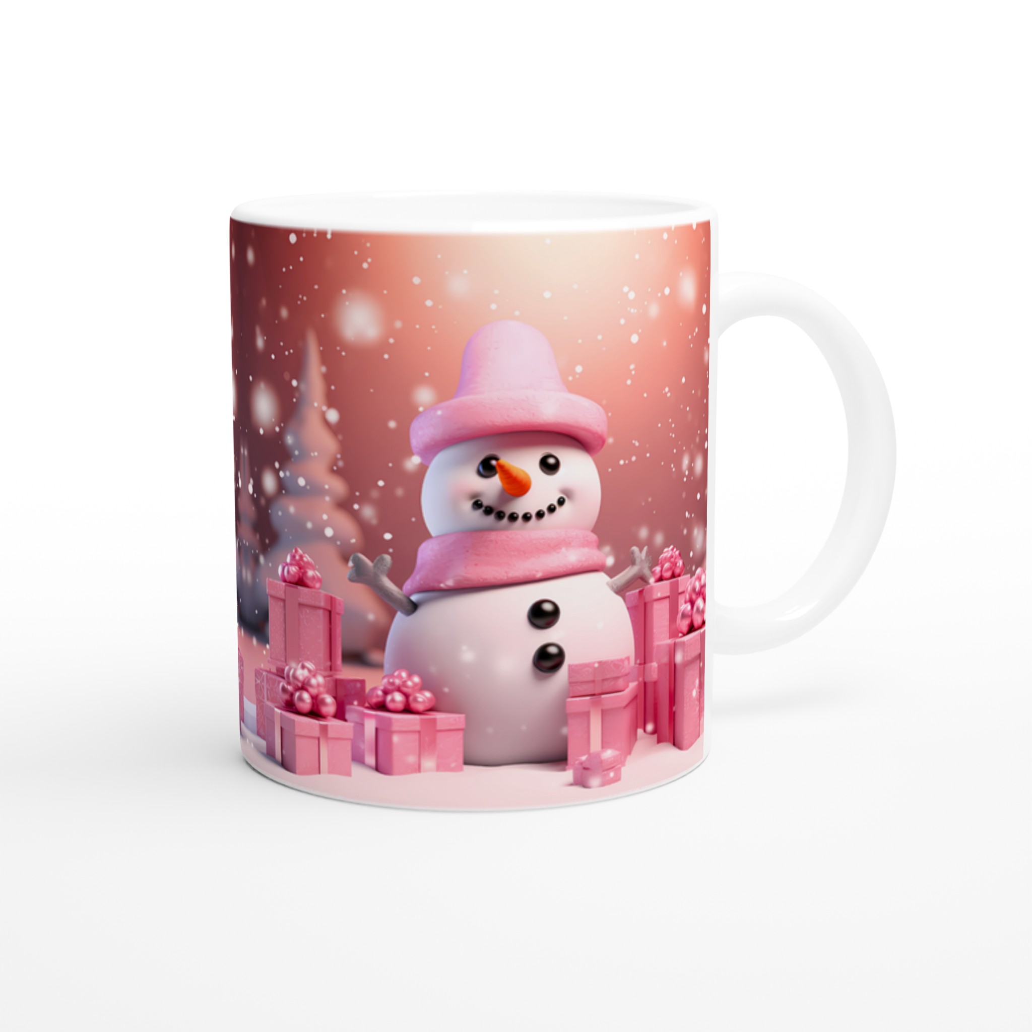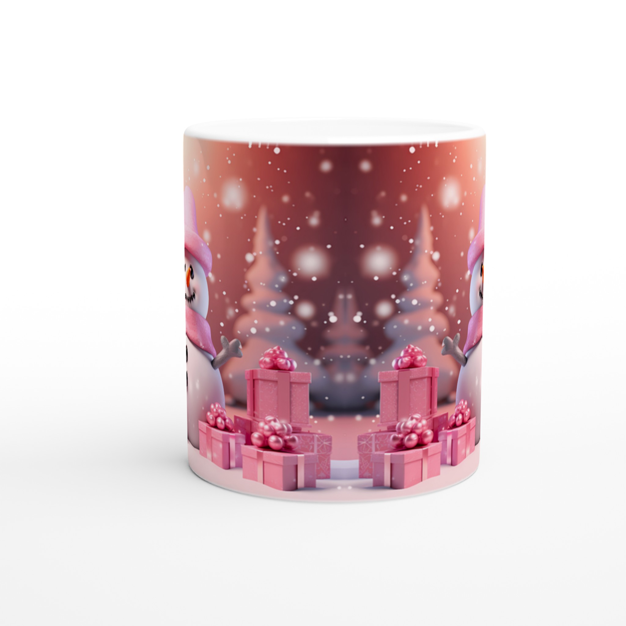 Lys upp din dag med vår charmiga ”Vintermys Mugg”! Denna bedårande keramiska mugg är prydd med en vänlig snögubbe i en mysig rosa mössa och halsduk, omgiven av glittrande rosa julklappar under ett lugnt snöfall. Den rosa och vita färgpaletten skapar en drömlik och festlig stämning, perfekt för att sprida glädje under de kalla månaderna eller året runt.