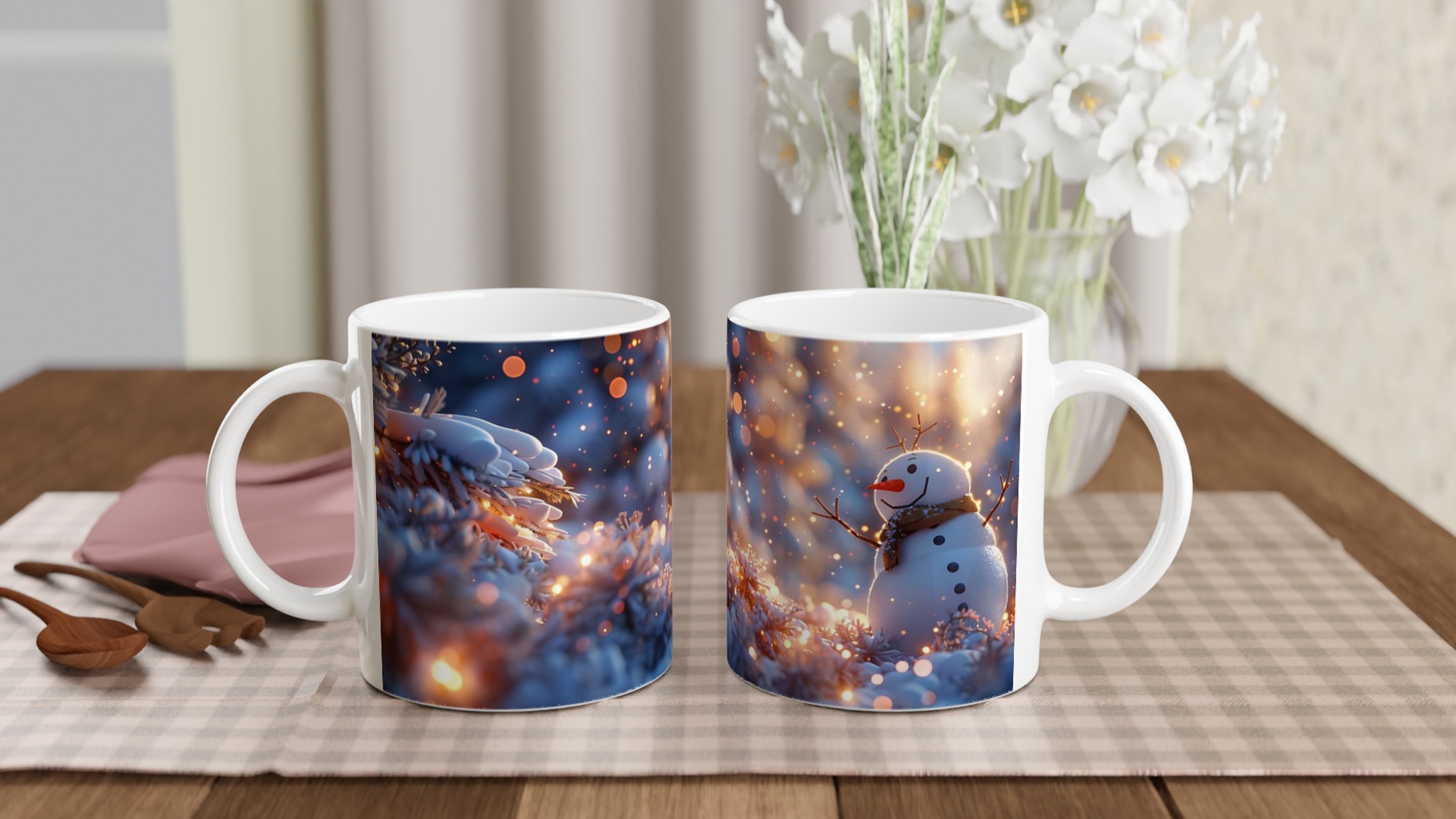 Fånga vinterkvällens förtrollande skimmer med vår ”Vinternattens Magi”-mugg. Denna mugg är en hyllning till den magiska känslan av en snöig natt, med en glad snögubbe omgiven av glittrande ljus, precis som i bilden. Den är perfekt för att värma dig med en rykande kopp kaffe, kakao eller te under kyliga dagar, och bjuder in till mysiga stunder fyllda av vinterglädje.