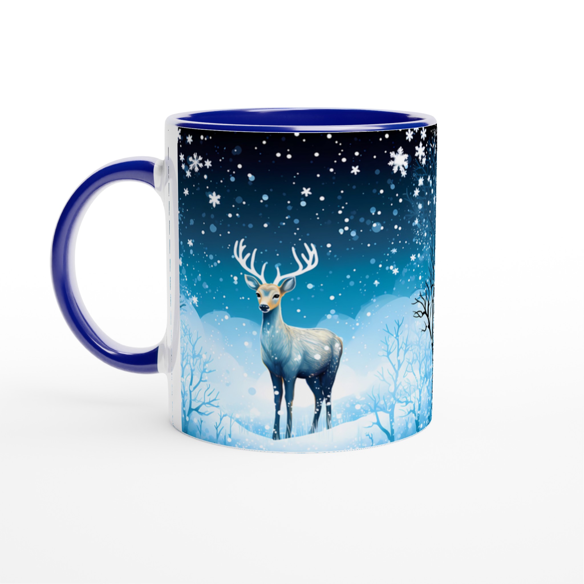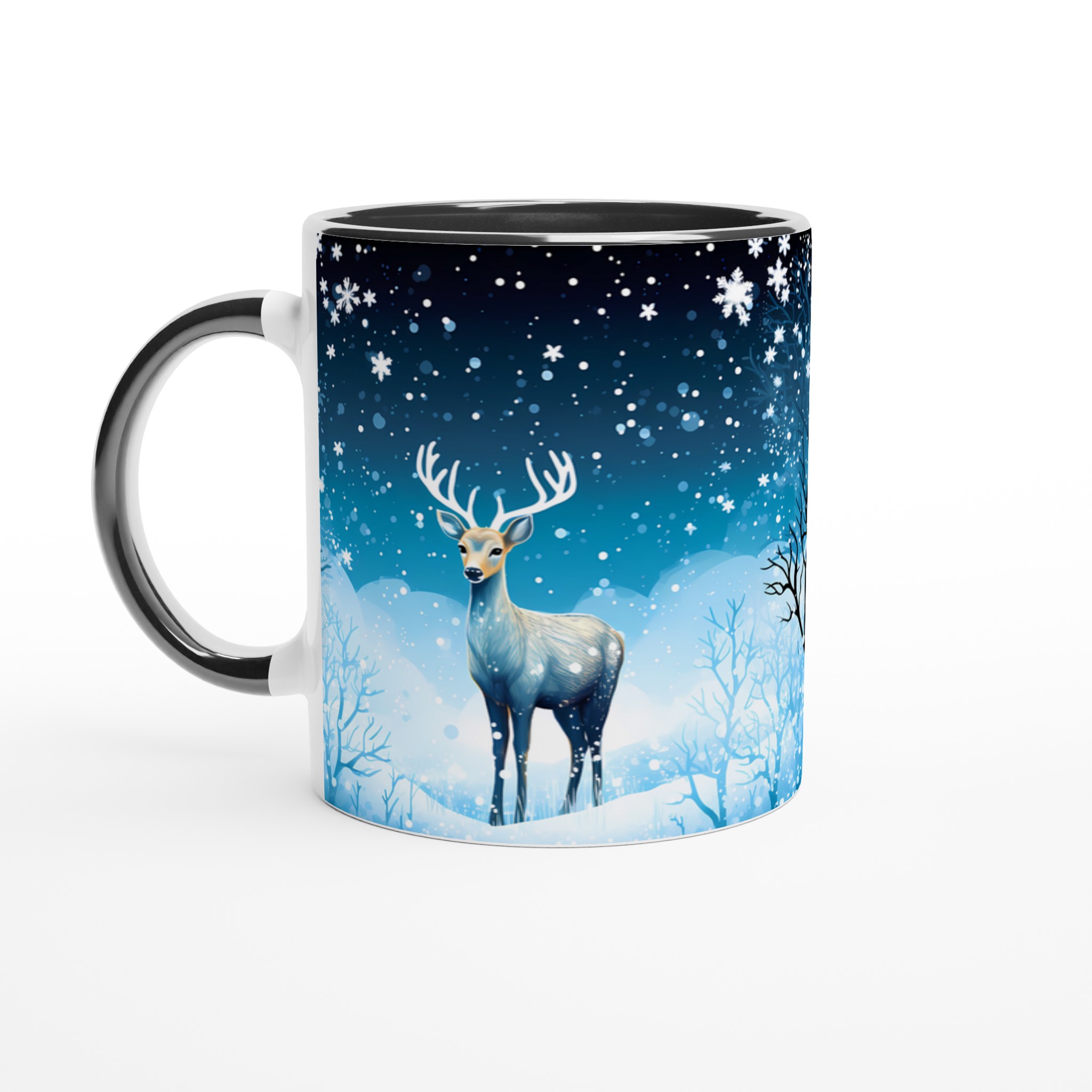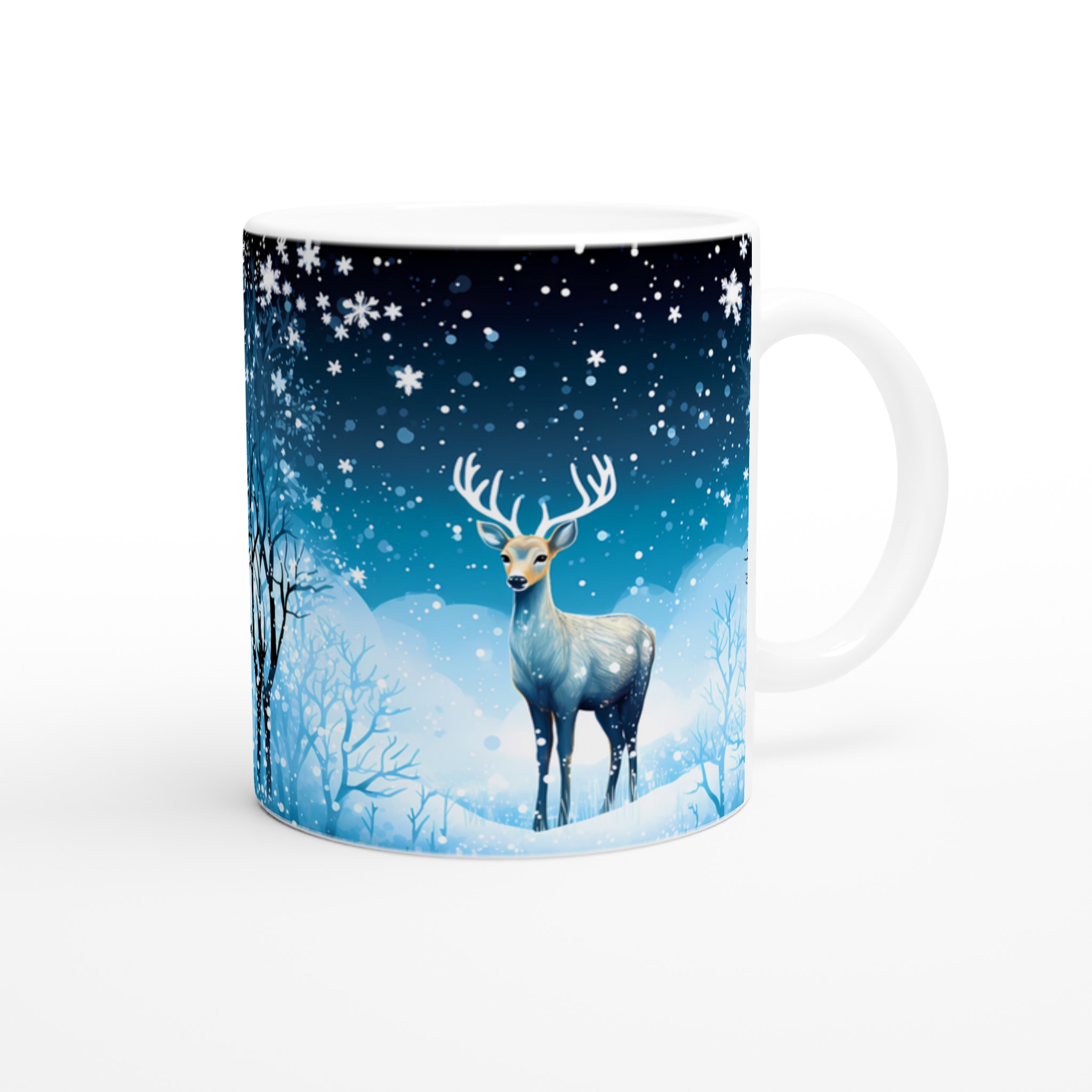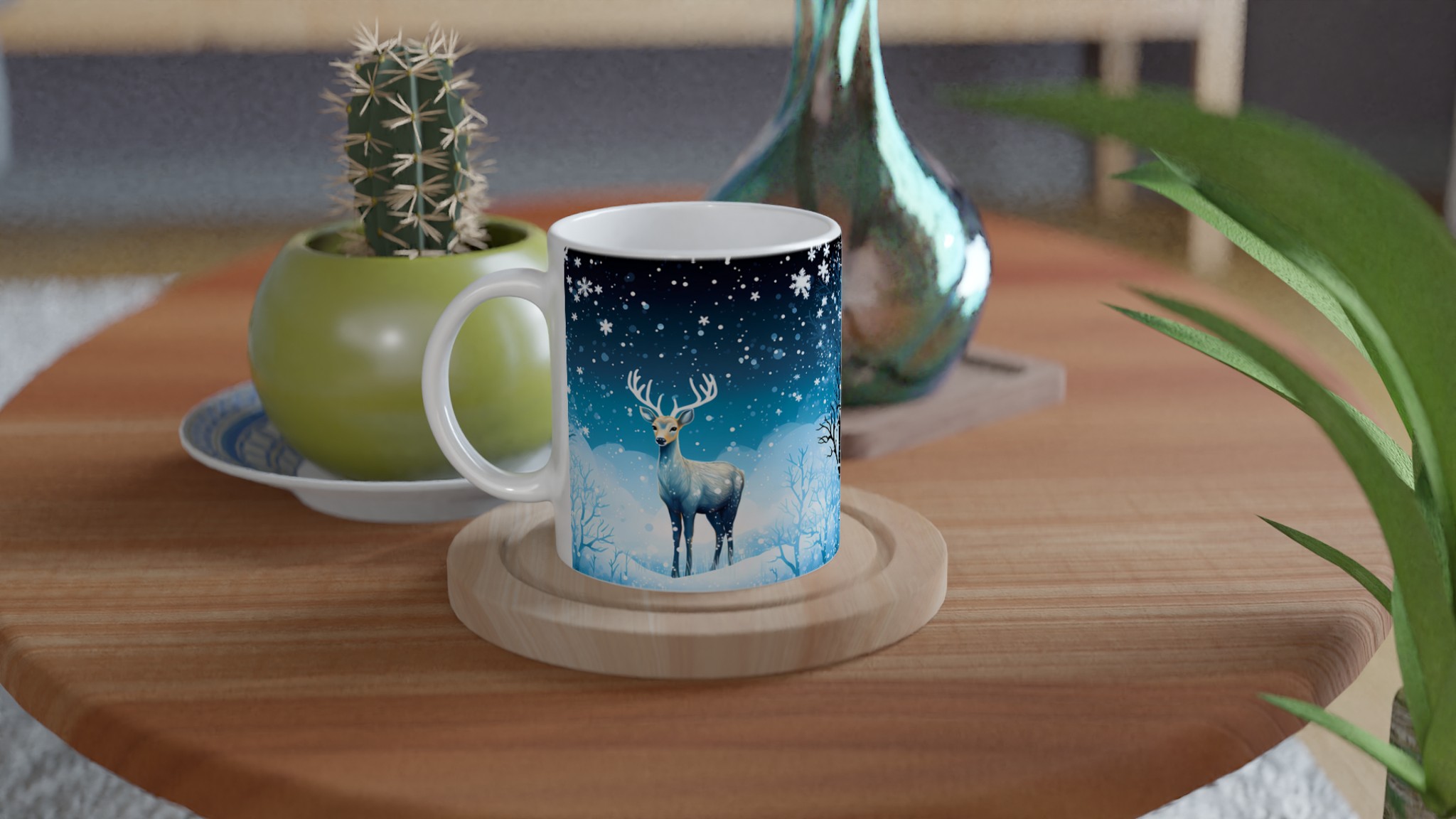 Låt dig förtrollas av vintermagin varje gång du tar en klunk! Denna stilrena keramiska mugg, prydd med ett majestätiskt rådjur i ett snöigt vinterlandskap, blir snabbt en vardagsfavorit. Perfekt för morgonkaffet, kvällens varma choklad eller när du bara vill njuta av en kopp te. De klara och levande färgerna i det vackra vintermotivet framhävs elegant på den blanka ytan och håller sig fina även efter många turer i mikron och diskmaskinen.