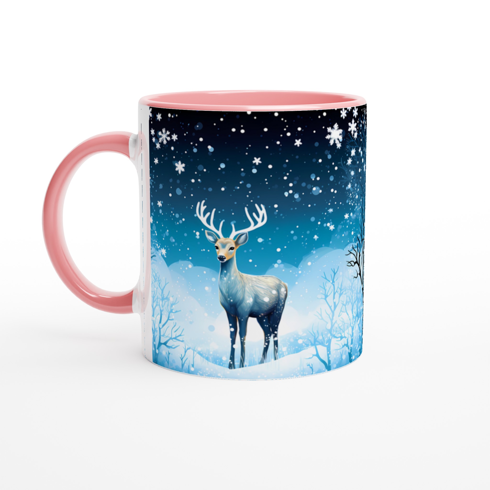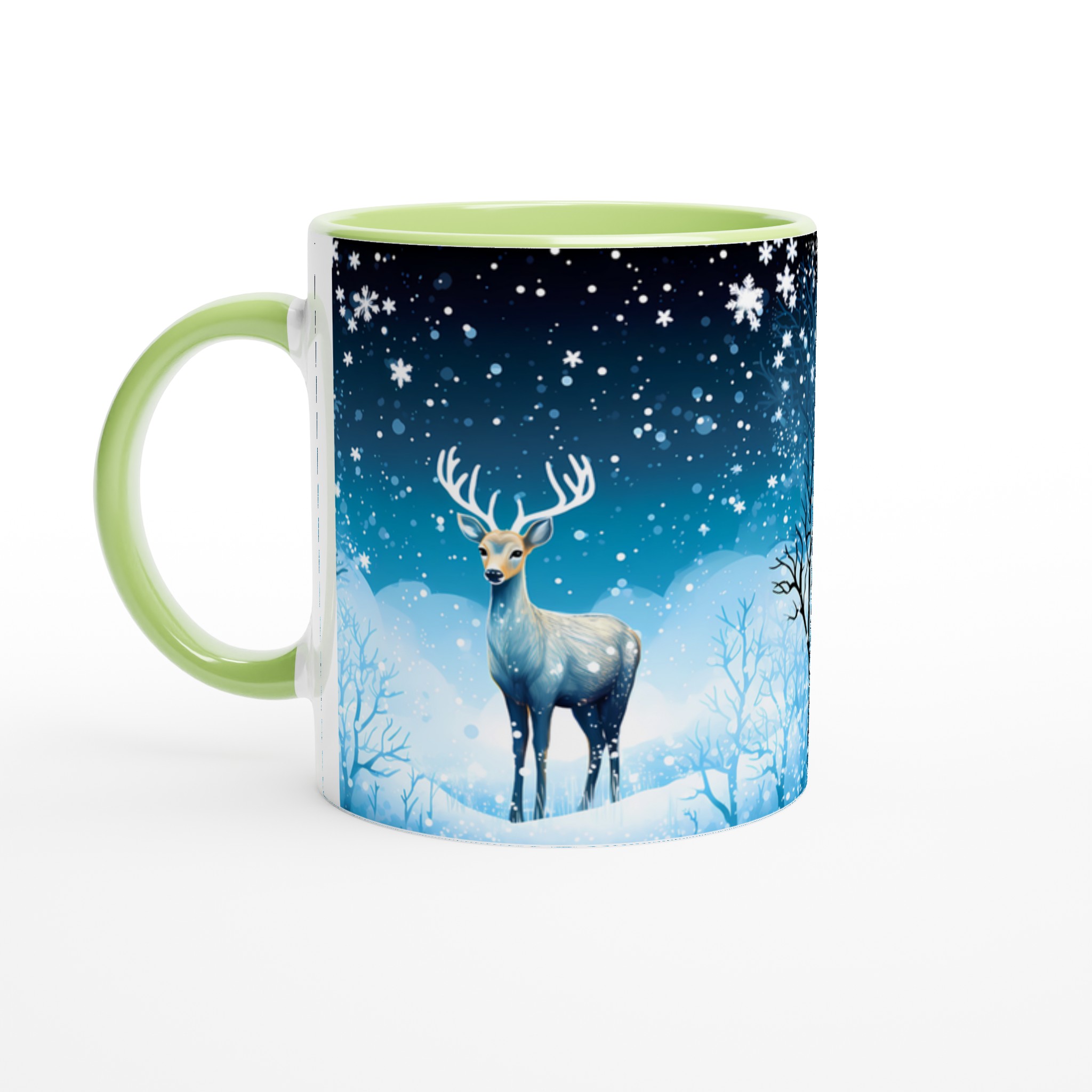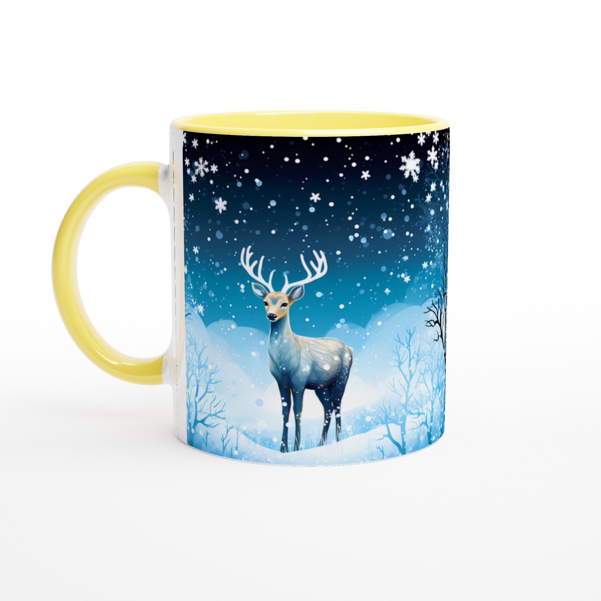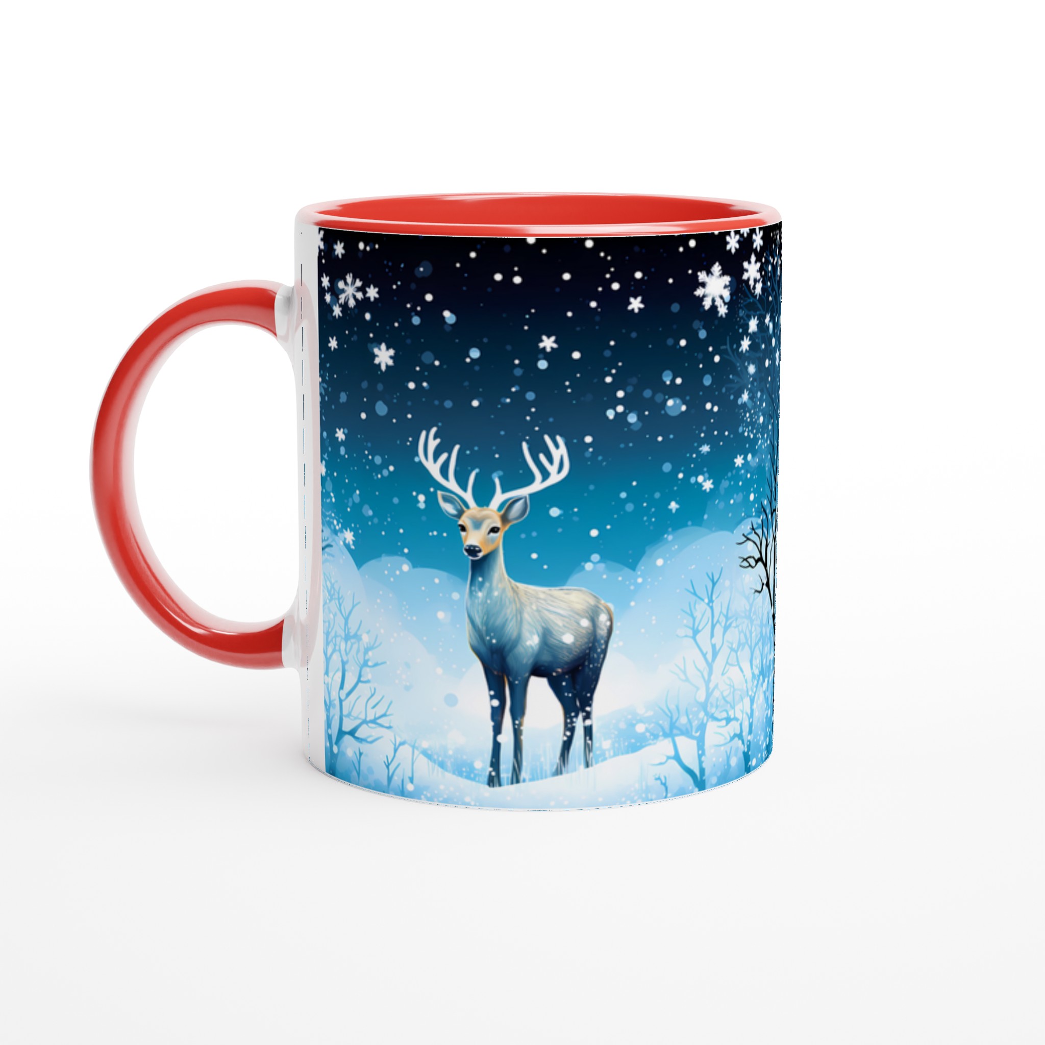 Låt dig förtrollas av vintermagin varje gång du tar en klunk! Denna stilrena keramiska mugg, prydd med ett majestätiskt rådjur i ett snöigt vinterlandskap, blir snabbt en vardagsfavorit. Perfekt för morgonkaffet, kvällens varma choklad eller när du bara vill njuta av en kopp te. De klara och levande färgerna i det vackra vintermotivet framhävs elegant på den blanka ytan och håller sig fina även efter många turer i mikron och diskmaskinen.