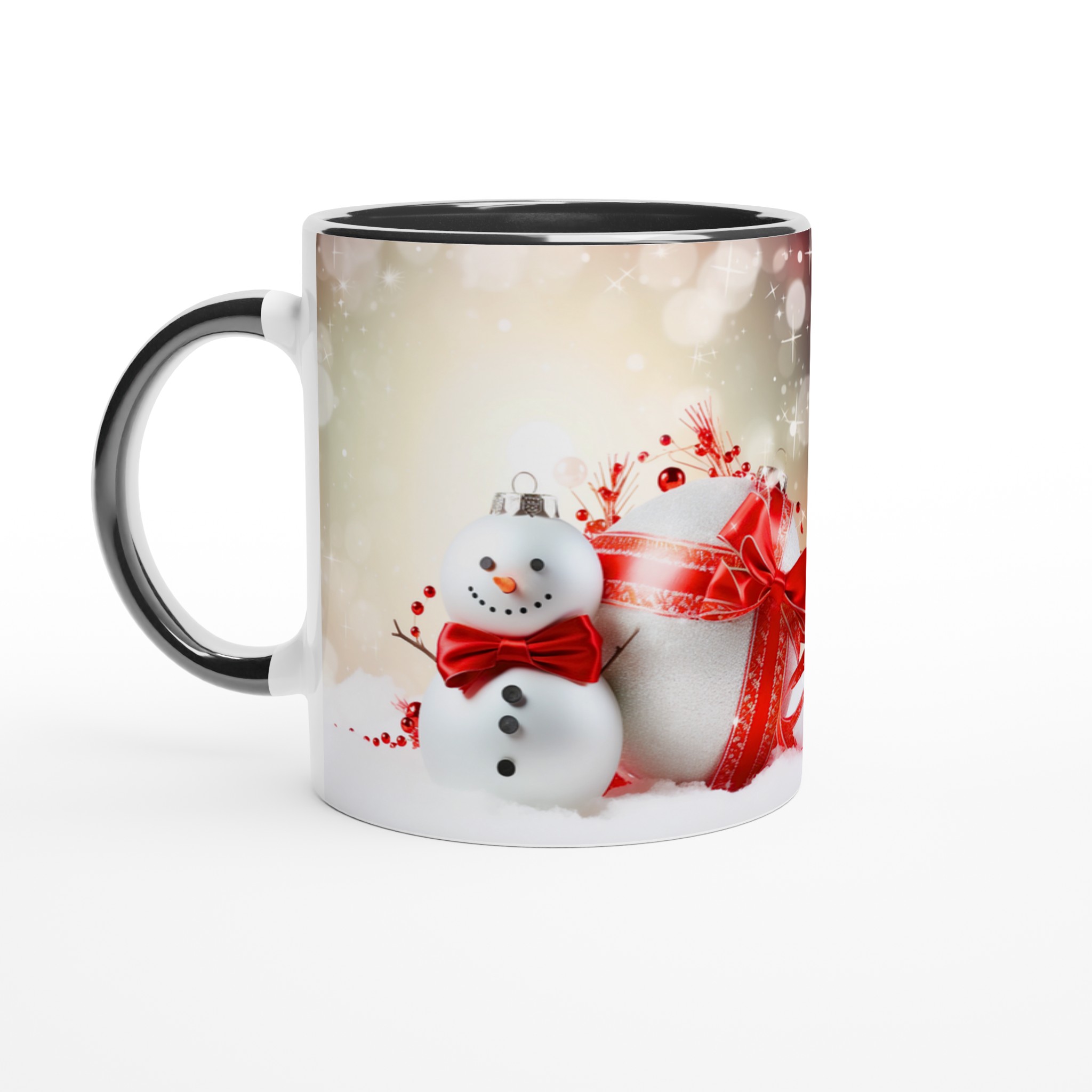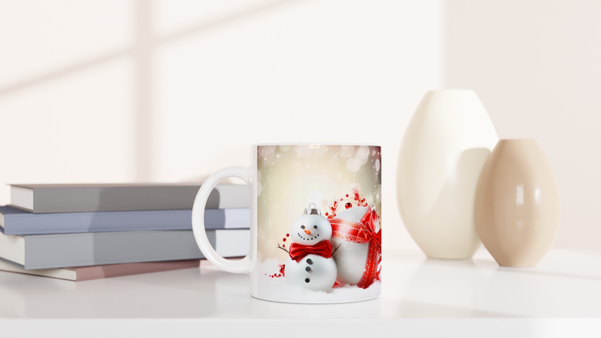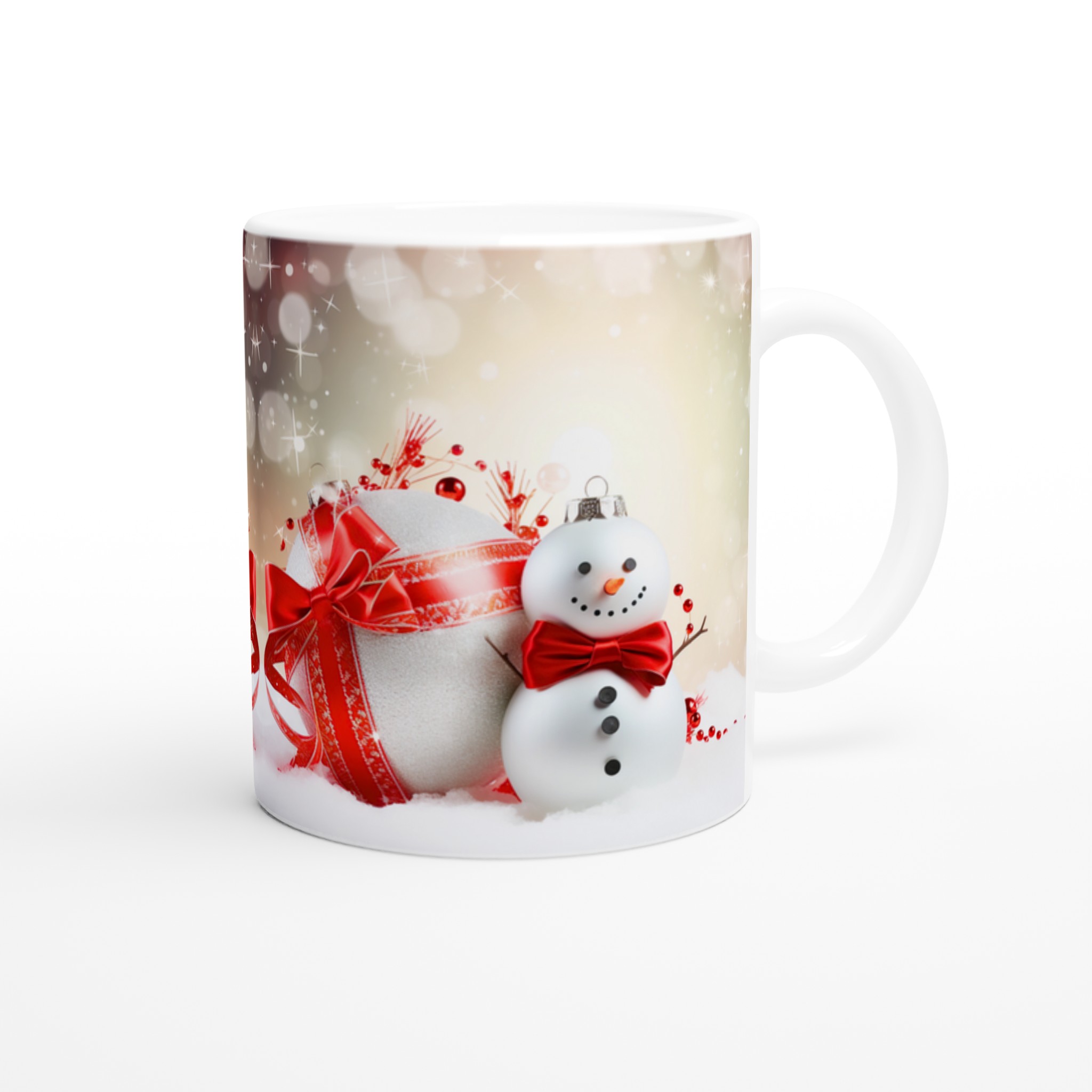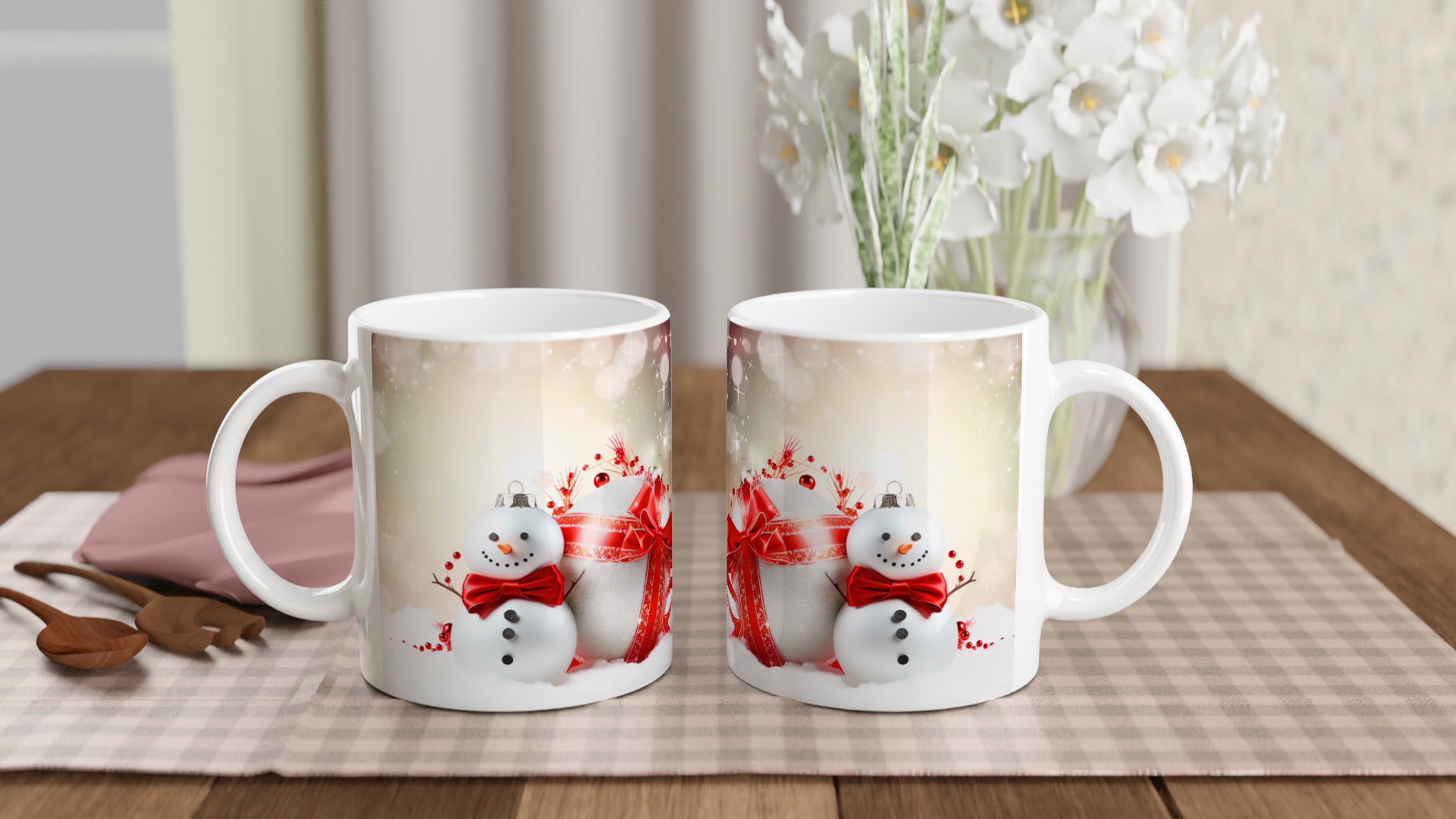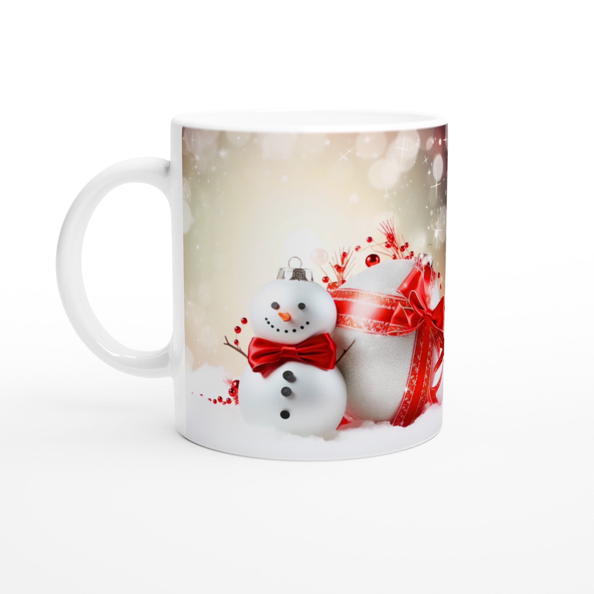 Fånga vinterns varma känsla med vår specialdesignade keramiska mugg, dekorerad med bedårande snögubbar och glittrande julpynt mot en drömsk bokeh-bakgrund. Den här muggen är mer än bara en kopp – den är en inbjudan till mysiga stunder, perfekt för morgonkaffet, kvällens varma choklad eller när du vill njuta av en kopp te.