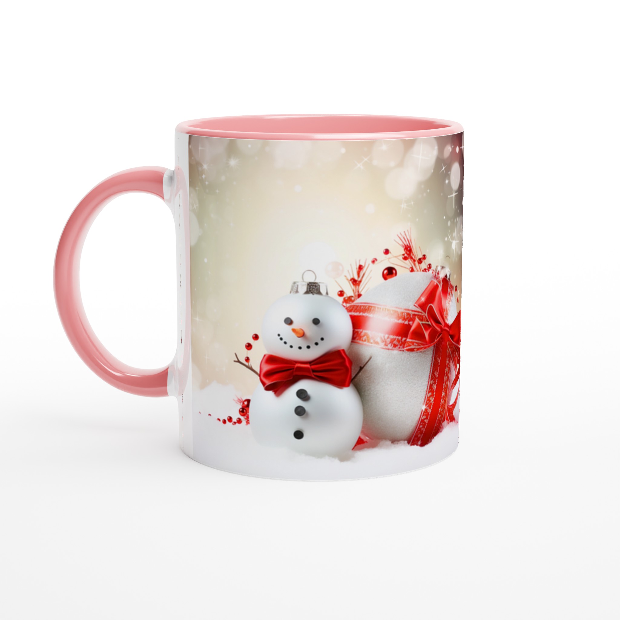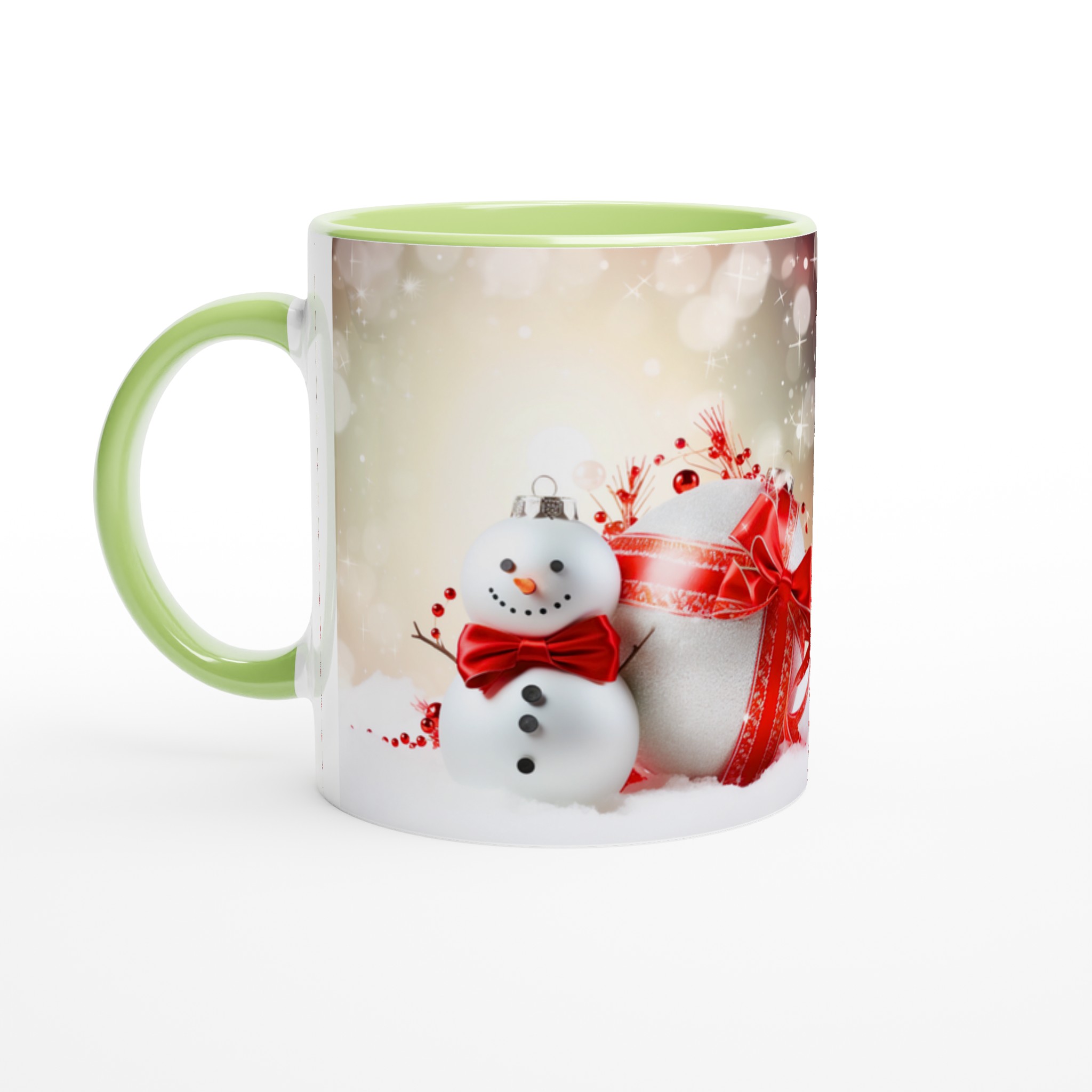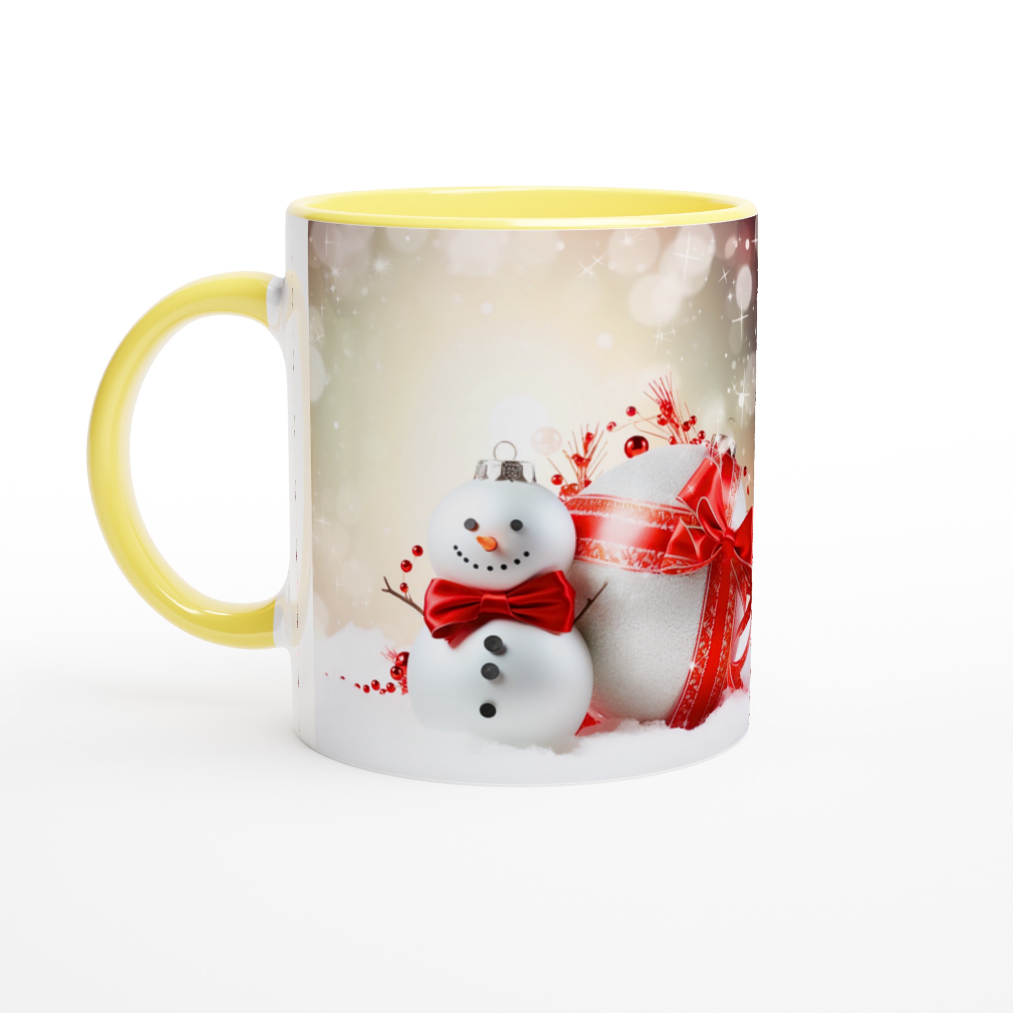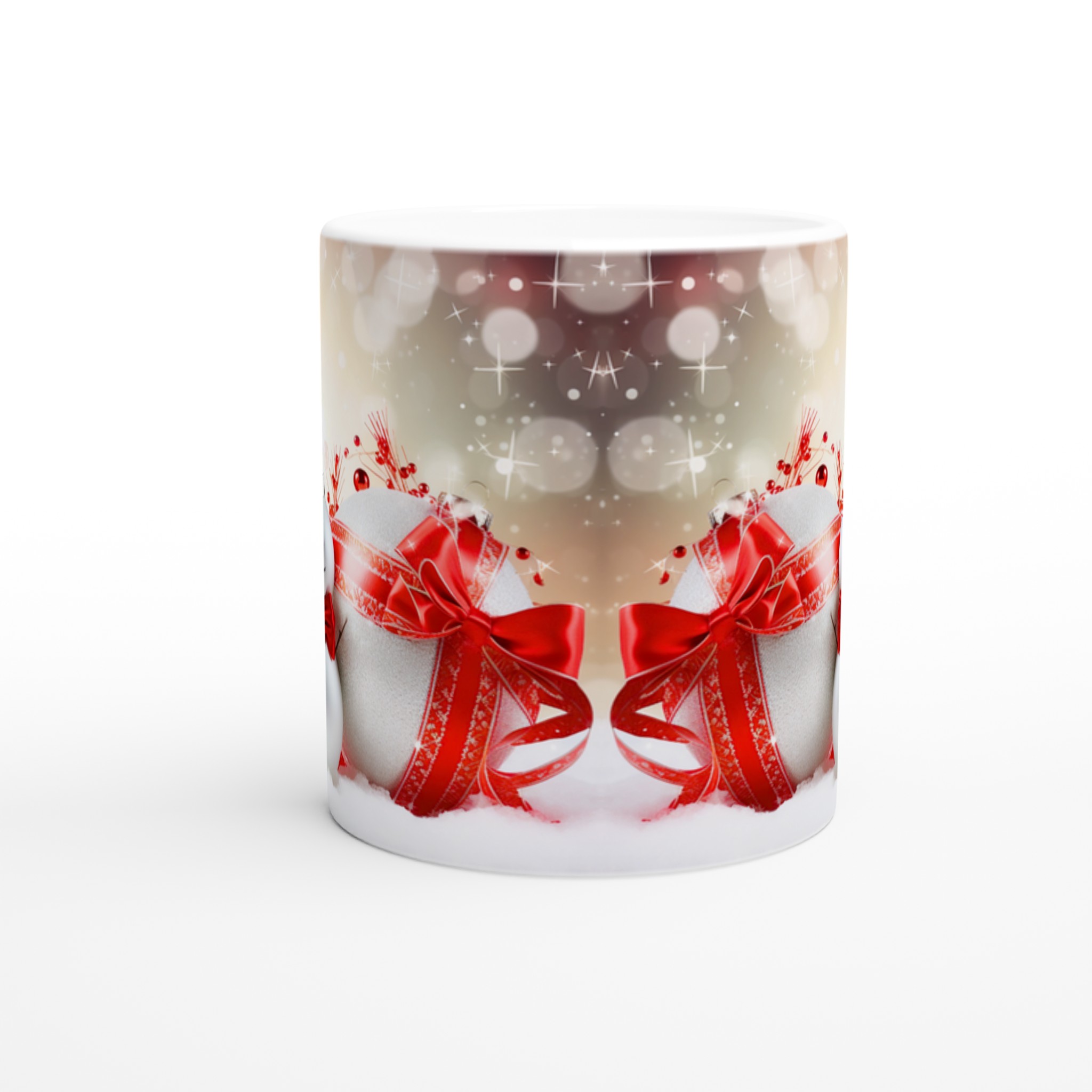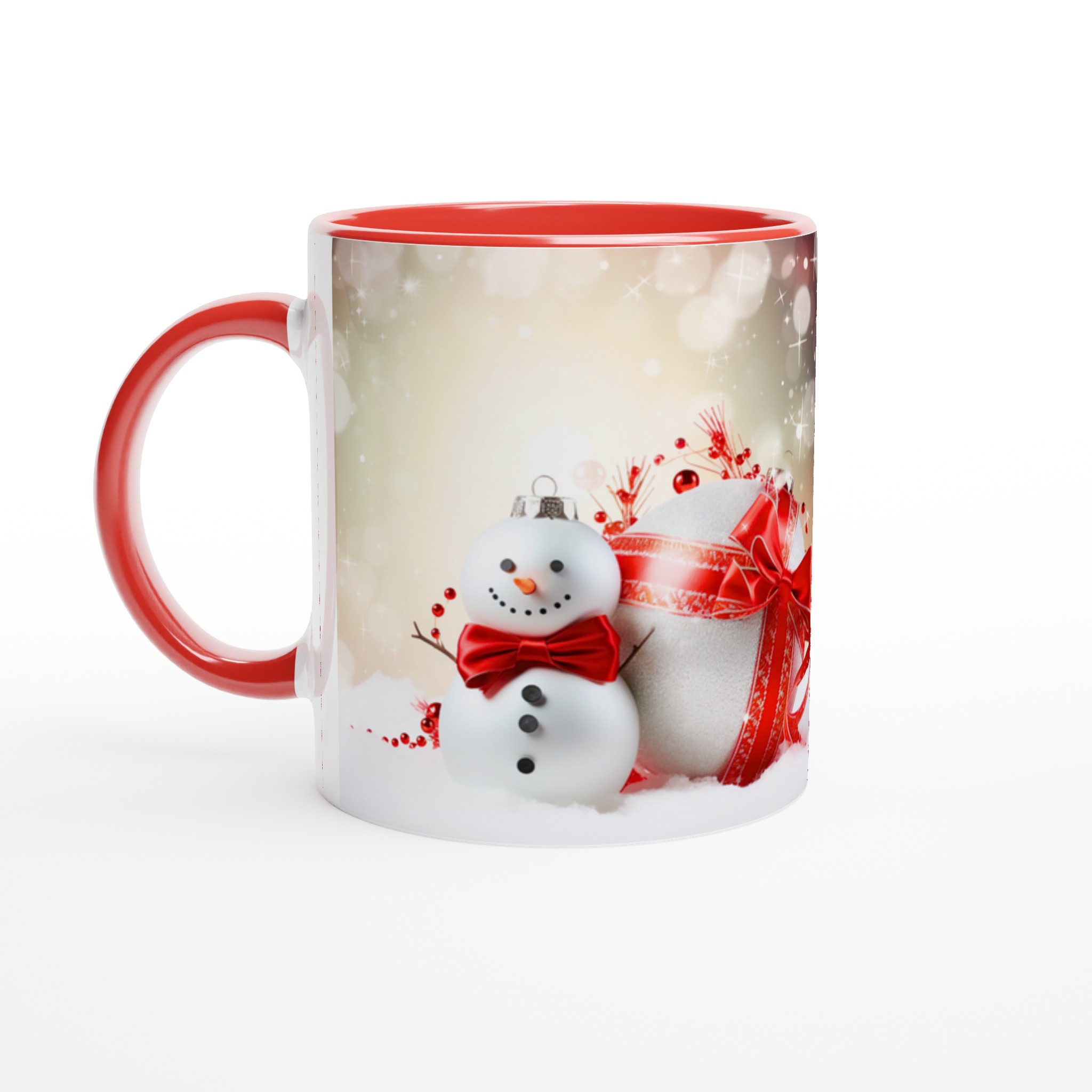 Fånga vinterns varma känsla med vår specialdesignade keramiska mugg, dekorerad med bedårande snögubbar och glittrande julpynt mot en drömsk bokeh-bakgrund. Den här muggen är mer än bara en kopp – den är en inbjudan till mysiga stunder, perfekt för morgonkaffet, kvällens varma choklad eller när du vill njuta av en kopp te.