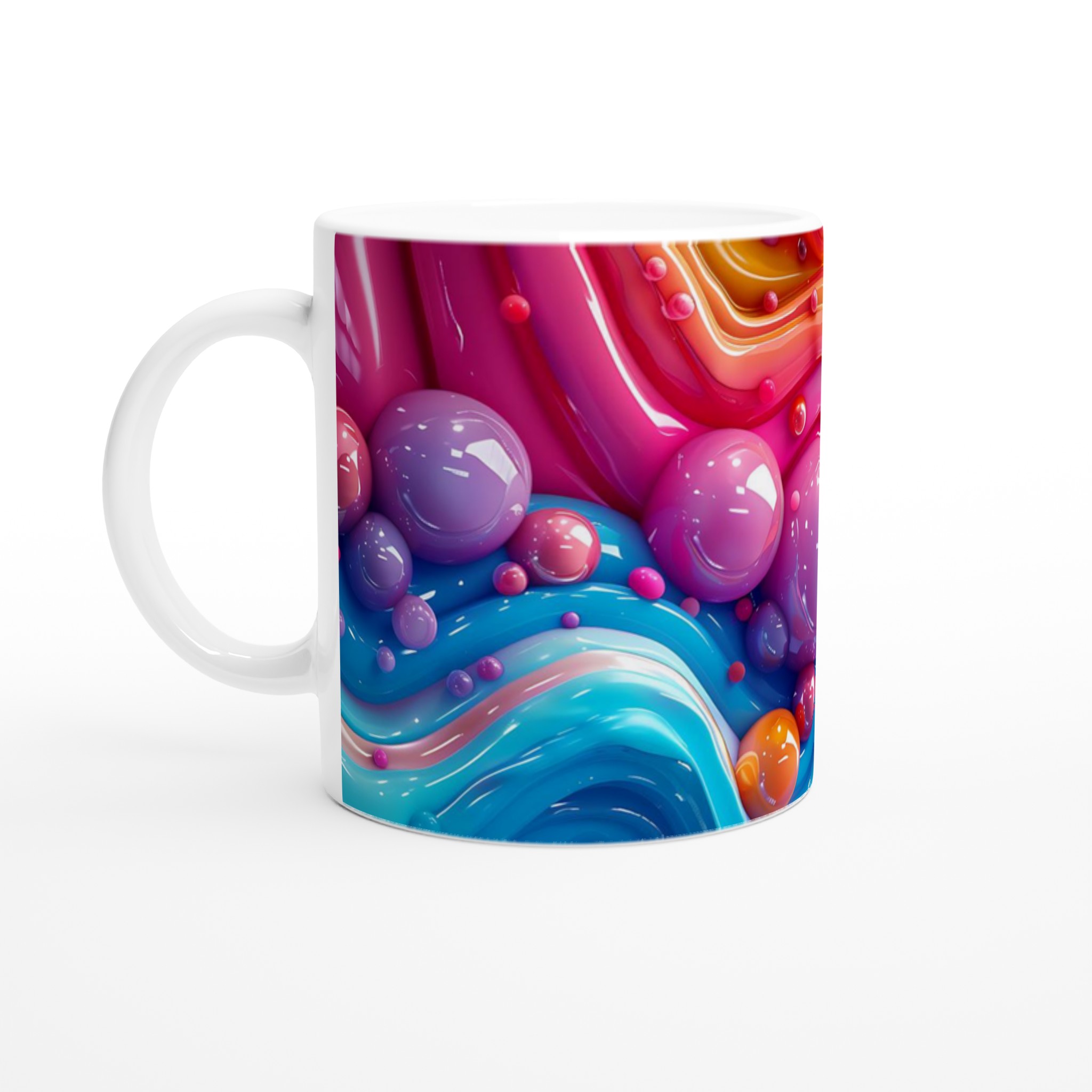 Den blanka vita ytan ger ett skarpt och levande tryck som verkligen sticker ut, oavsett om det är en personlig design, ett roligt citat eller en present till någon du tycker om. Inspireras av den lekfulla paletten av bubblegumrosa, himmelsblått och solkysst gult för att skapa något unikt och fullt av personlighet!
