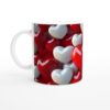 Muggen rymmer 11 oz (ca 3,25 dl), en lagom storlek för både jobb och hemmabruk. Den passar lika bra som en personlig vardagsmugg för att sprida kärlek och glädje, eller som en uppskattad present till familj, vänner eller kollegor som älskar skimrande färger och hjärtliga motiv.