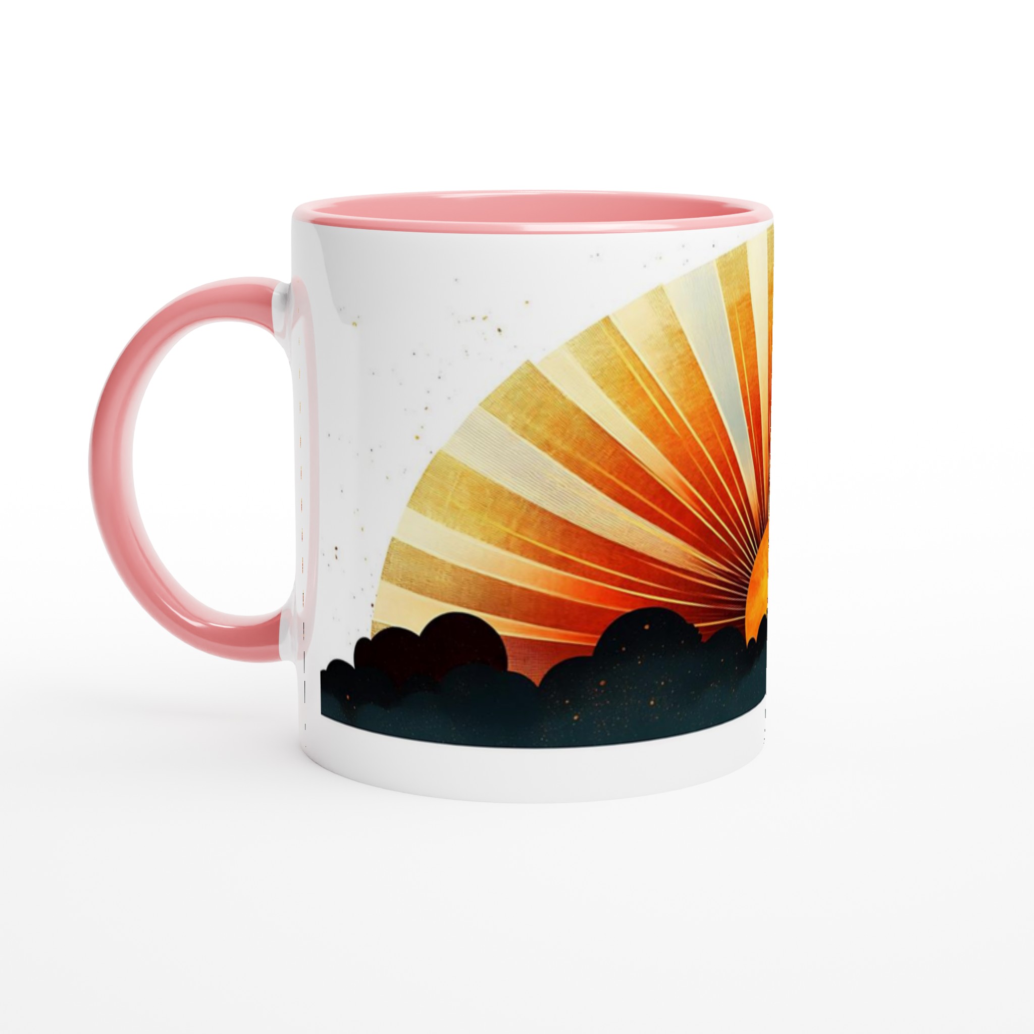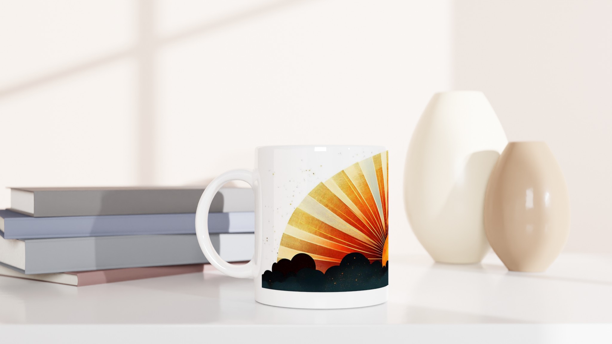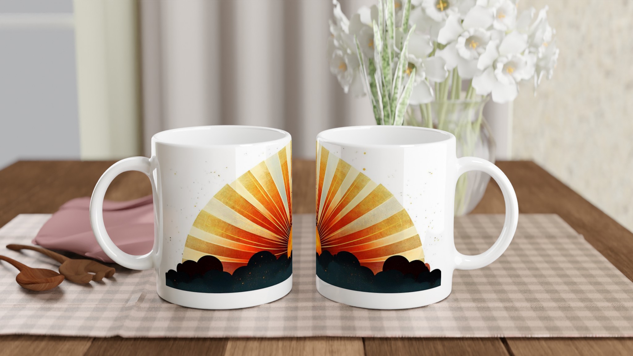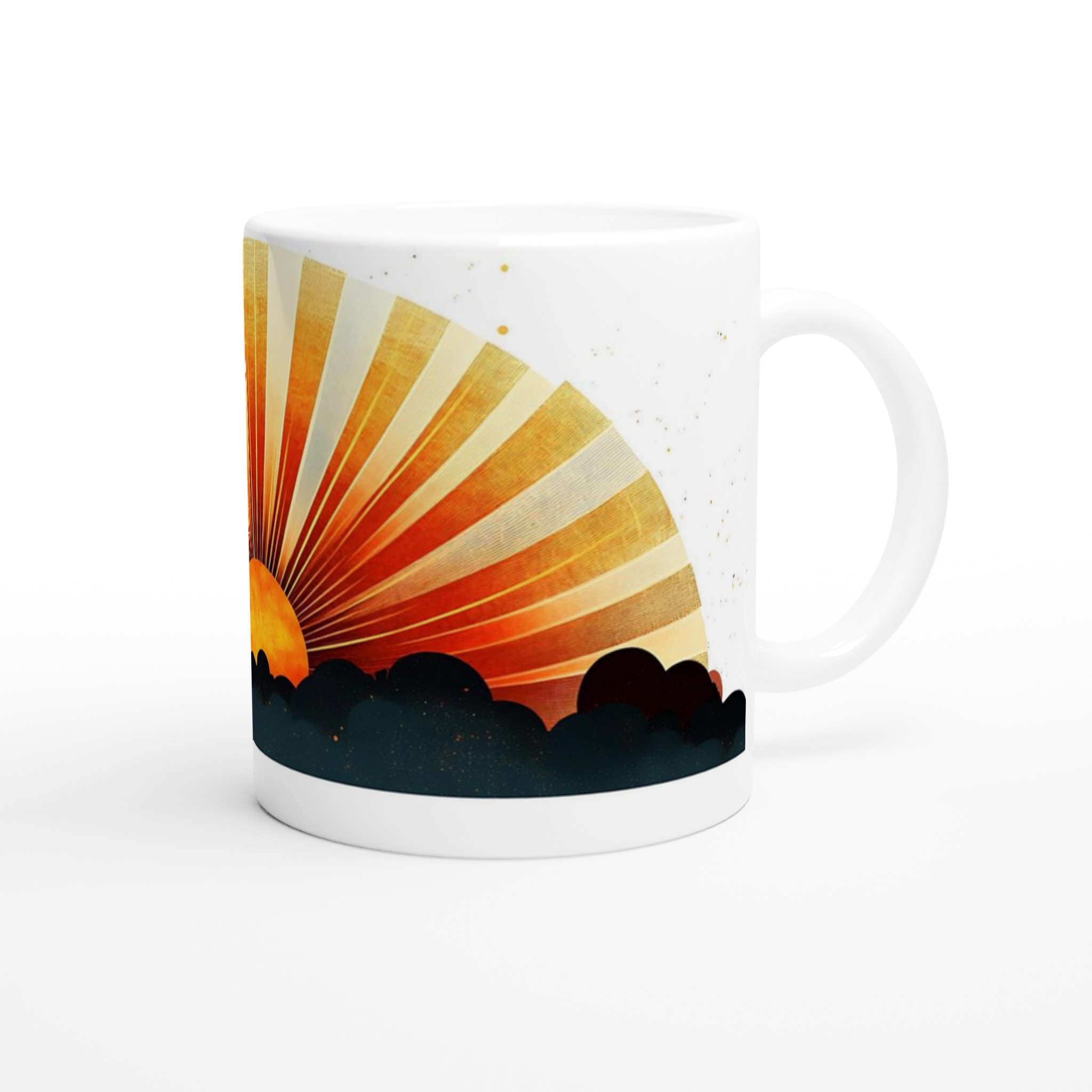 Lyft varje kaffestund med vår premium keramikmugg – stilren, hållbar och skapad för att låta ditt motiv glänsa. Inspirerad av den lugnande skönheten hos en zen-soluppgång, med varma gyllene strålar som möter mörkare, stjärnbeströdda moln, ger denna mugg en känsla av ro till din vardag. Den blanka vita ytan ger ett skarpt och levande tryck som verkligen sticker ut, oavsett om det är en personlig design, ett roligt citat eller en present till någon du tycker om.