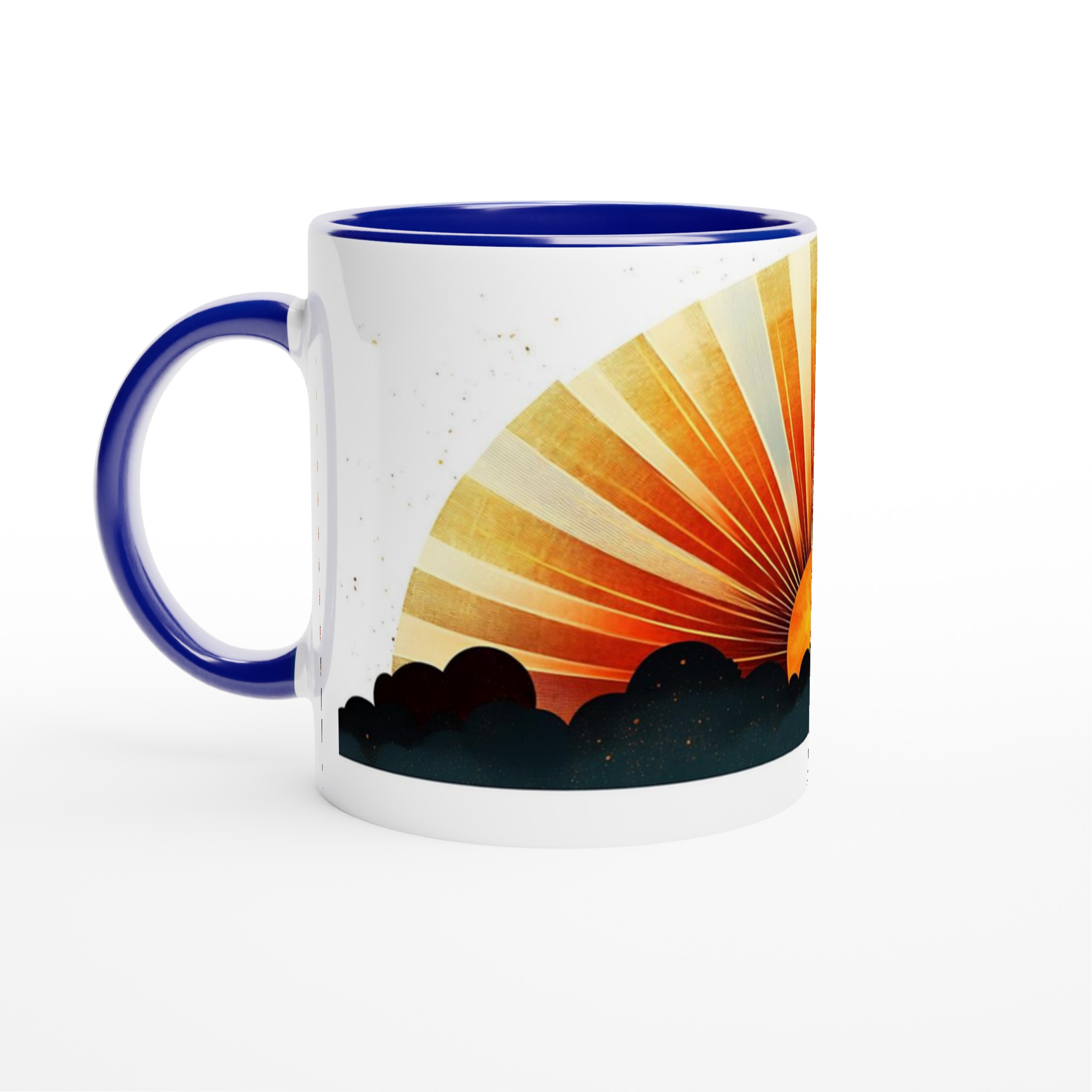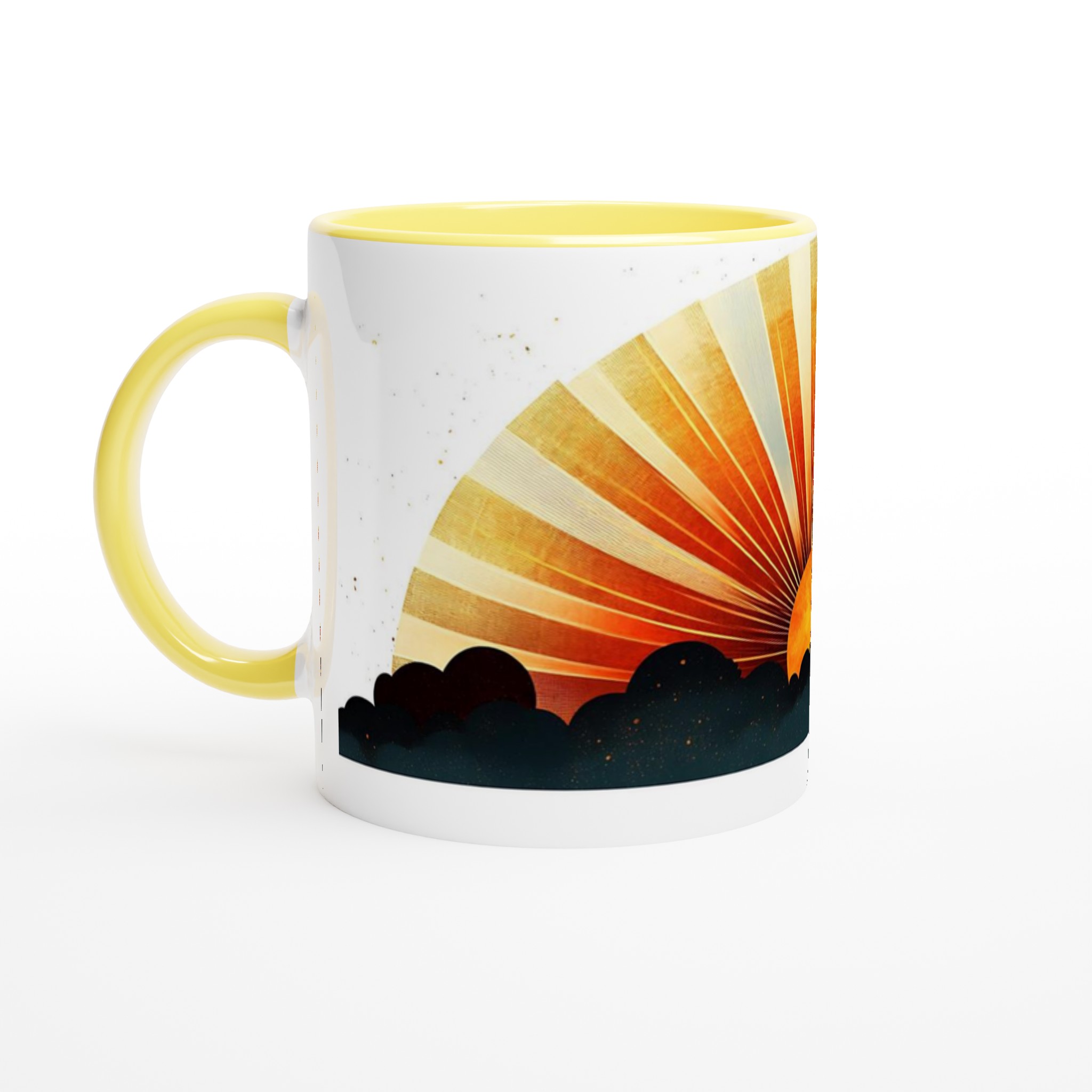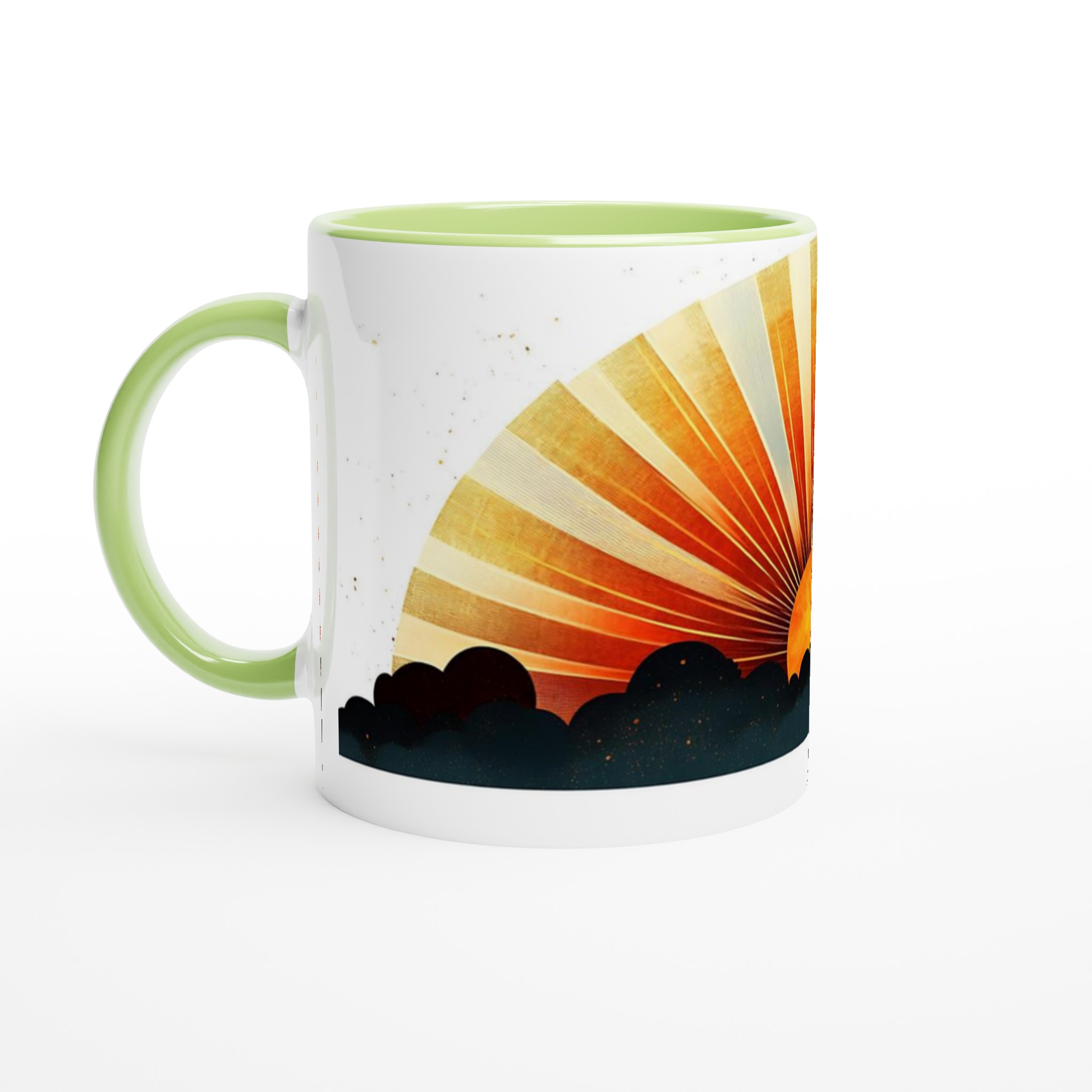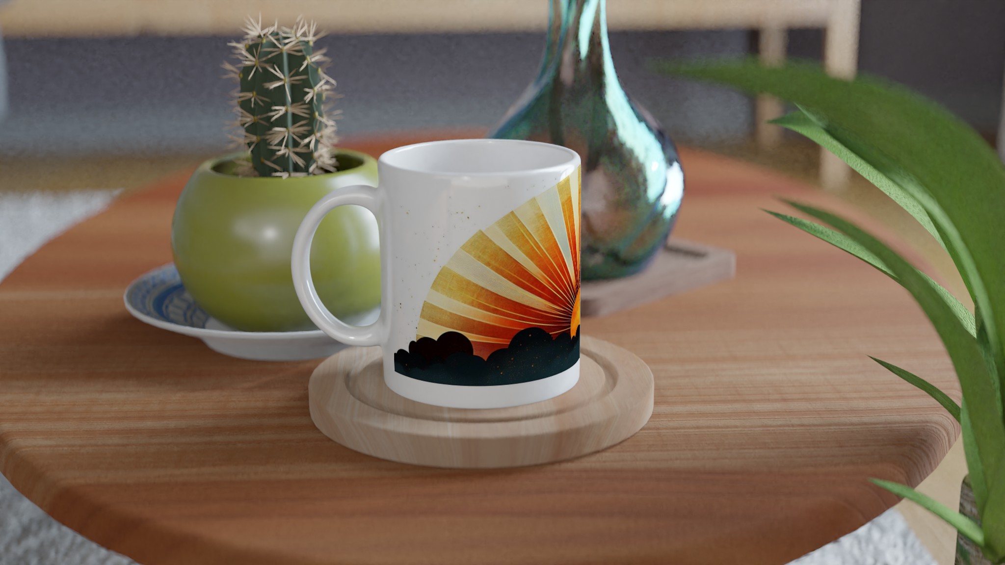 Lyft varje kaffestund med vår premium keramikmugg – stilren, hållbar och skapad för att låta ditt motiv glänsa. Inspirerad av den lugnande skönheten hos en zen-soluppgång, med varma gyllene strålar som möter mörkare, stjärnbeströdda moln, ger denna mugg en känsla av ro till din vardag. Den blanka vita ytan ger ett skarpt och levande tryck som verkligen sticker ut, oavsett om det är en personlig design, ett roligt citat eller en present till någon du tycker om.